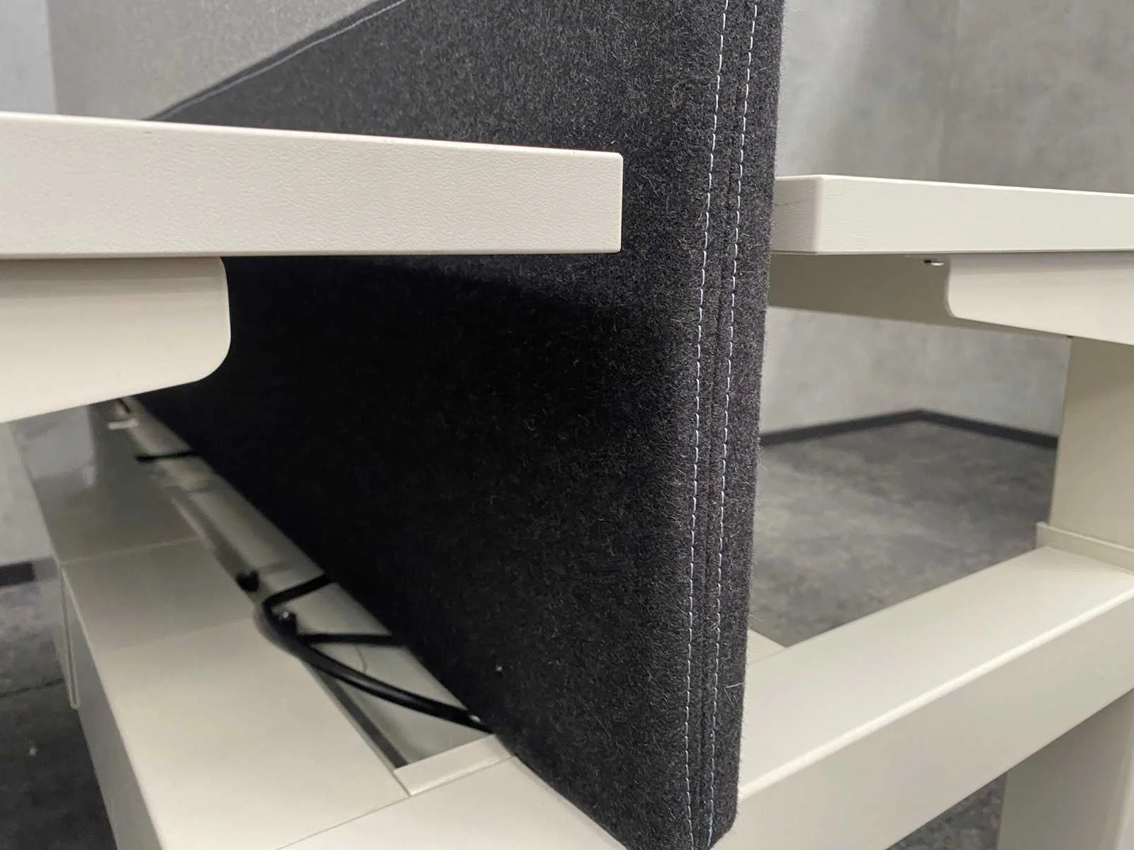 Kavel bestaande uit 2x Interstuhl Movy ergonomische bureaustoel v.v. 4D armleggers, zithoogte en zitdiepte instelbaar, kantelmechanisme rugleuning, verstelbare lendensteun. ----- 2x Bachman opbouwstekkerblok (2x230V + 2x USB) ----- 1x in hoogte verstelbaar duo bureau v.v. handslinger, grijs/ antraciet akoestische scheidingswand, draadgoot. Afm. ca. hoogte 64.5 tot 92.5 cm. bxd 140x80 cm. - LET OP transportafmetingen bureau ca. hxbxd 65x140x170 cm. Nee Slingerbureau: true