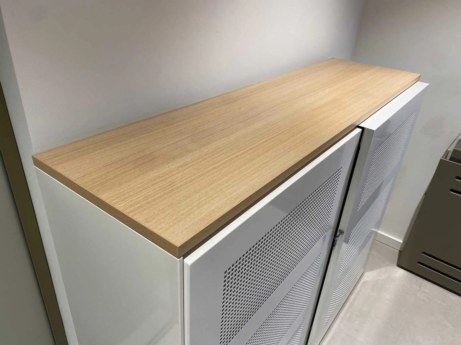 Met sleutel, v.v. 4 verstelbare legborden Nee Kleur: wit, hout Breedte: 160cm Hoogte: 125cm Diepte: 50cm Materiaal: metaal