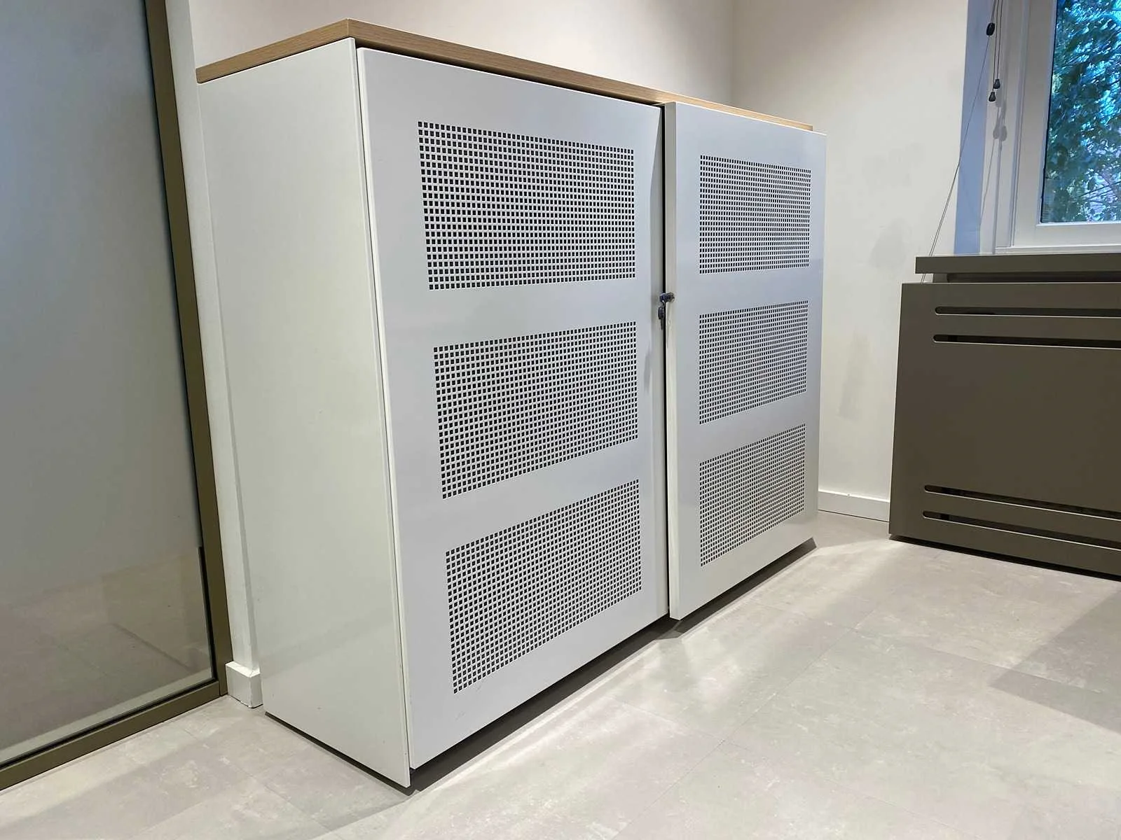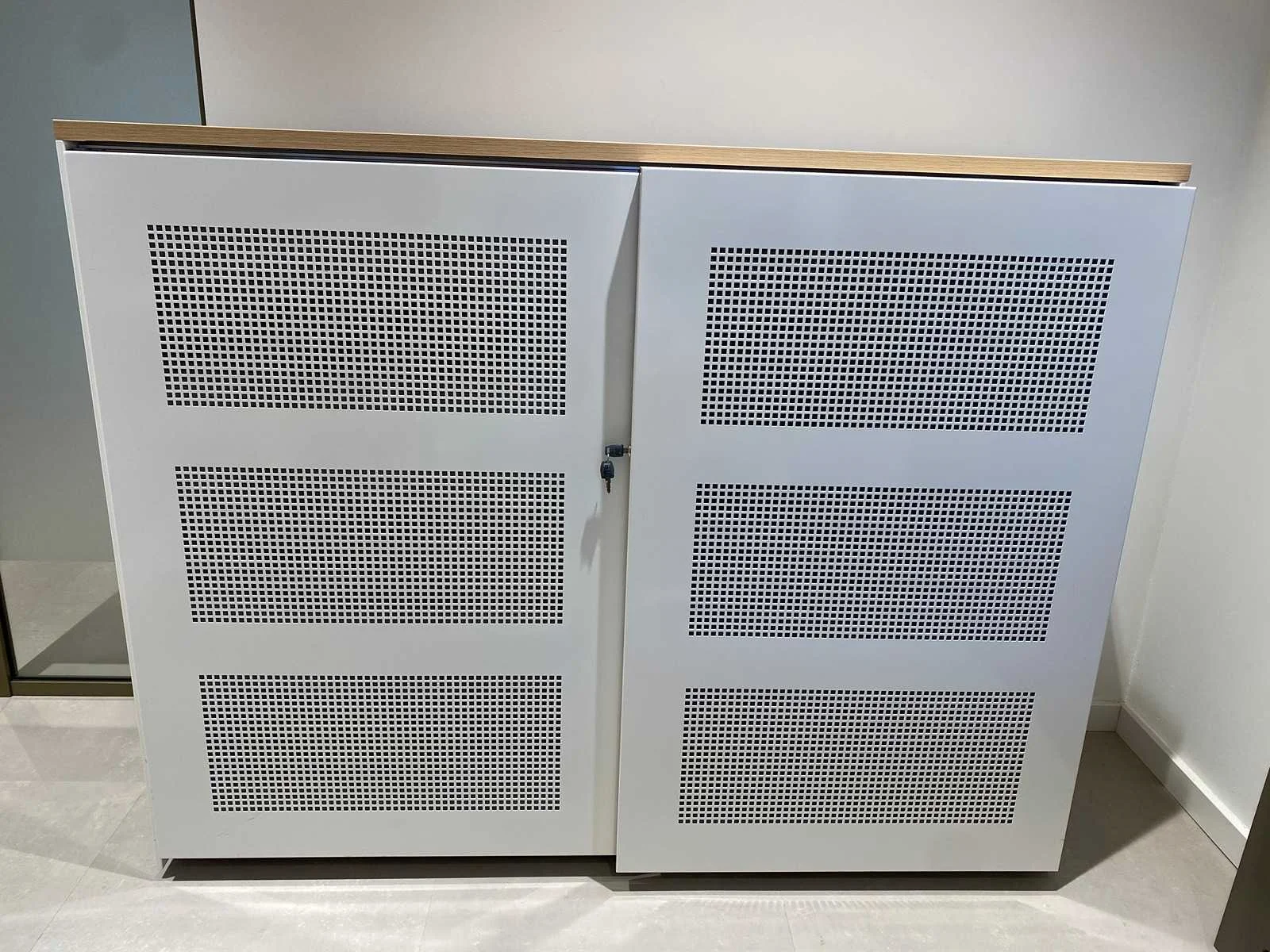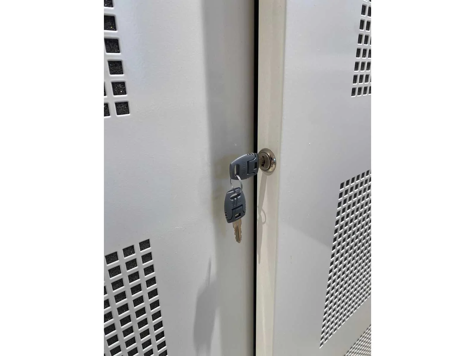 Met sleutel, v.v. 4 verstelbare legborden Nee Kleur: wit, hout Breedte: 160cm Hoogte: 125cm Diepte: 50cm Materiaal: metaal