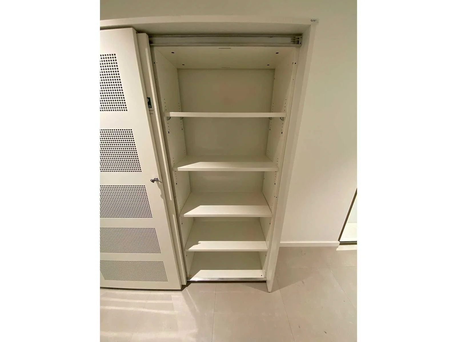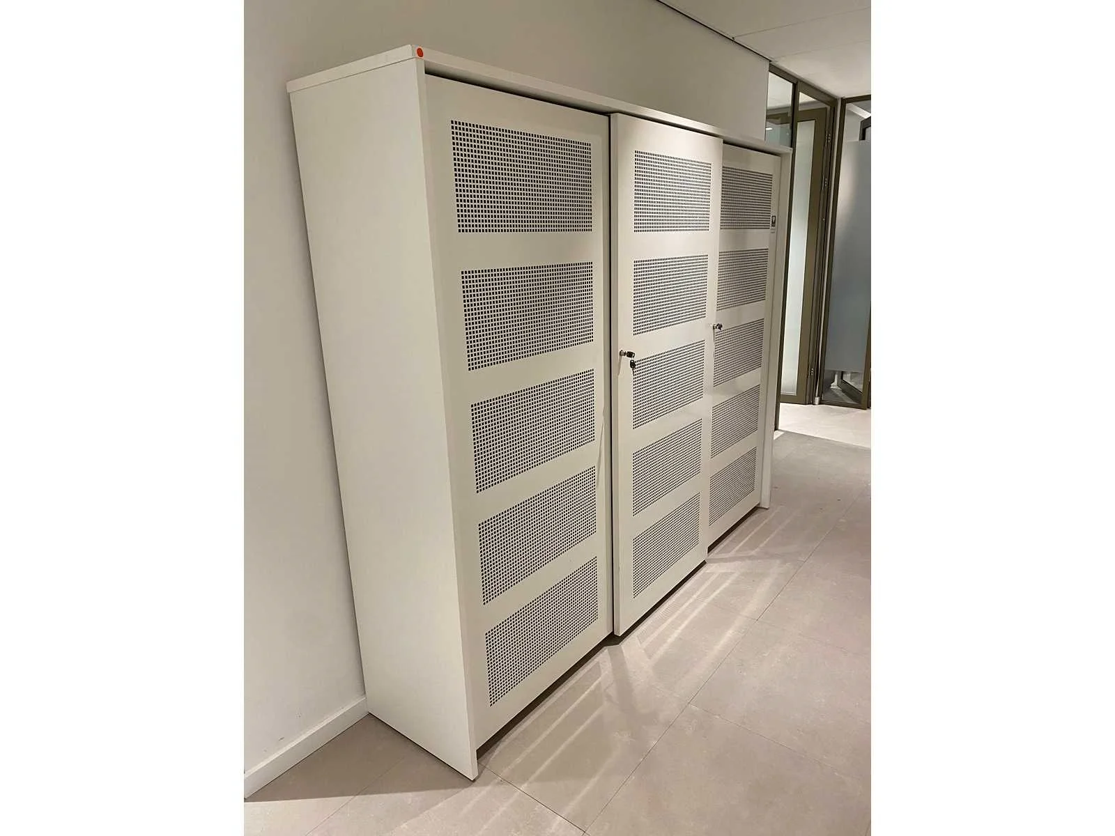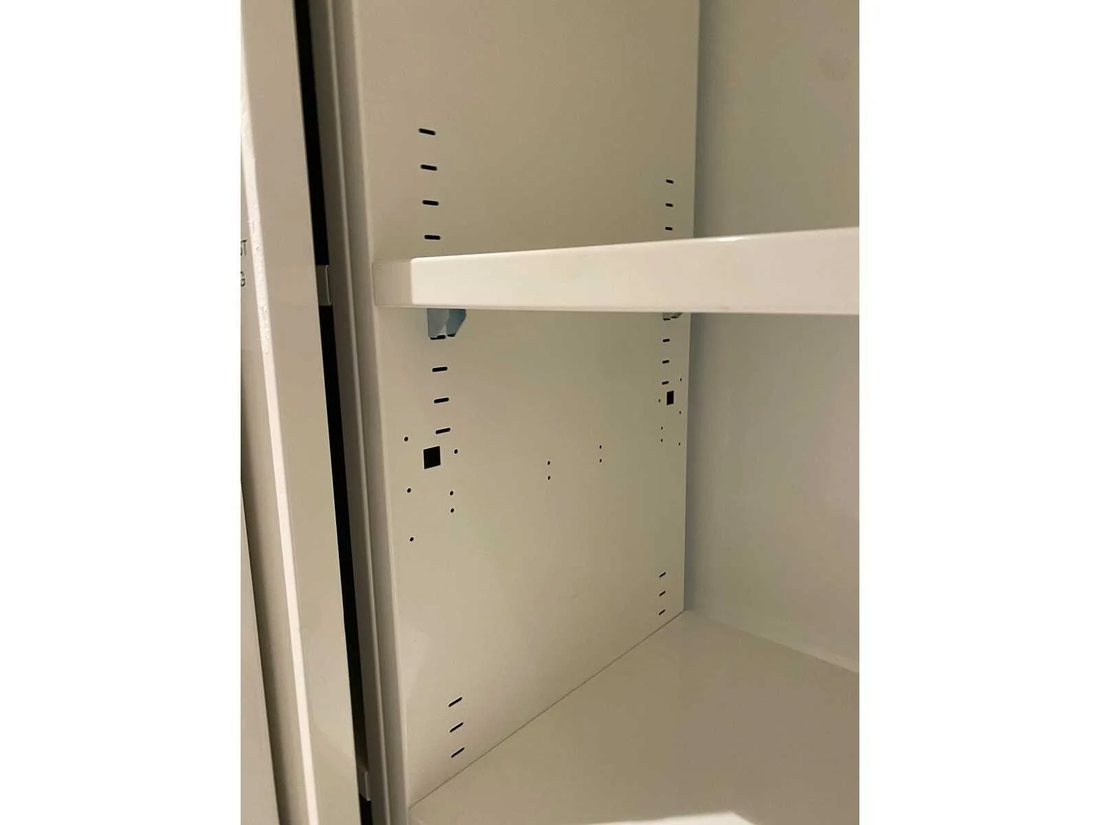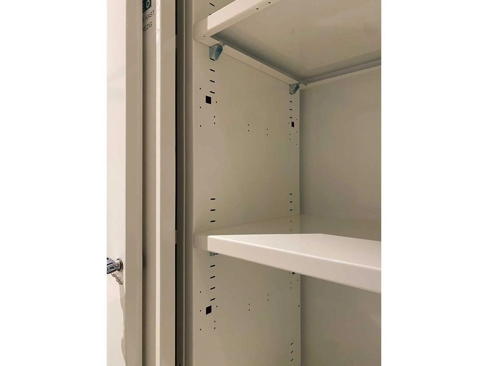 Met sleutel, v.v. 12 verstelbare legborden ----- kavel is reeds professioneel gedemonteerd. Nee Kleur: wit, hout Breedte: 245cm Hoogte: 197cm Diepte: 50cm Materiaal: metaal