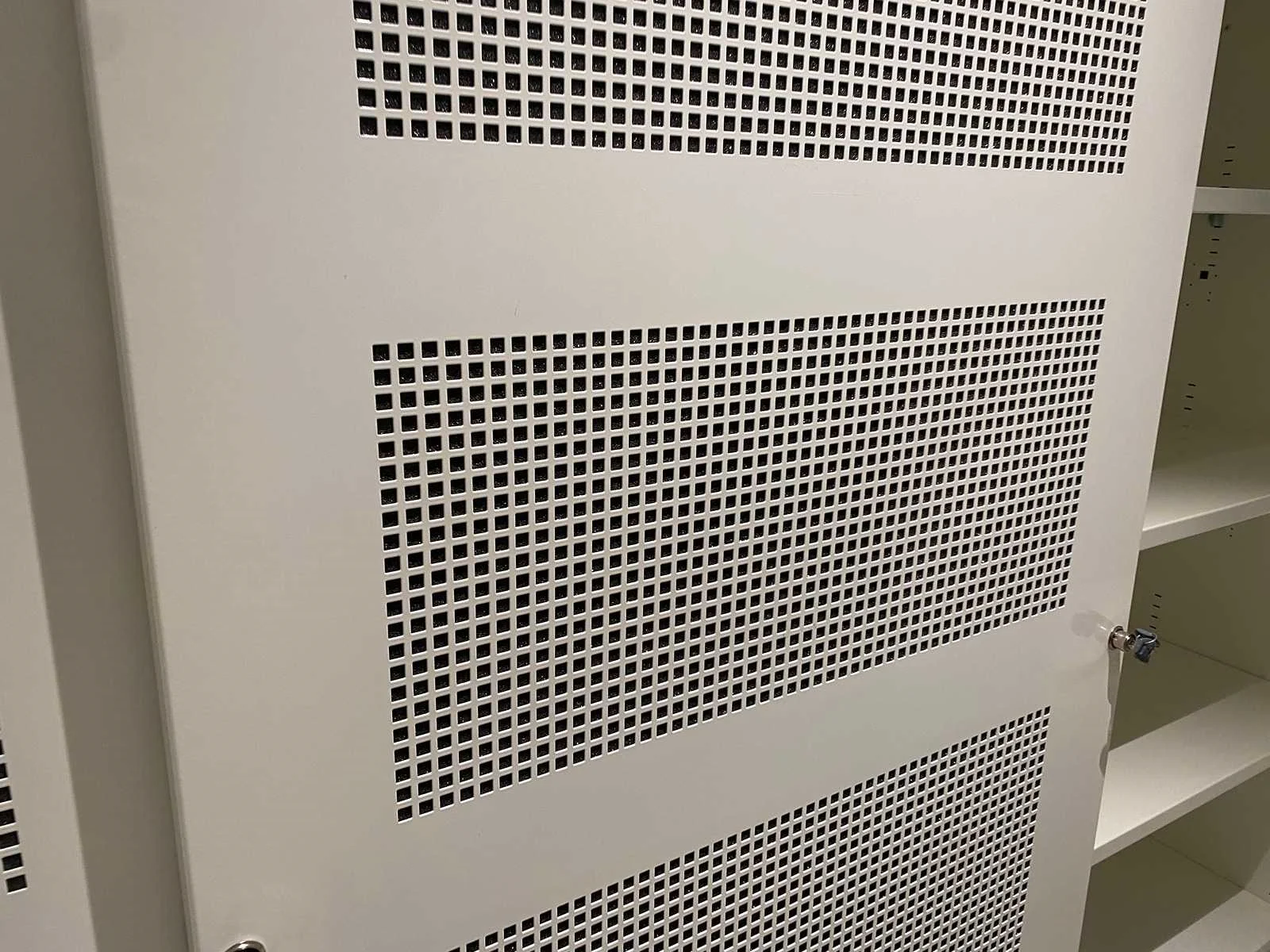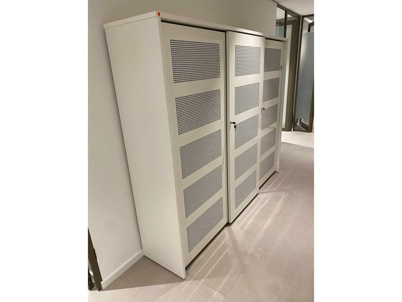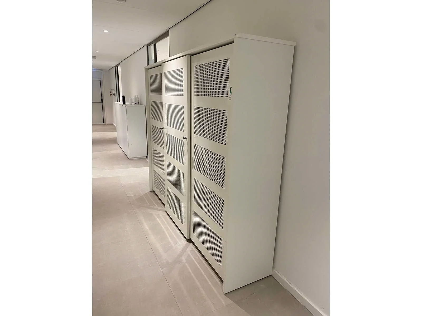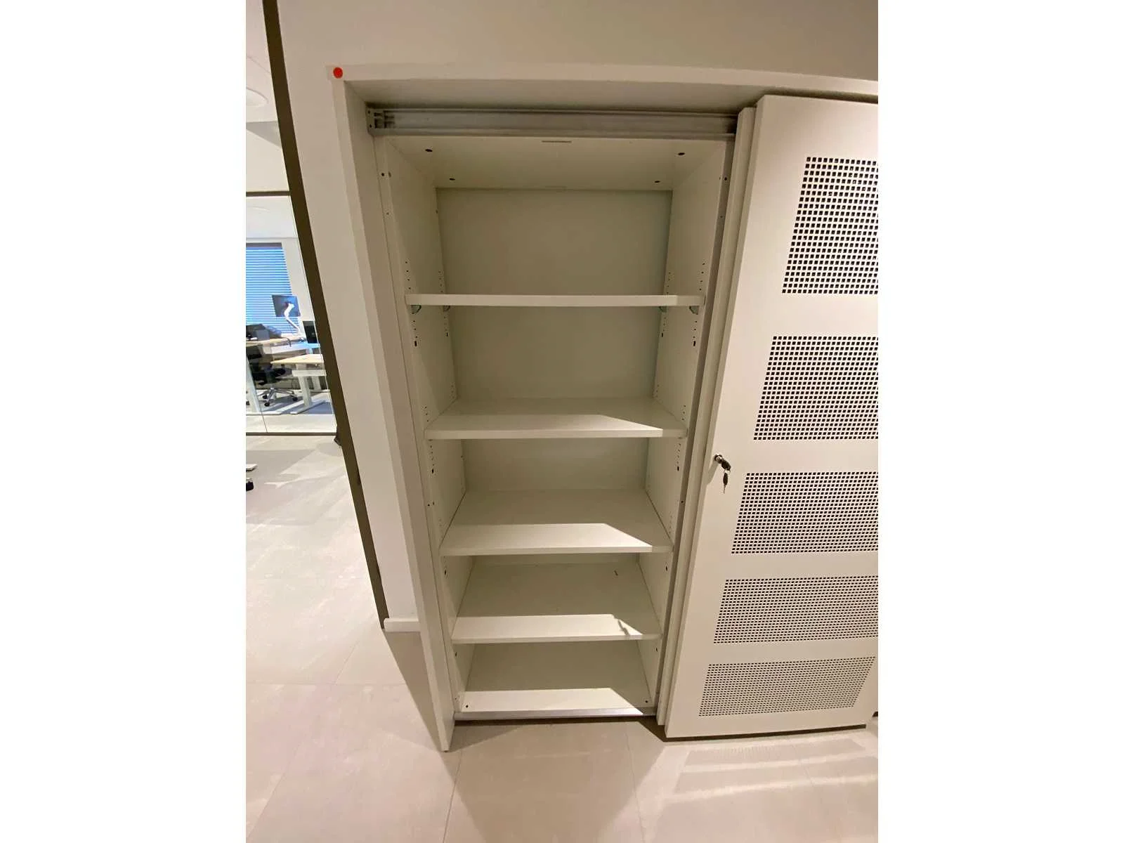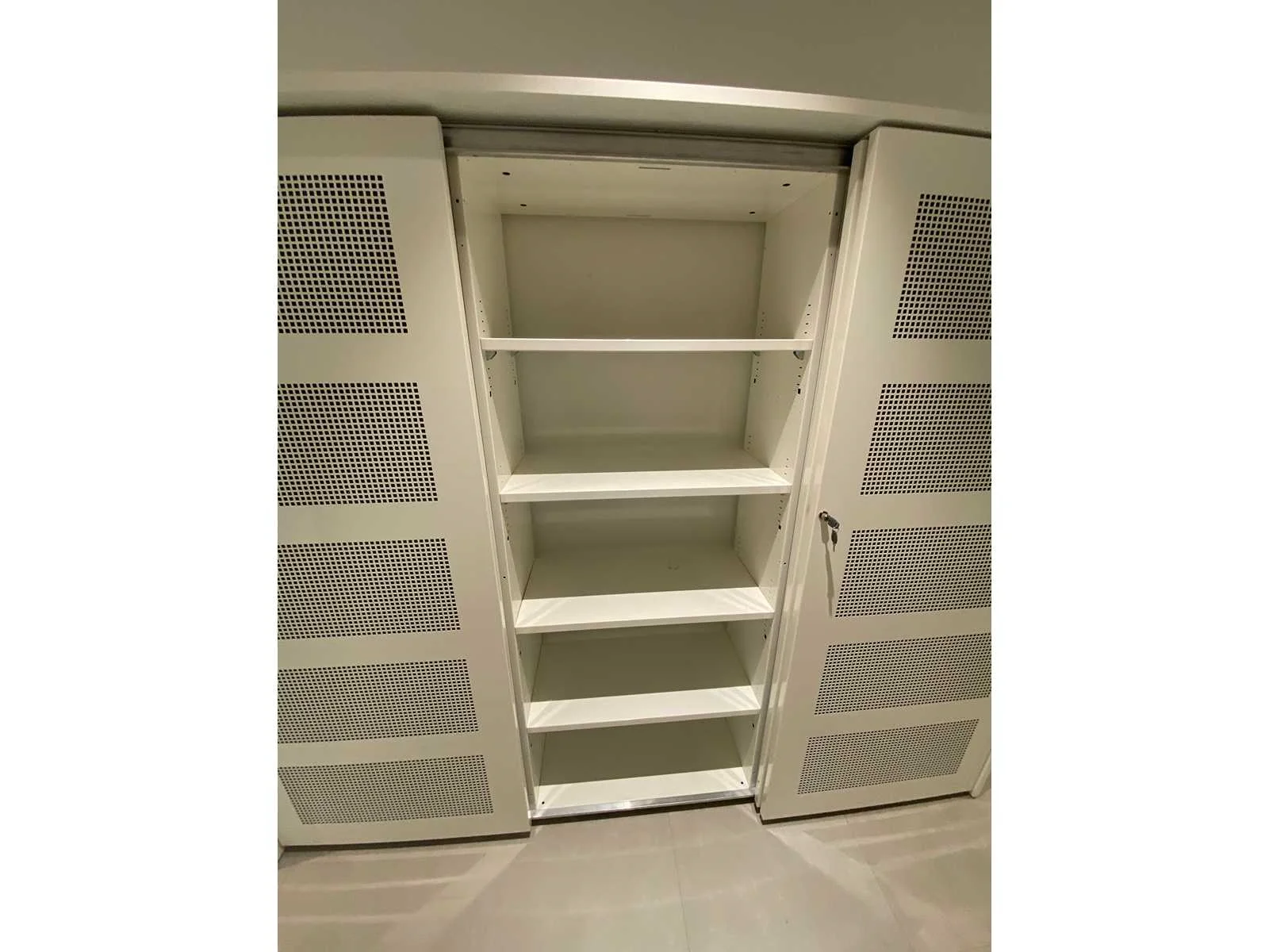Met sleutel, v.v. 12 verstelbare legborden ----- kavel is reeds professioneel gedemonteerd. Nee Kleur: wit, hout Breedte: 245cm Hoogte: 197cm Diepte: 50cm Materiaal: metaal