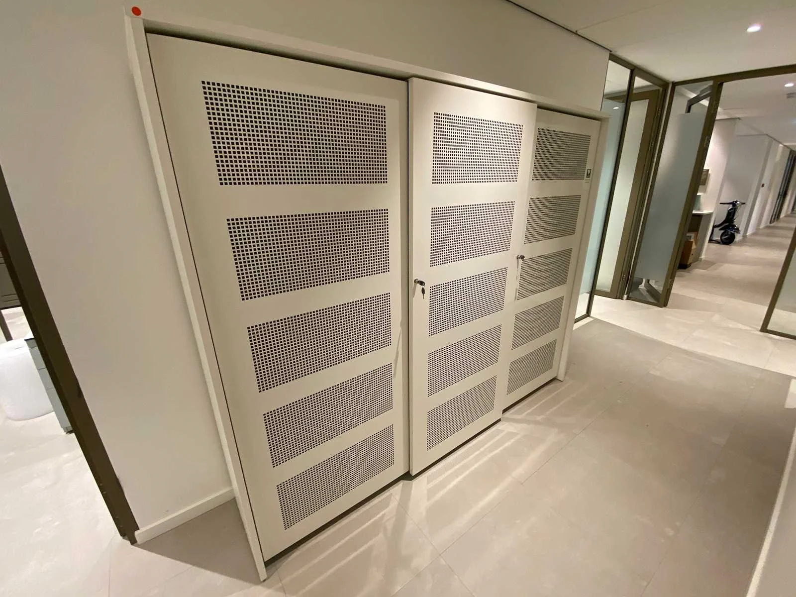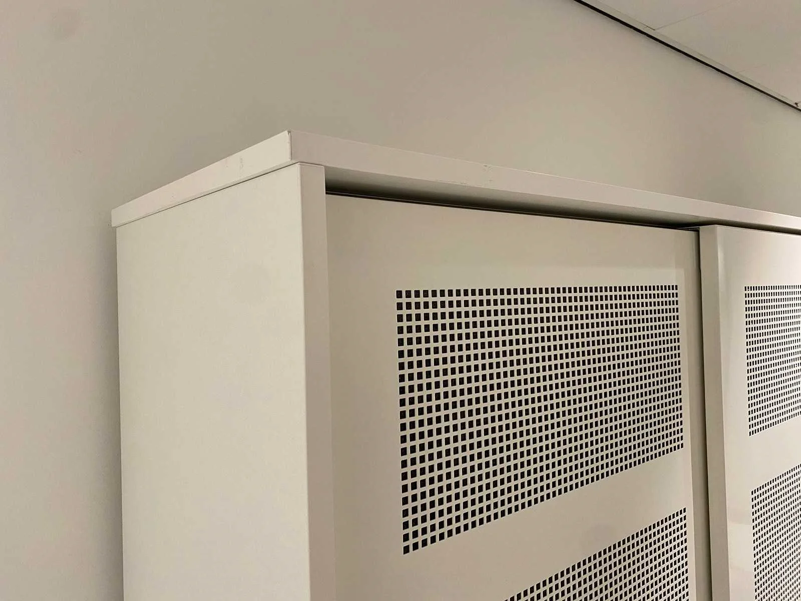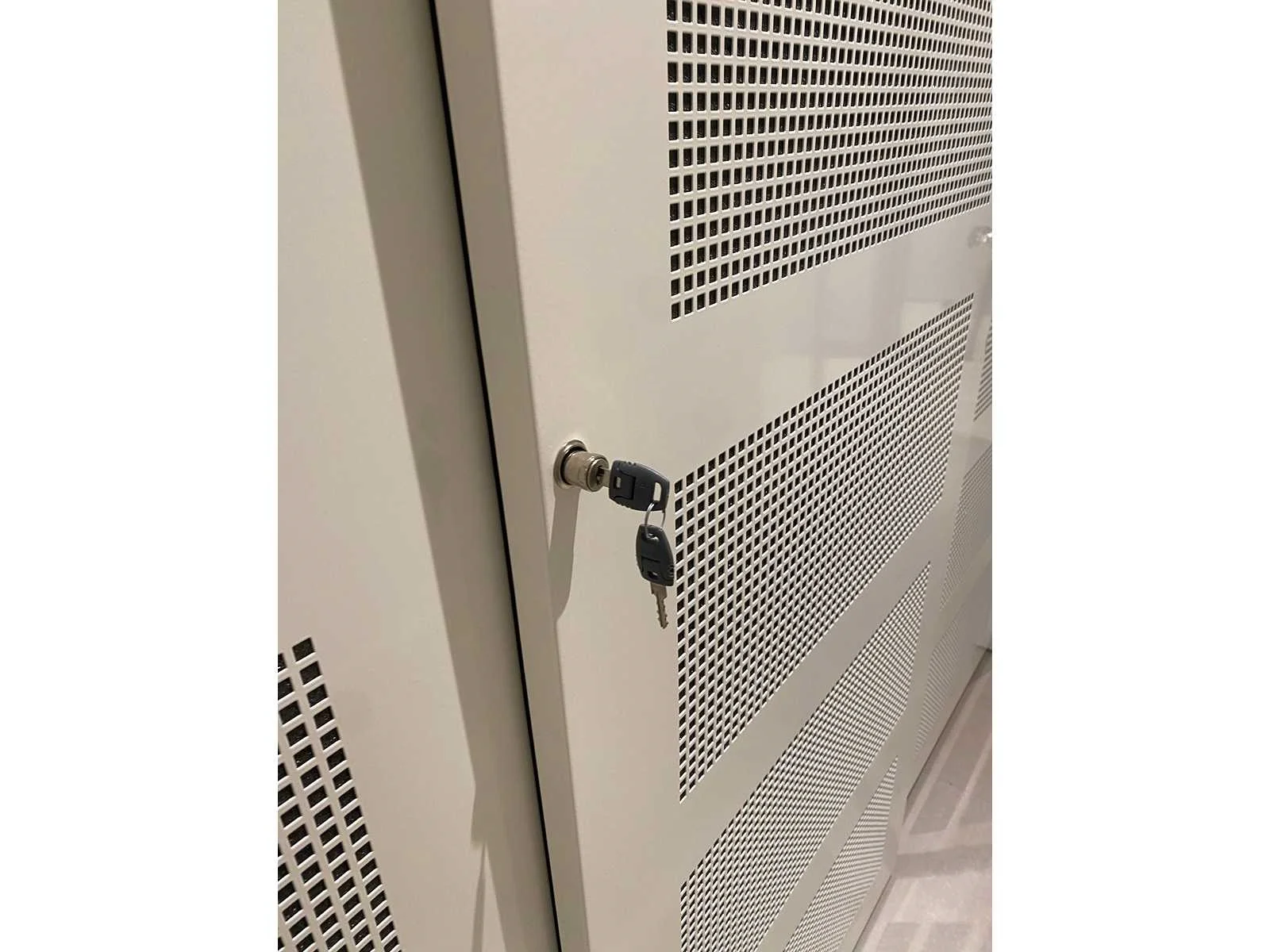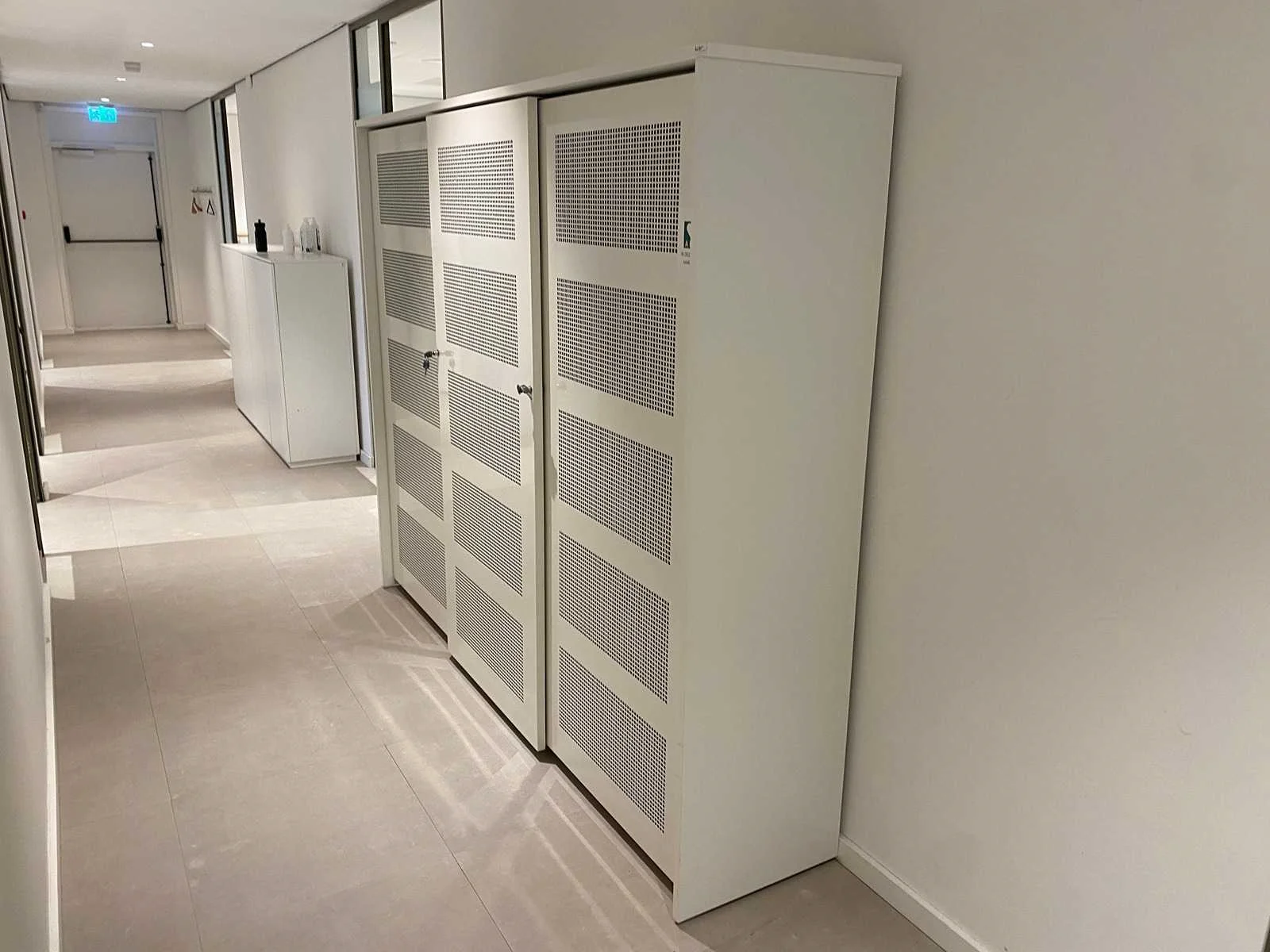 Met sleutel, v.v. 12 verstelbare legborden ----- kavel is reeds professioneel gedemonteerd. Nee Kleur: wit, hout Breedte: 245cm Hoogte: 197cm Diepte: 50cm Materiaal: metaal