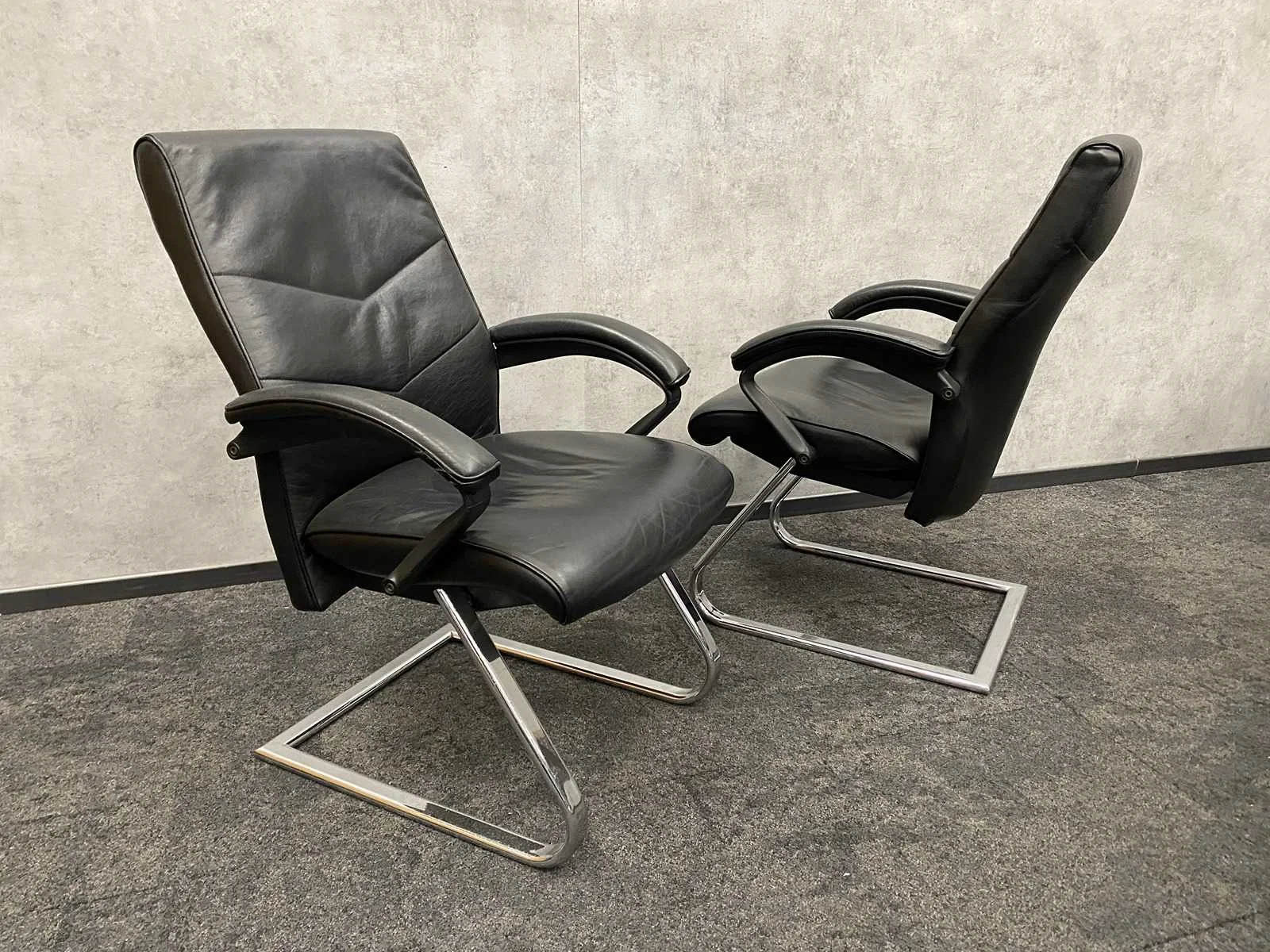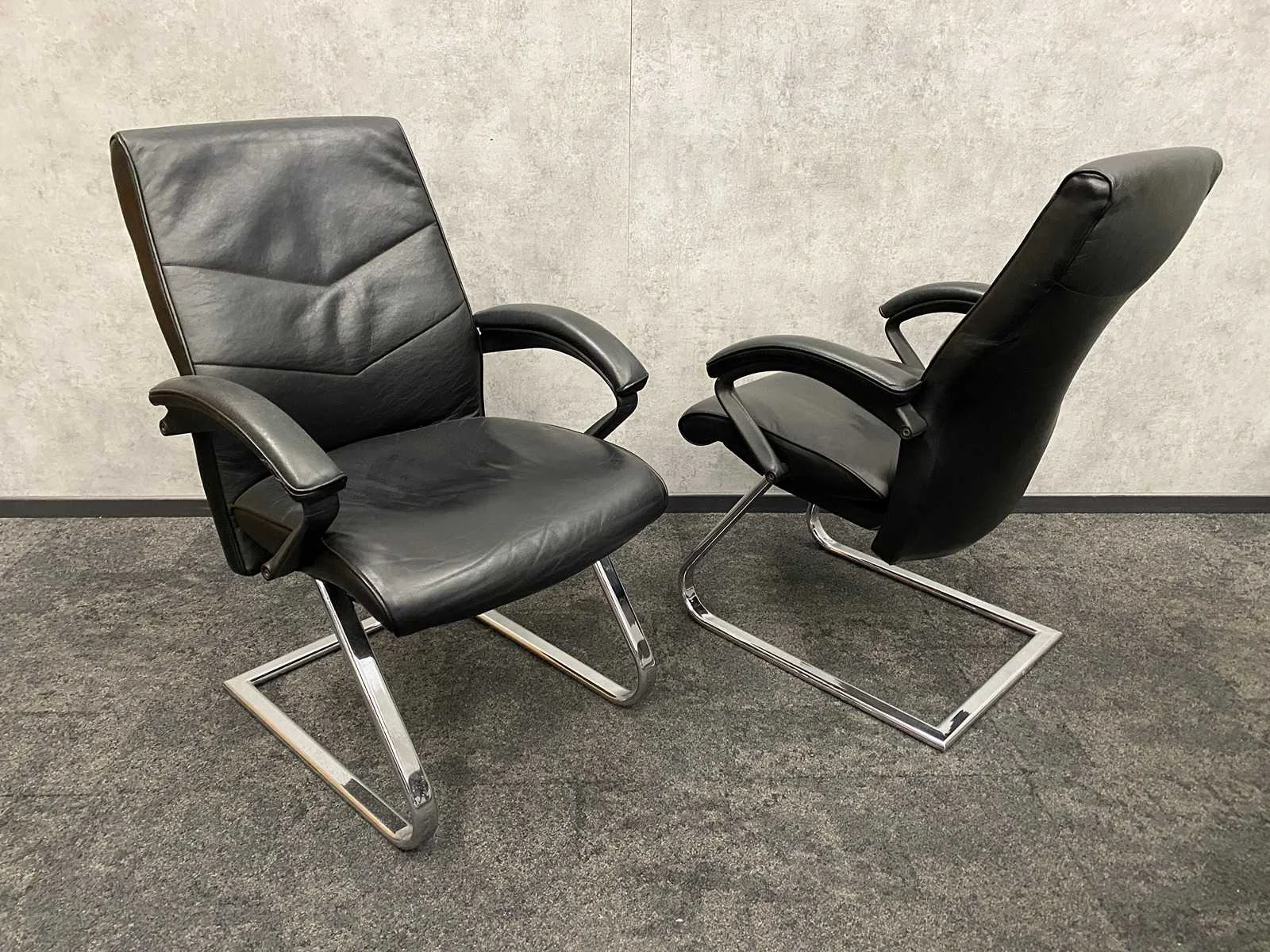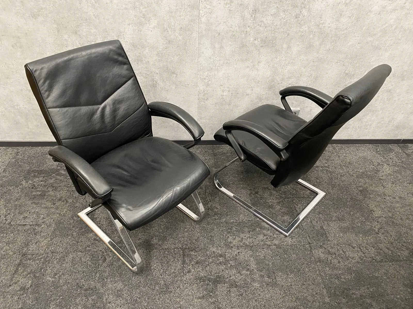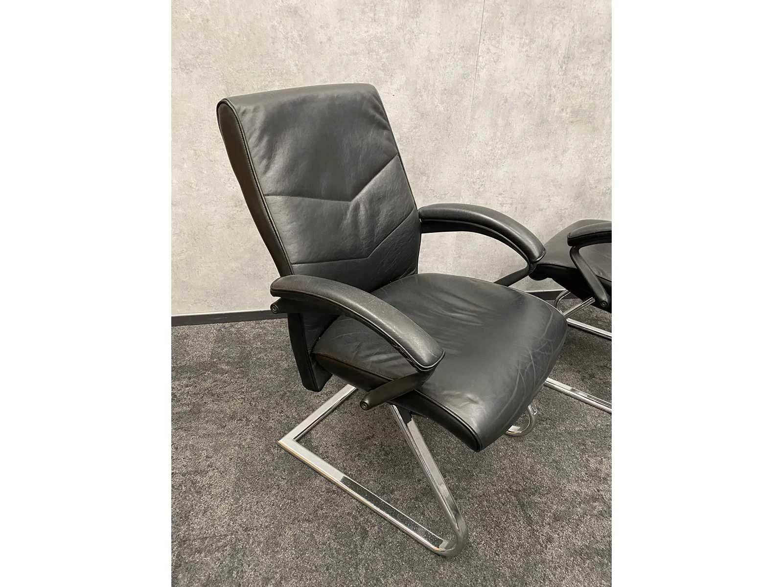 - 1x NIEUWE tafel v.v. nieuw zwart/chroom stalen design frame en nieuw 2-delig eiken melamine tafelblad met meubelspanners. afm. ca. hxbxd 73x370x120 cm. Tafel is reeds gedemonteerd (blad in 2 delen, frame in 4 dozen) ----- 8x zwart lederen conferentiestoel met chroom sledeframe en zwart lederen armleggers. Nee Kleur: chroom, eiken, zwart Lengte: 370cm Breedte: 120cm Hoogte: 73cm