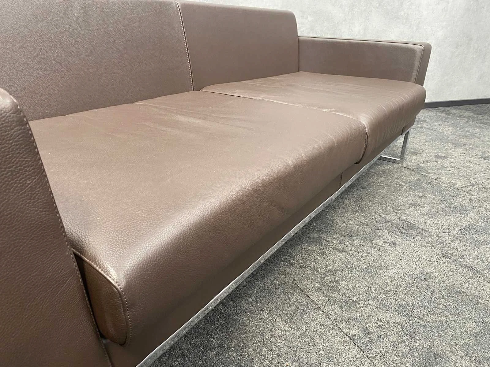 Nee Merk: Layla by Boss Design Kleur: bruin, chroom Breedte: 200cm Hoogte: 68cm Zithoogte: 42cm Diepte: 76cm Materiaal: leder