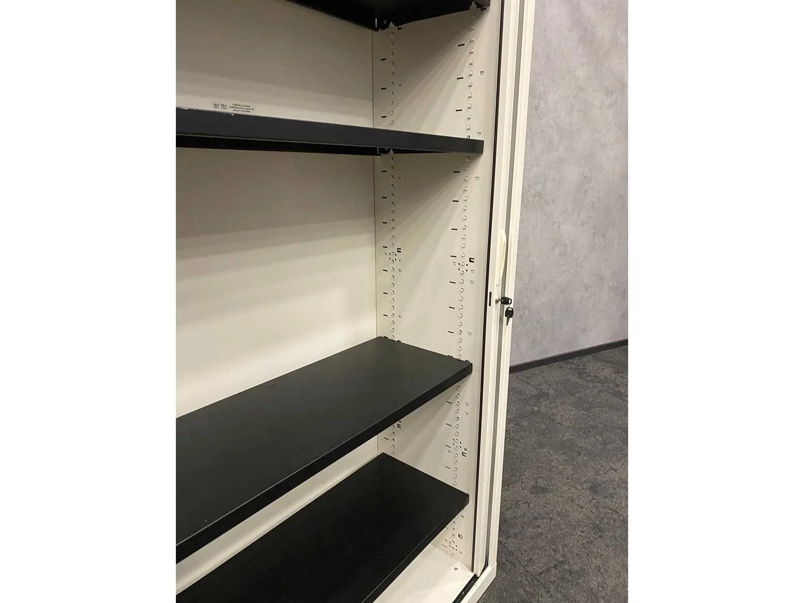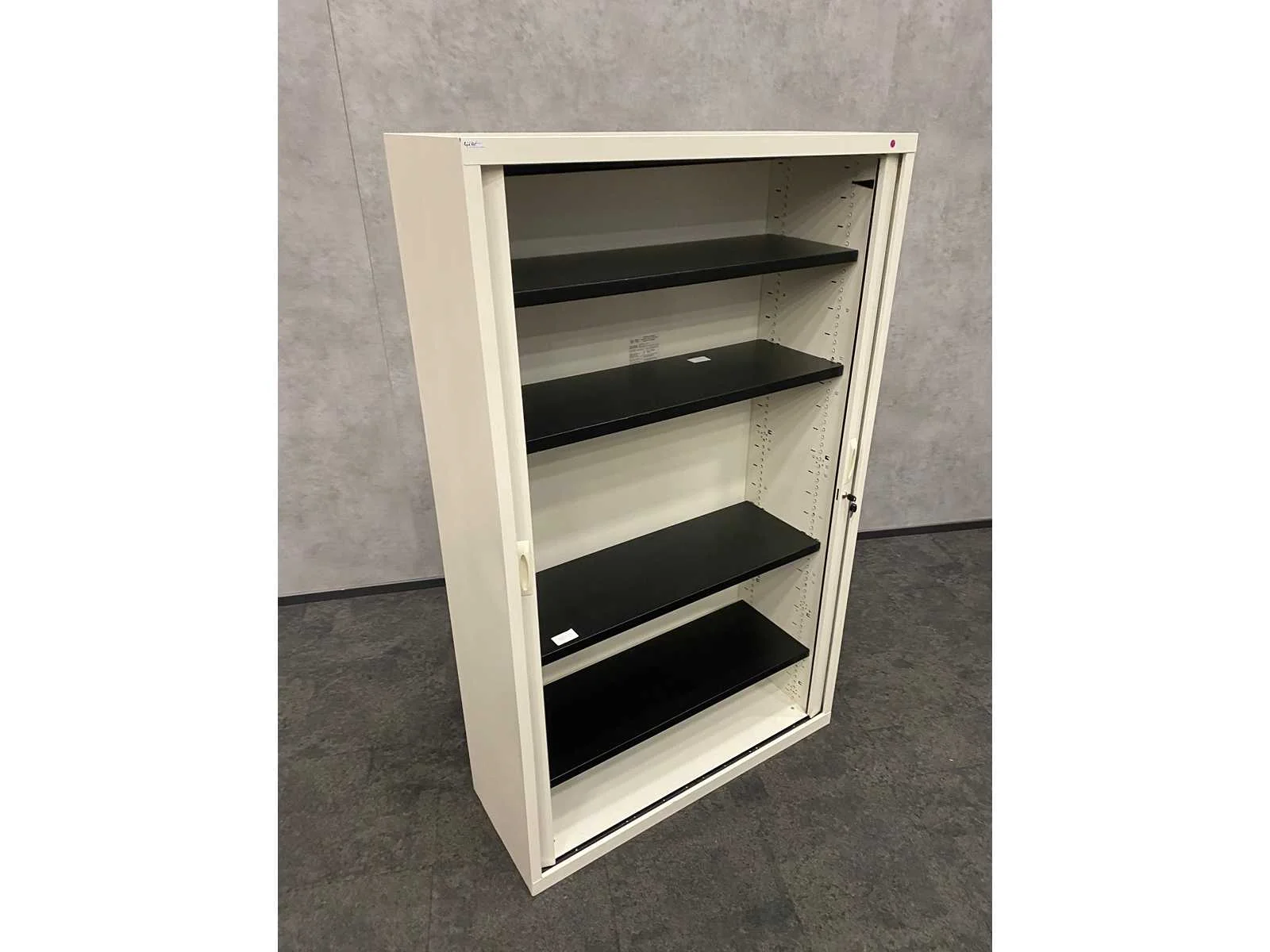 Met sleutel, v.v. 4 verstelbare legborden. Nee Breedte: 120cm Hoogte: 195cm Diepte: 45cm Materiaal: metaal, kunststof