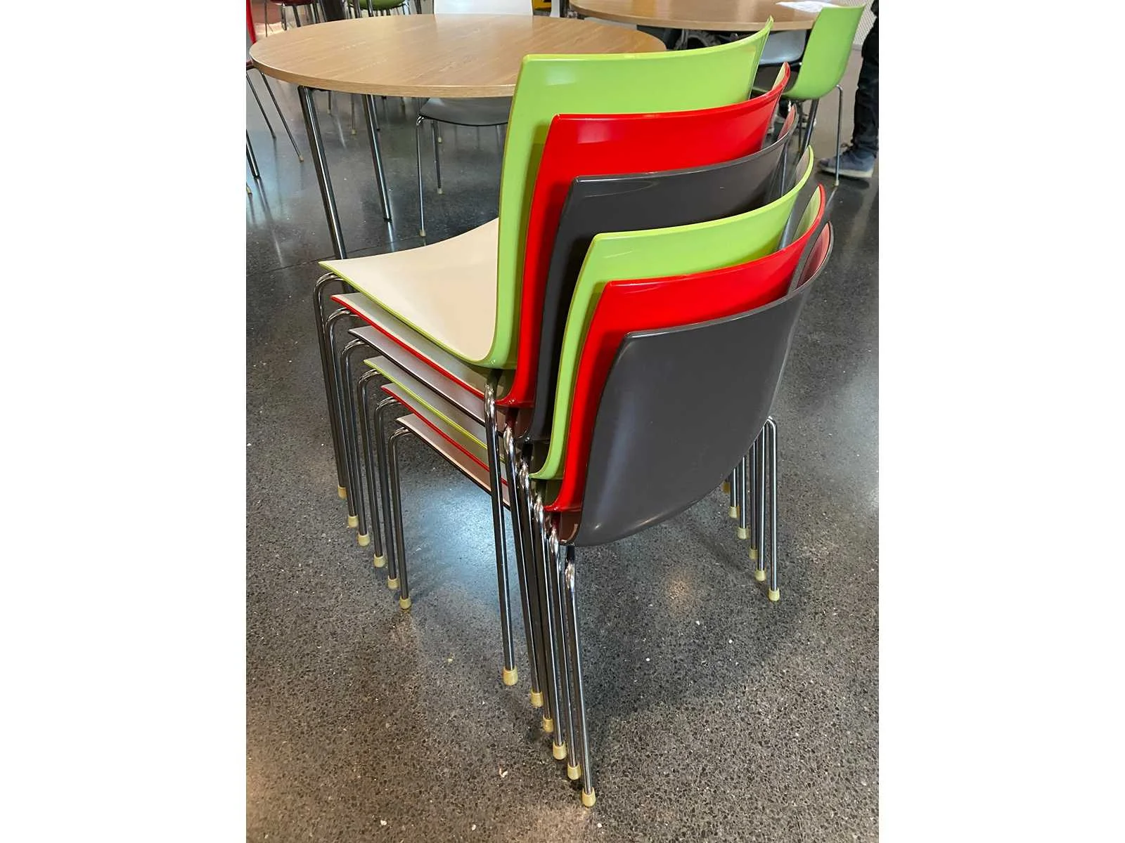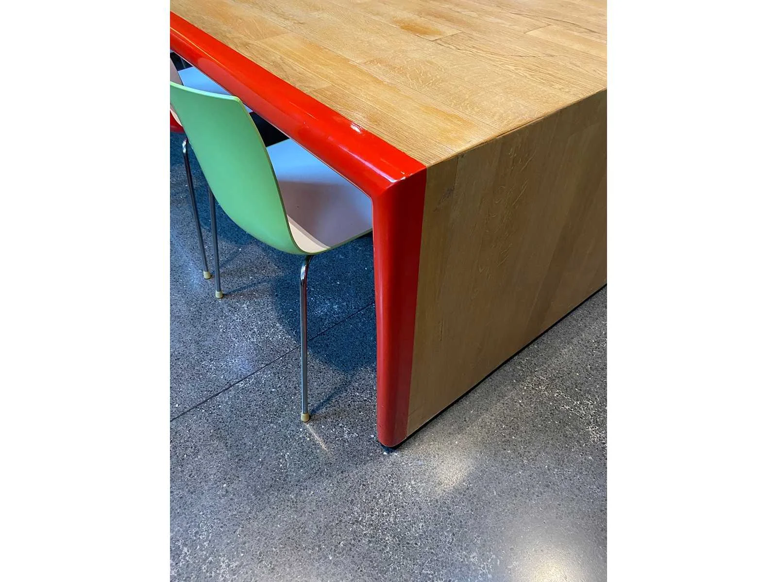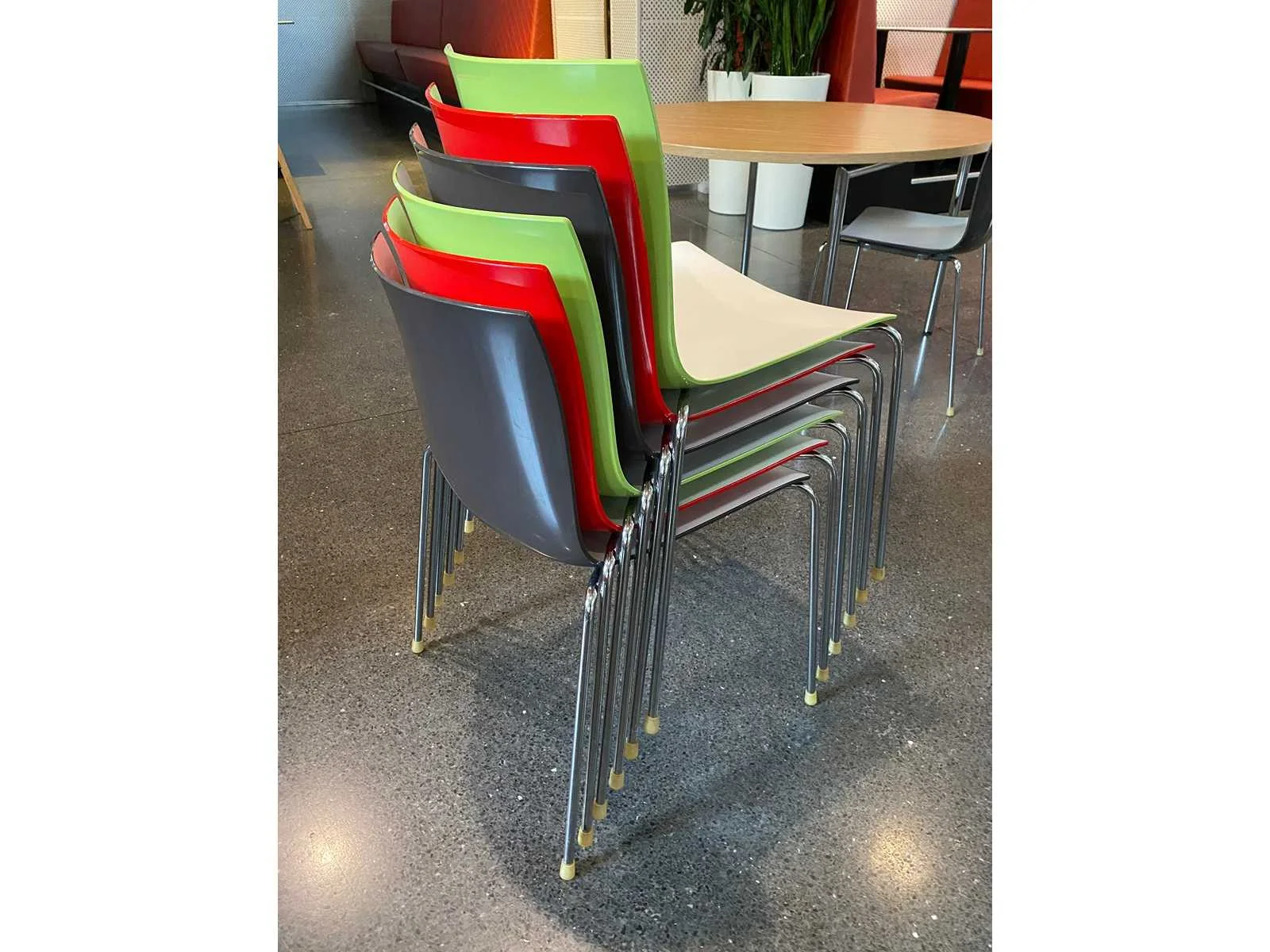 Kavel bestaande uit 18x nestelbare Arper Catifa conferentiestoel -- 1x houten tafel (één geheel) Nee Merk: Arper Catifa Lengte: 600cm Breedte: 120cm Hoogte: 78cm