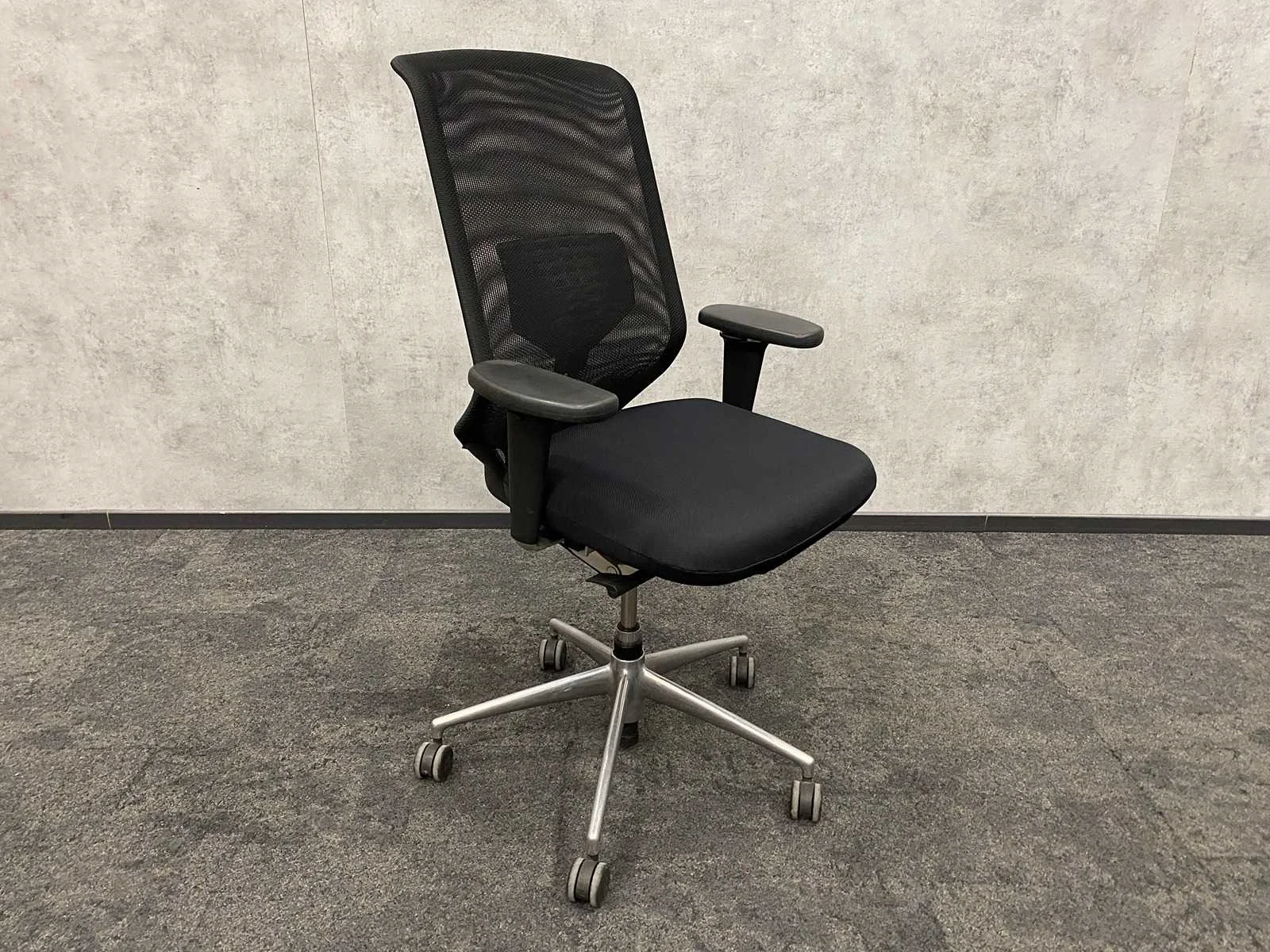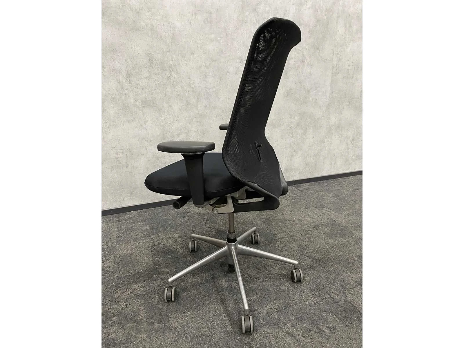 V.v. 4D verstelbare armleggers, zithoogte en zitdiepte verstelbaar, gewichtsregeling, lendensteun, chroom 5-teens voetenkruis, kantelmechanisme Nee Merk: Vitra Meda Kleur: zwart