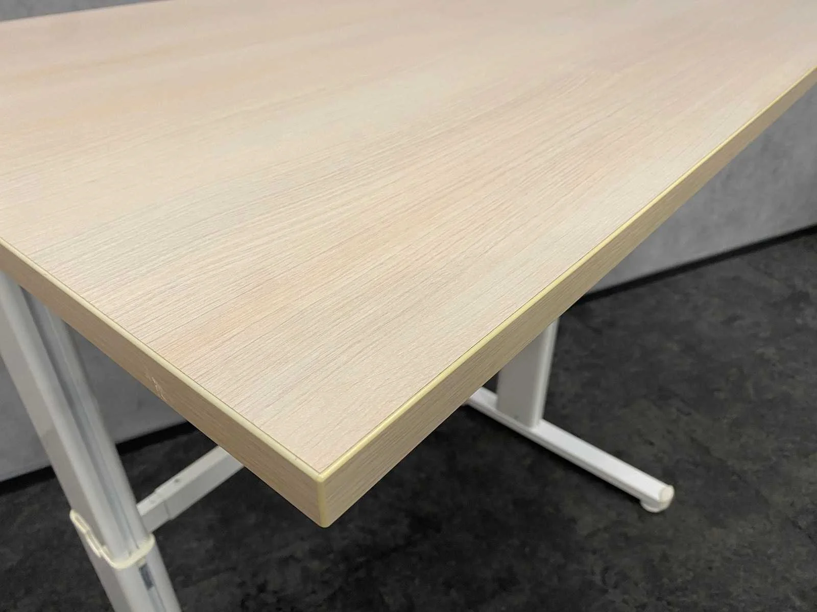 Hoogte ca. 73-120 cm. --- v.v. kabeldoorvoer en draadgoot Nee Merk: Actiforce Zit-sta: true Elektrisch verstelbaar: true Kleur: wit, eiken Breedte: 120cm Hoogte: 120cm Materiaal: metaal, melamine Diepte: 80cm