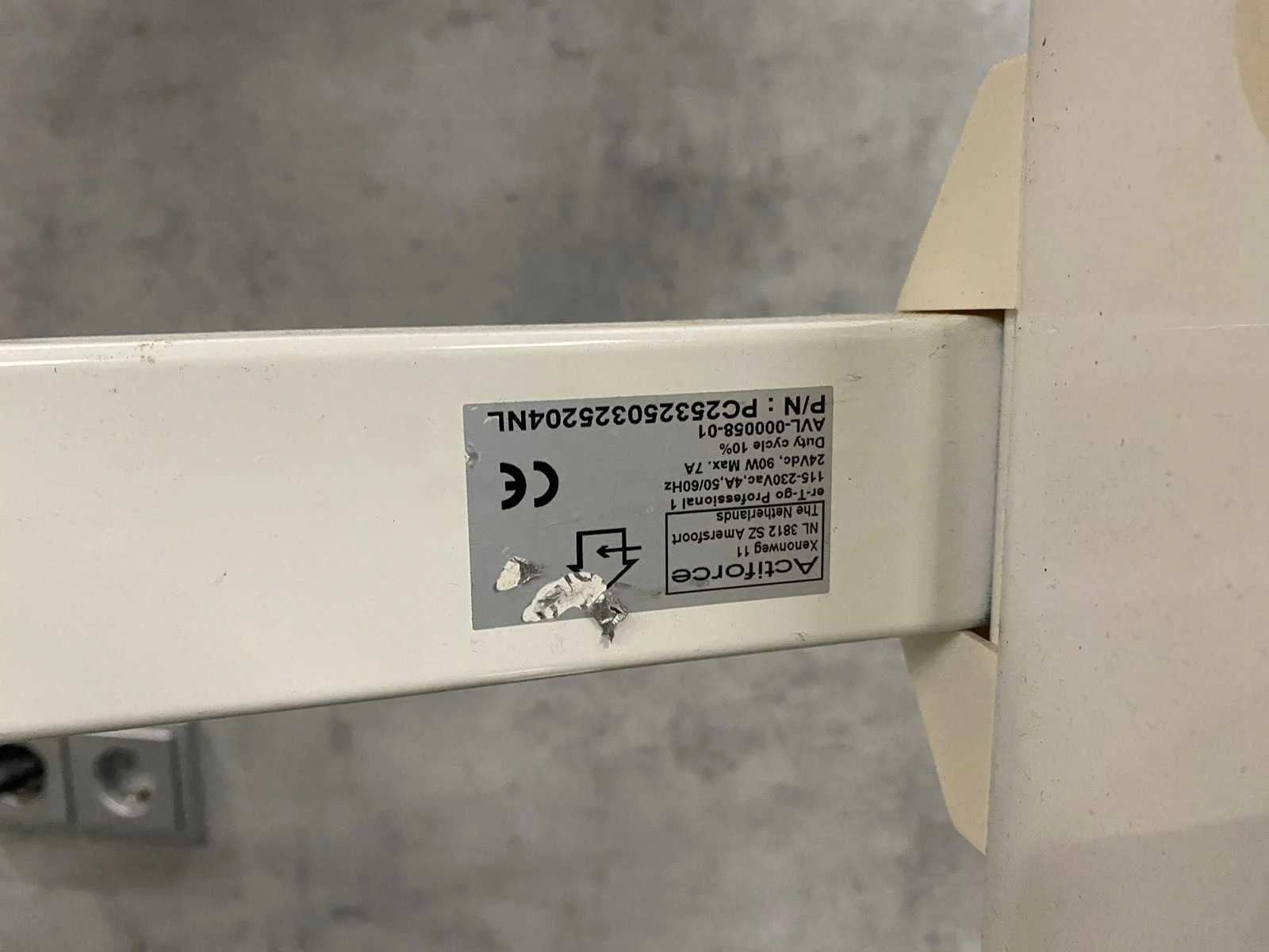 Hoogte ca. 73-120 cm. --- v.v. kabeldoorvoer en draadgoot Nee Merk: Actiforce Zit-sta: true Elektrisch verstelbaar: true Kleur: wit, eiken Breedte: 120cm Hoogte: 120cm Materiaal: metaal, melamine Diepte: 80cm