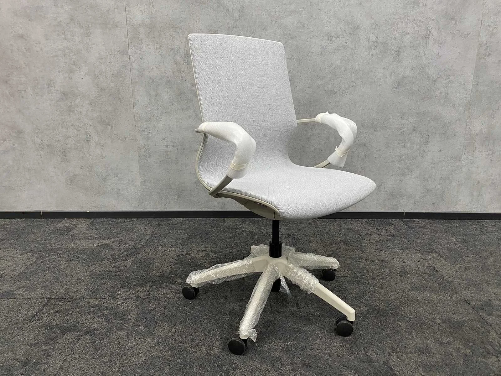 Nieuw - v.v. in hoogte instelbaar zitvlak, draaibaar, verrijdbaar, muisgrijze stoffering, wit 5-teens voetenkruis Nee Merk: Relativ Kleur: muisgrijs