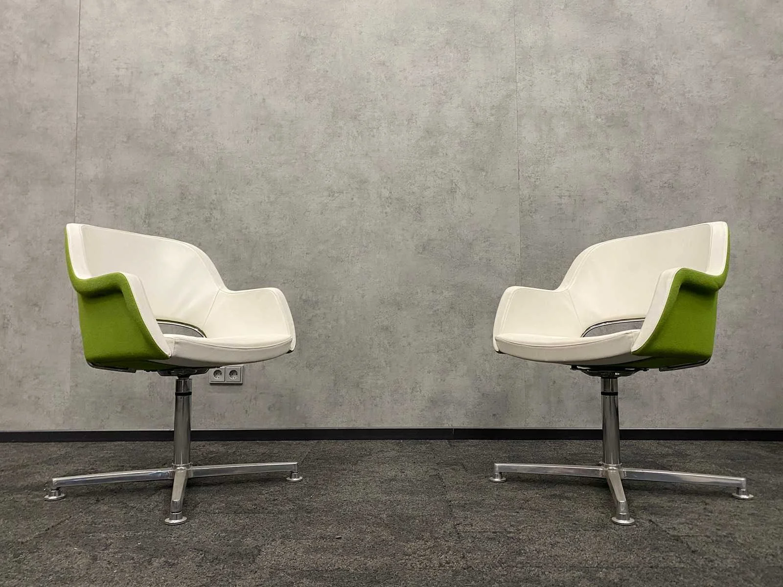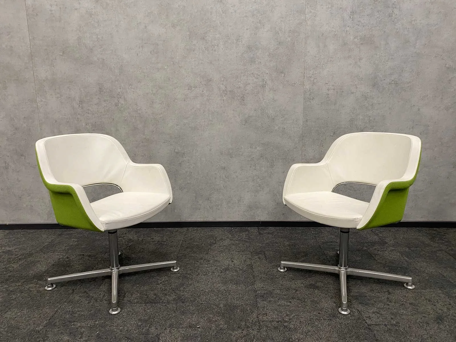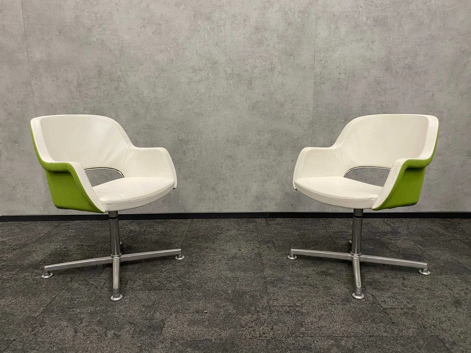 2x twinform - design fauteuil - wit leder/ groene stoffering