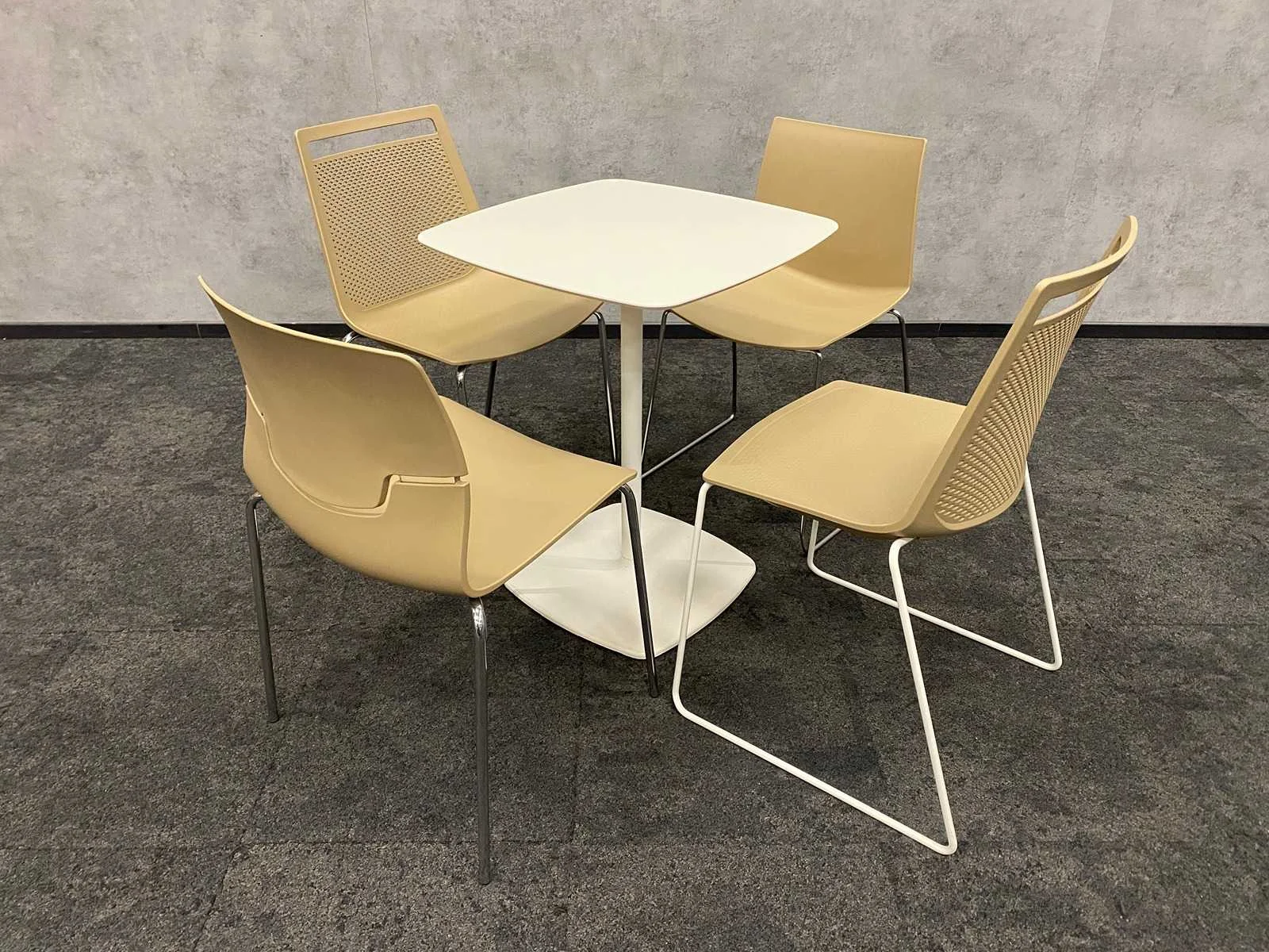 Kavel bestaande uit 1x Pedrali tafel. Afm. ca. hxbxd 74x59x59 cm. --- 4x Gaber diverse design stoel Nee Merk: Gaber/ Pedrali