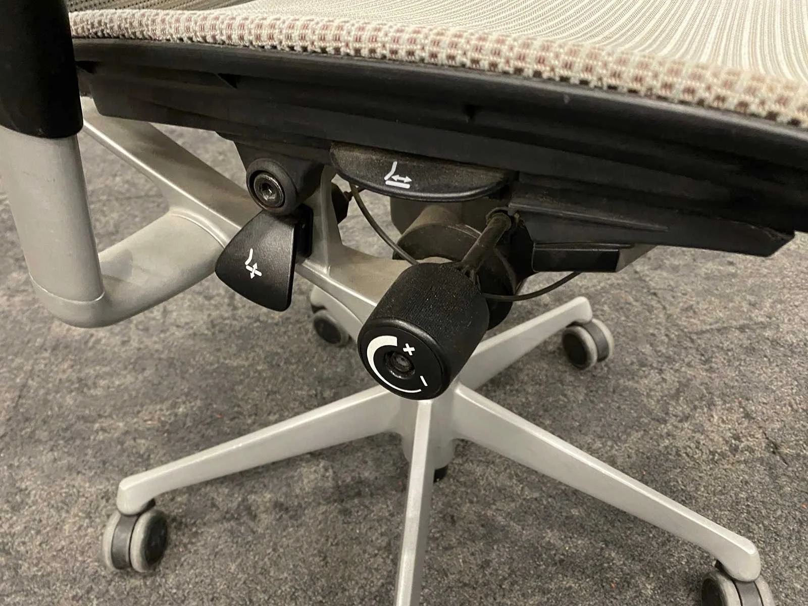 V.v. zithoogte en zitdiepte instelbaar, gewichtsregeling, verstelbare armleggers, kantelmechanisme, netweave bekleding, hoofdsteun Nee Merk: Okamura Baron