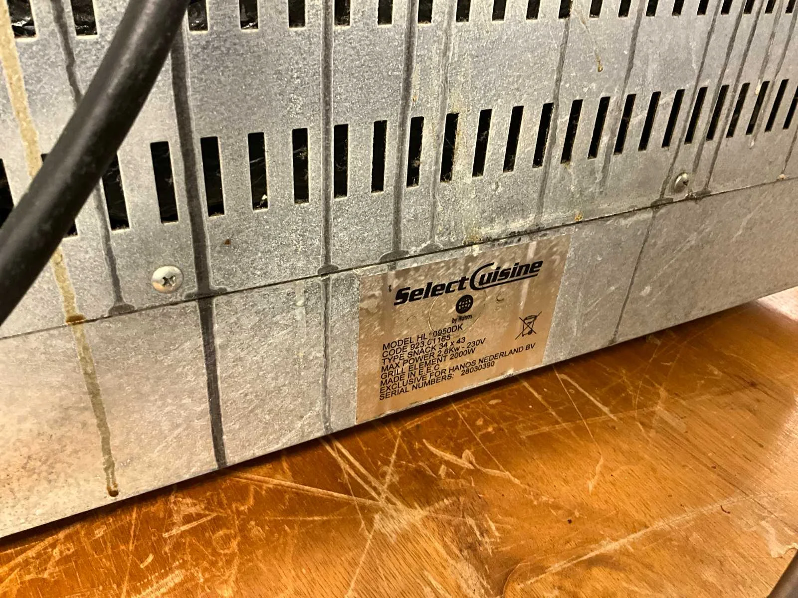 2,6 kw.; voor 4-laags 34x43 cm. platen. Nee Merk: SelectCuisine Type: HL1095DK Aansluiting: 230V Elektrisch: true Rvs: true Totale afmeting L: 70cm Totale afmeting Breedte: 66cm Totale afmeting Hoogte: 55cm