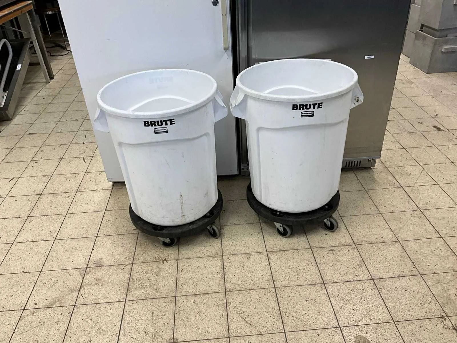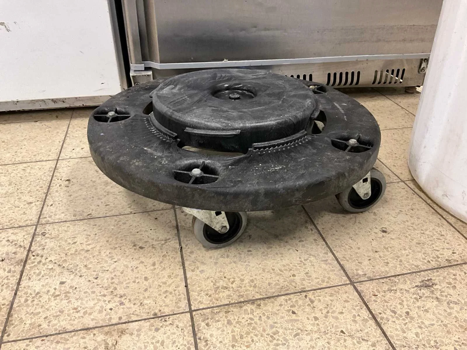Verrijdbaar; diam. 50 cm. Nee Merk: Rubbermaid Model: Brute Hoogte: 70cm Materiaal: kunststof