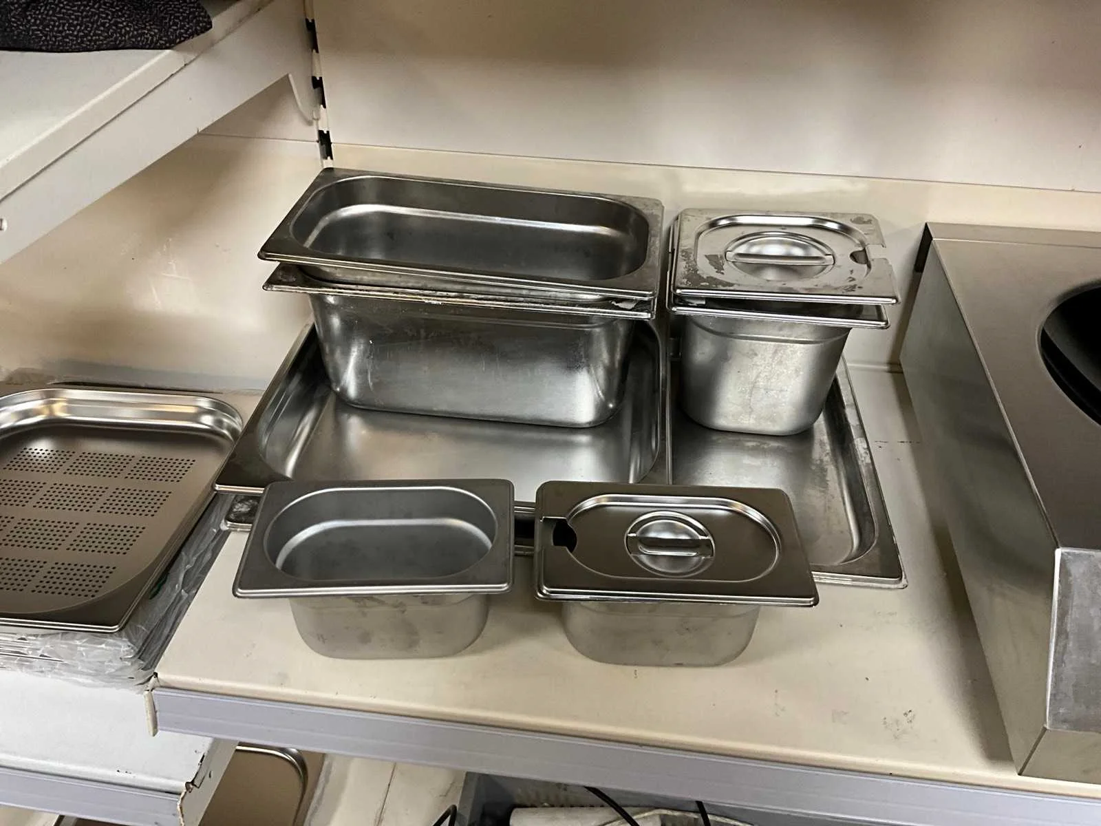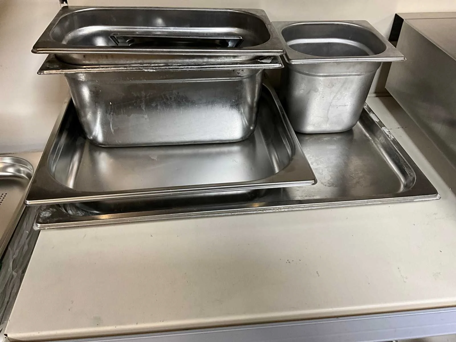 1 x 1/1, 1 x 2/3, 2 x 1/3, 1 x 1/6 en 2 x 1/9 gn; inclusief 3 deksels. Nee Materiaal: rvs