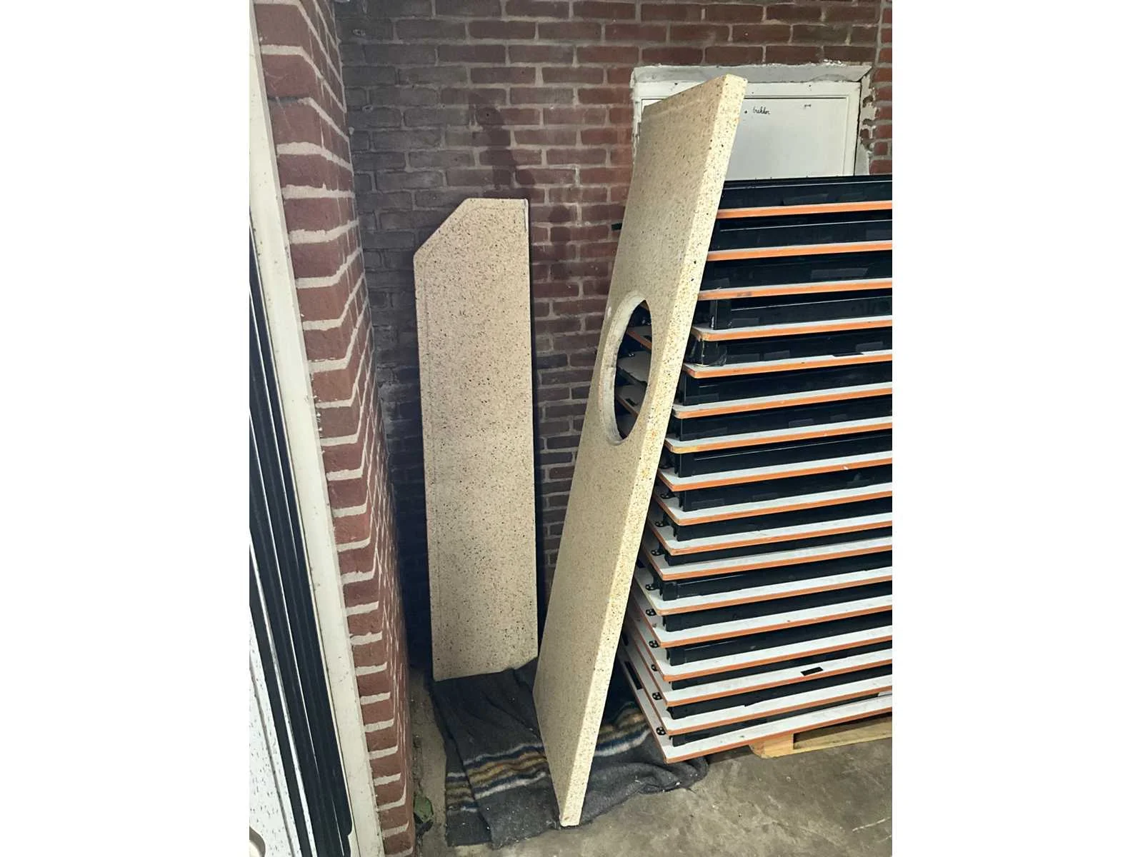 Voorzien van opening voor wastafel en kraan.; 2 losse delen No Lengte: 201cm Breedte: 60cm Hoogte: 5cm