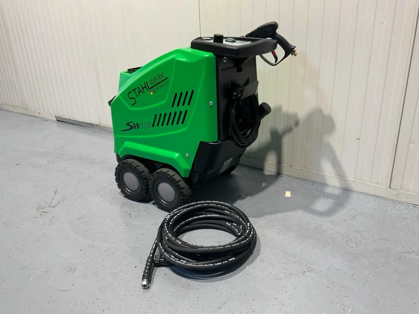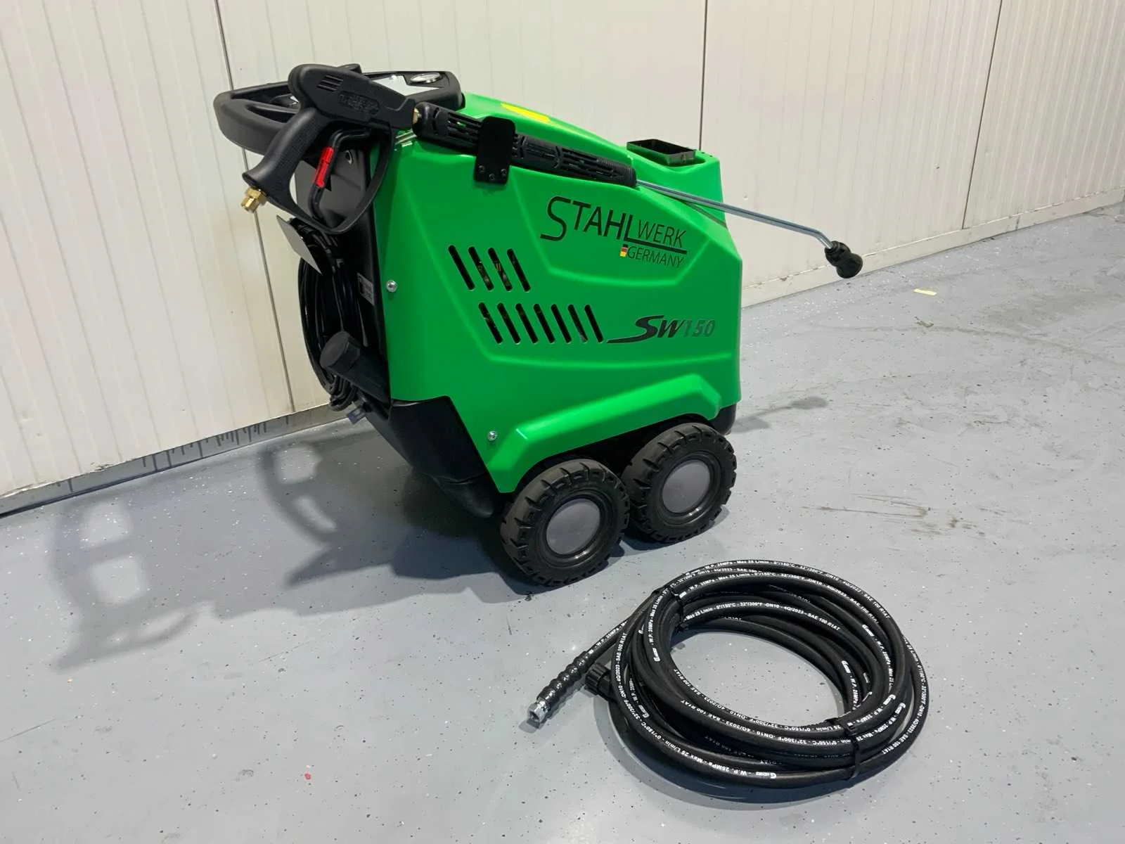 Werkdruk 150bar – 15Mpa Maximale temperatuur 90°C - 284°F Maximale druk 150bar – 15Mpa Capaciteit 900 l/u – 15 l/min brander vermogen 3600W motorkracht 3,0 kW stroomvoorziening 230V/50Hz wasmiddel tank diesel Nee Merk: Stahlwerk Type: SW150 Bouwjaar: 2025 Temperatuurbereik max.: 90°c Aansluiting: 230V Eigen gewicht: 35kg Totale afmeting L: 800mm Totale afmeting Breedte: 550mm Totale afmeting Hoogte: 750mm