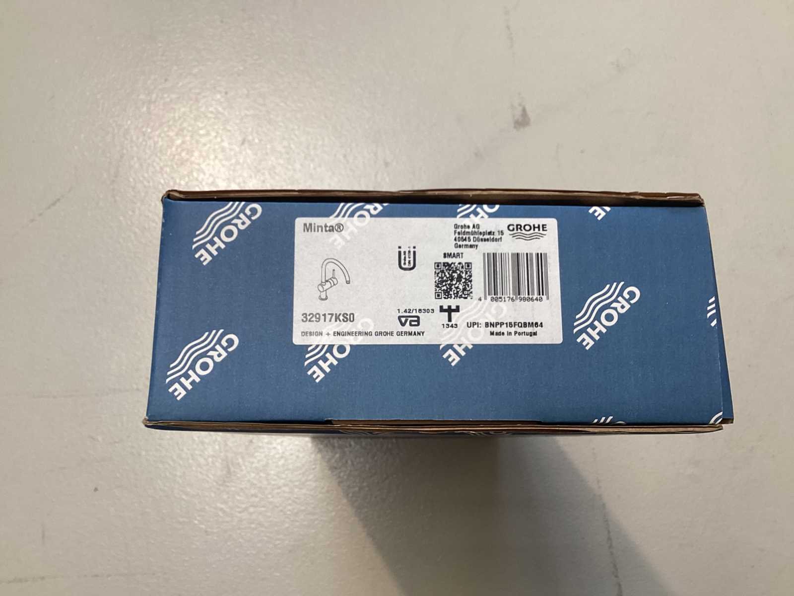 Wordt ongebruikt in verpakking geleverd. Nee Merk: Grohe Model: Minta C 32917KS0 Product type: Keukenmengkraan Kleur: zwart Hoogte: 35cm