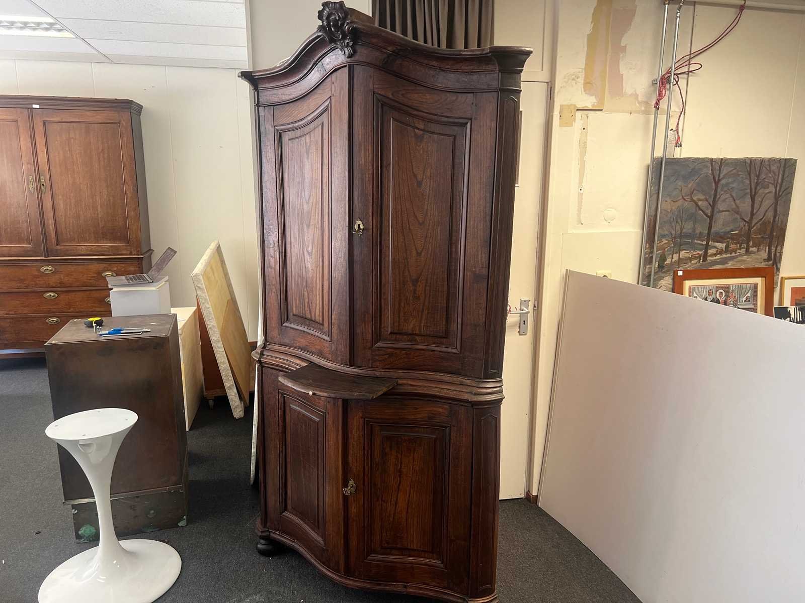 18 de eeuwse iepen hoekast hoek 80 x 80 voorzijde 115 en 220 hoog No Land: Frans Model: Hoekkast Iepenhout Lengte: 80cm Breedte: 115cm Hoogte: 220cm
