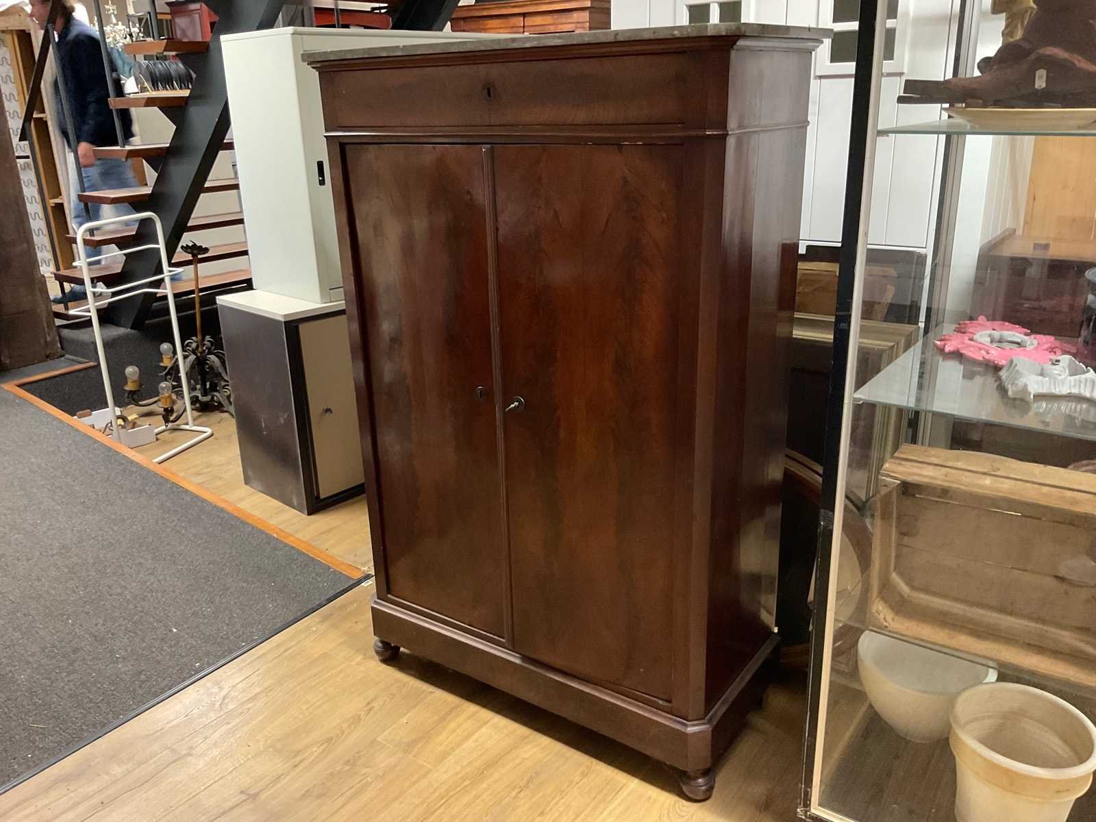 Antieke legkast met marmeren blad, 153 x 103x45 cm Nee