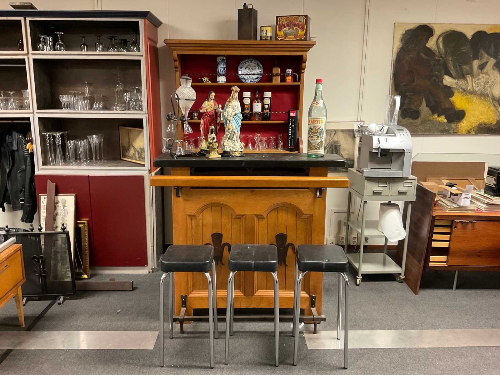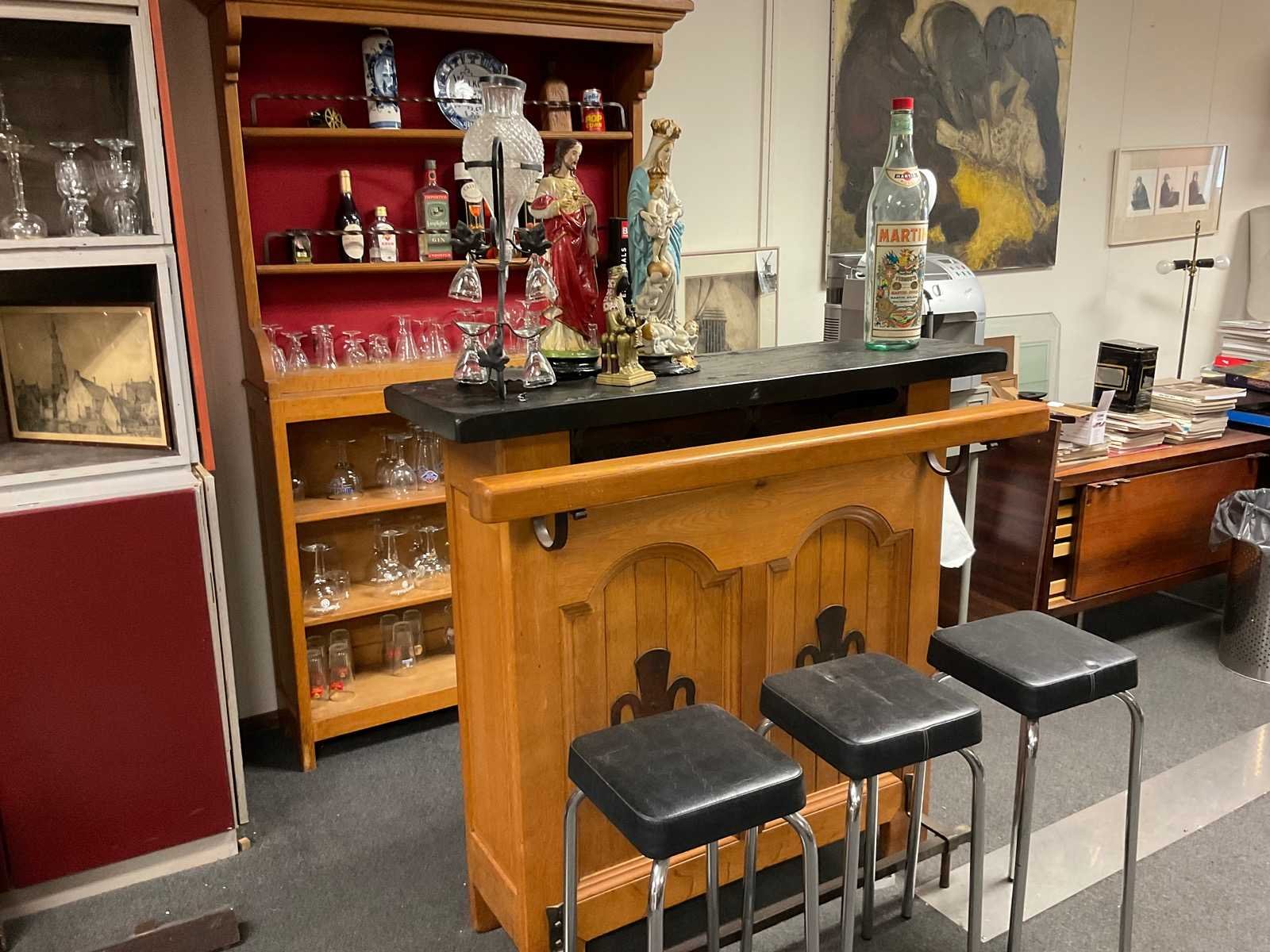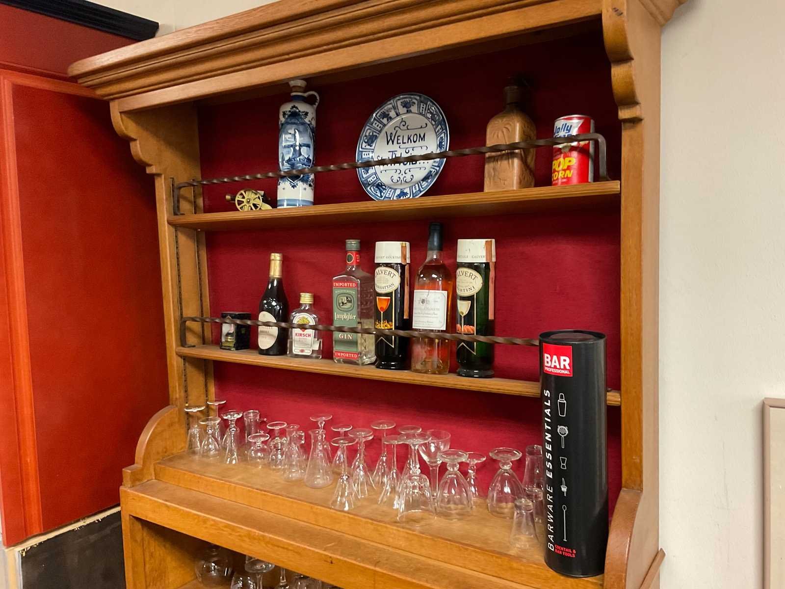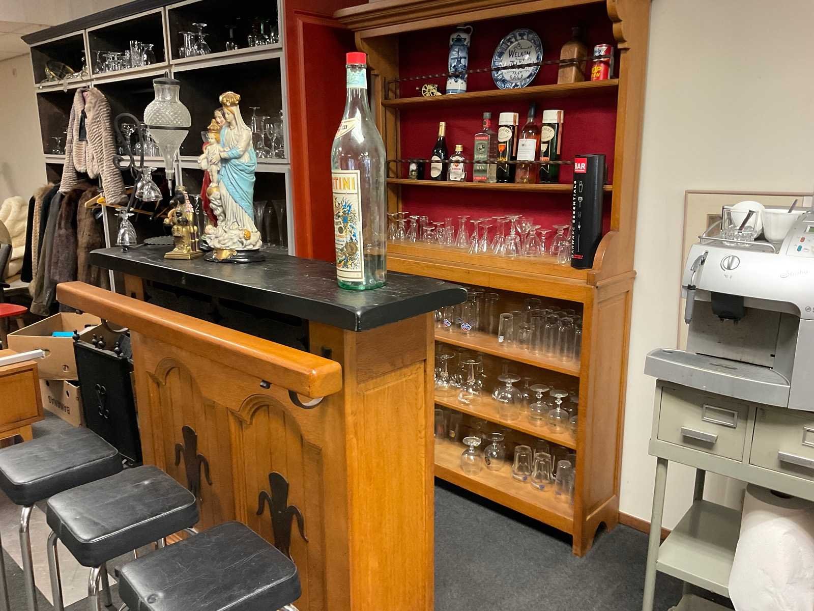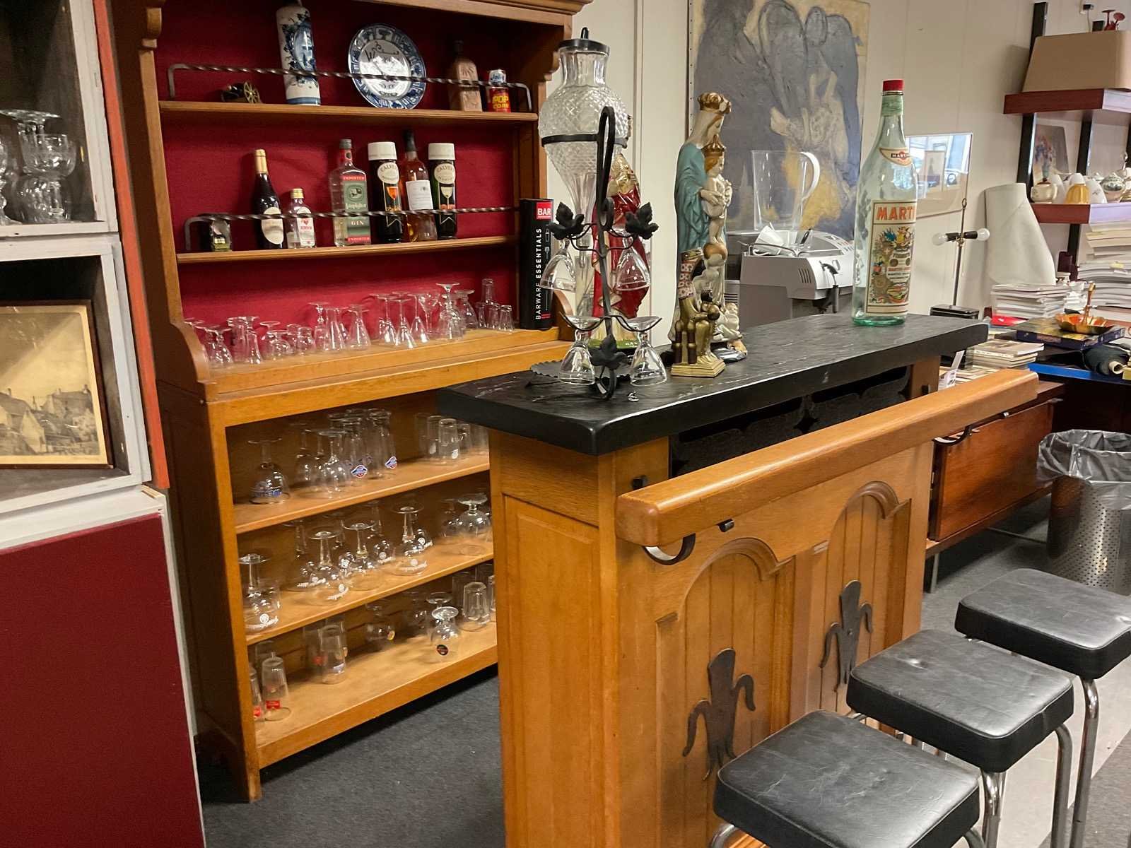 Barmeubelen (2x) met diverse inhoud, glazen, beelden en aardewerk Nee
