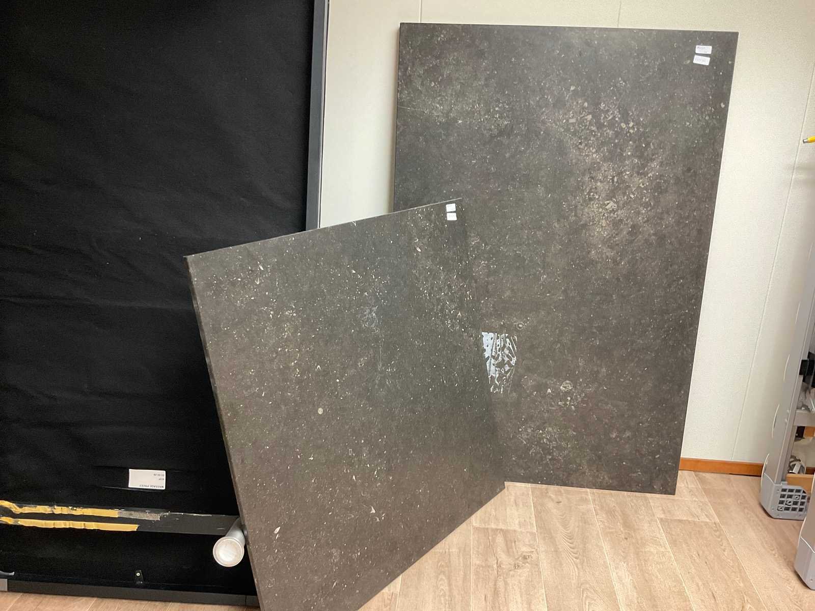 150x101 dikte 2,6 en 101 x 101 dikte 1,6 Nee Kleur: Donkergrijs Materiaal: Blauwe hardsteen