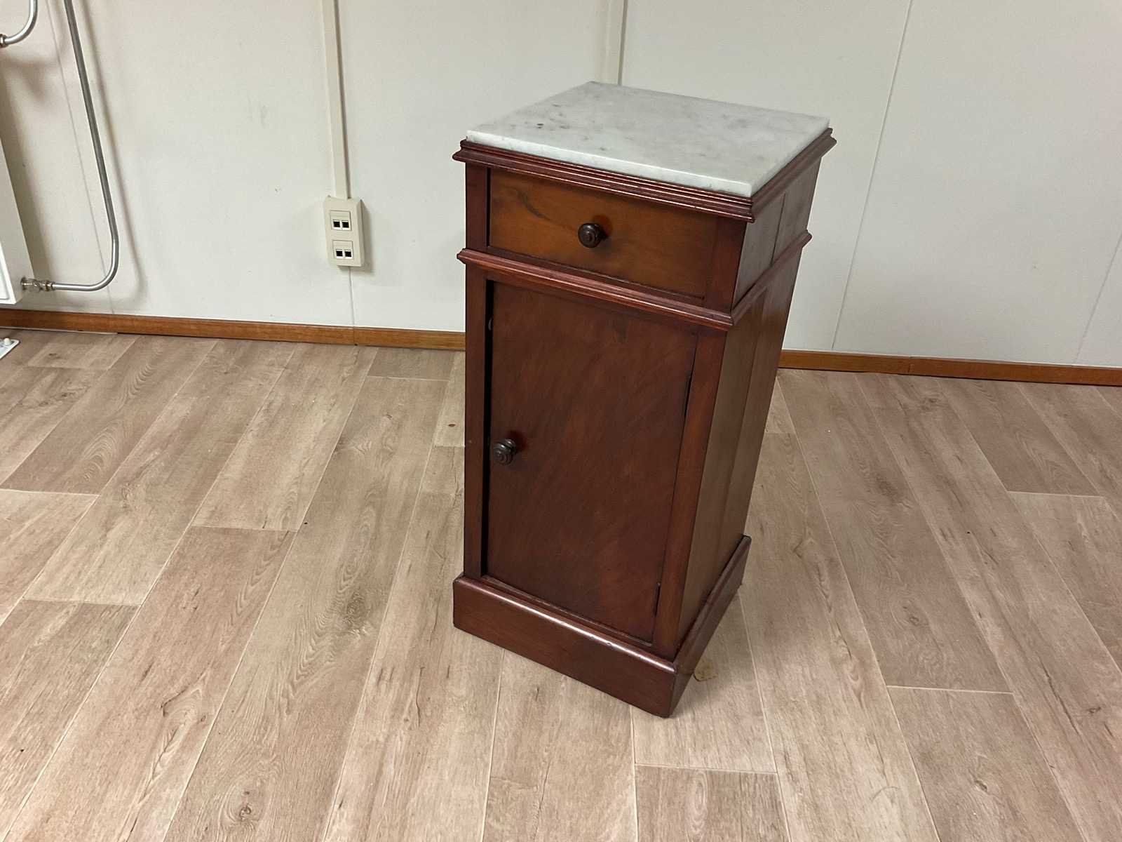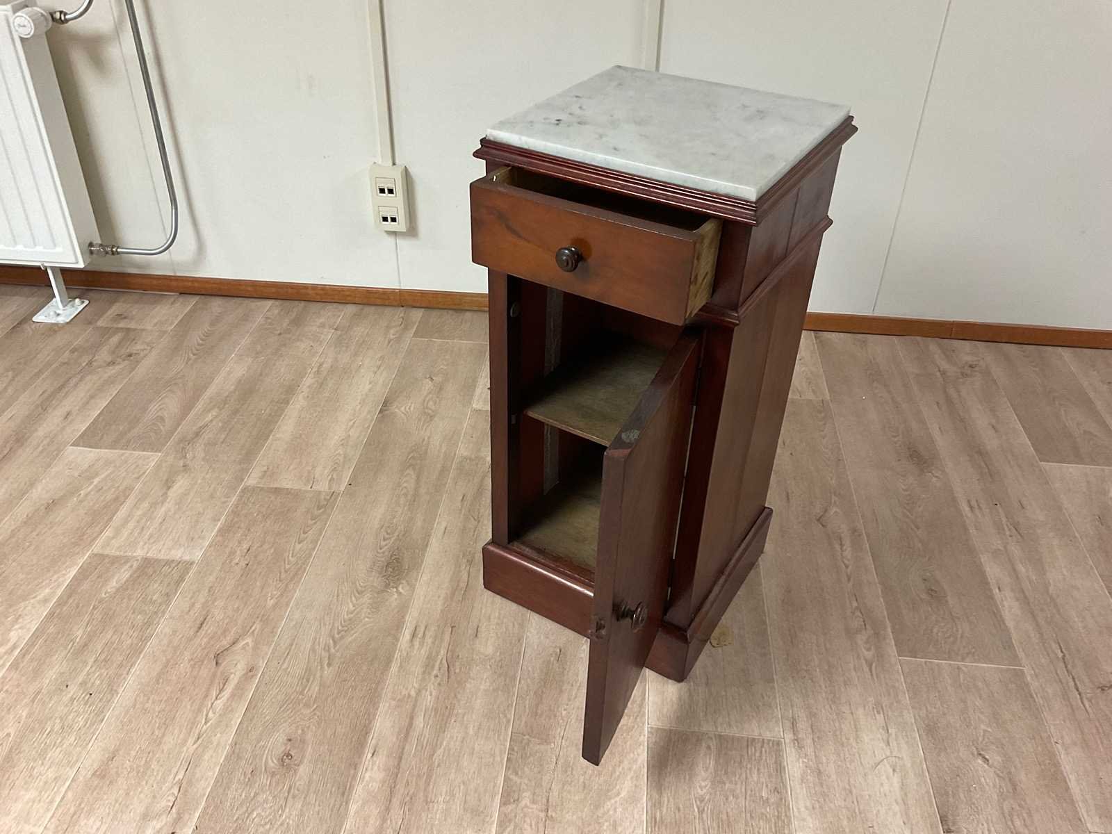 Met marmeren blad Nee Breedte: 37 Hoogte: 82 Diepte: 37cm Materiaal: Hout en marmer