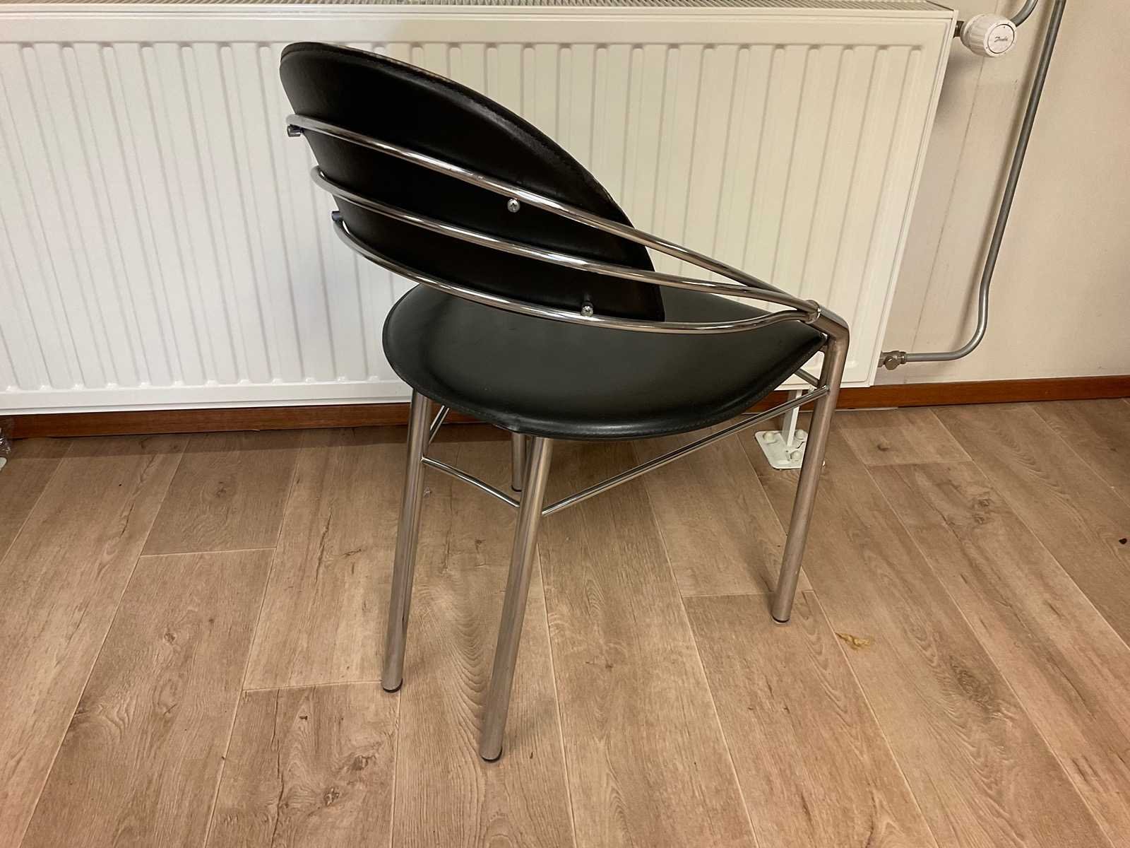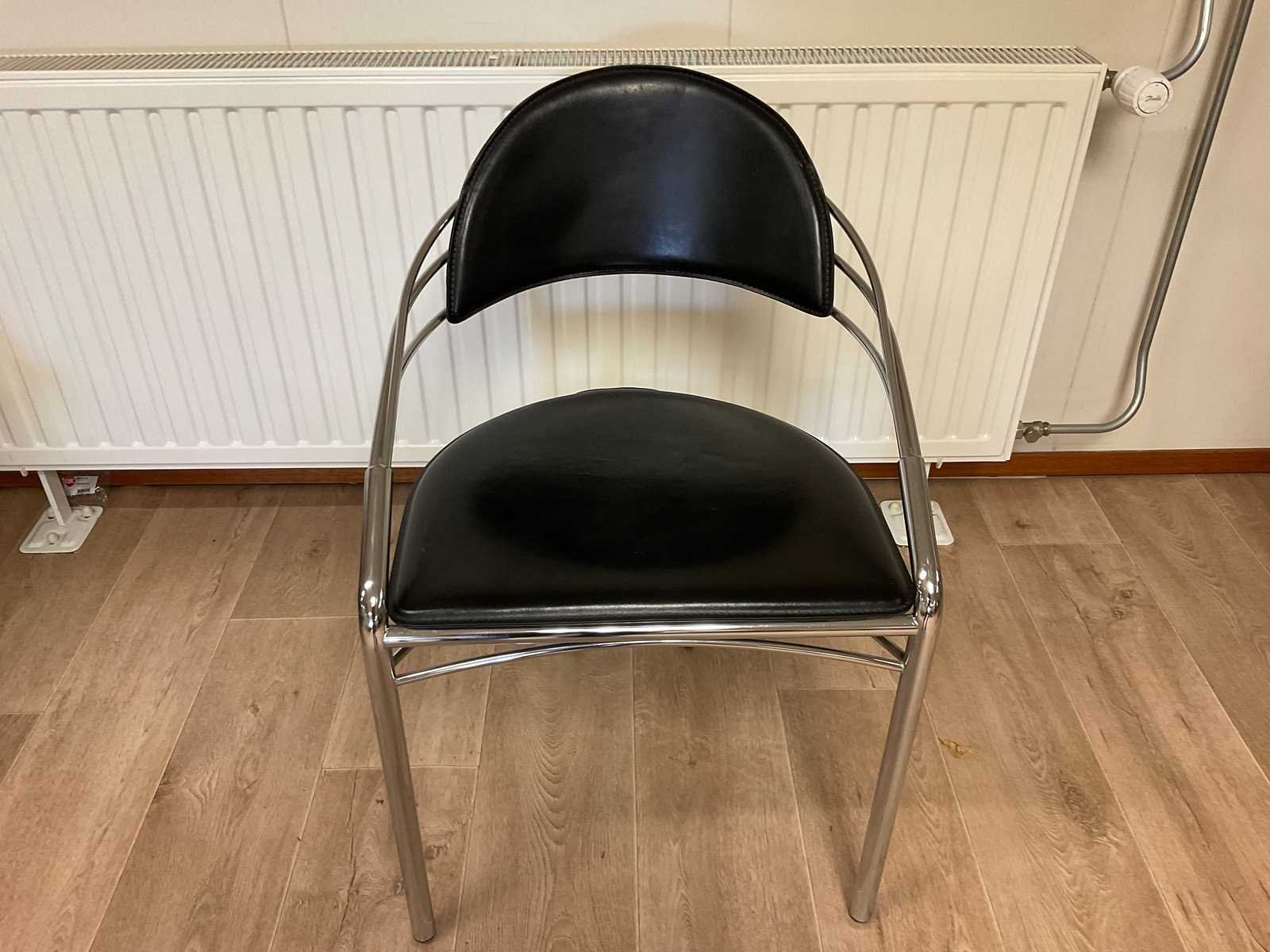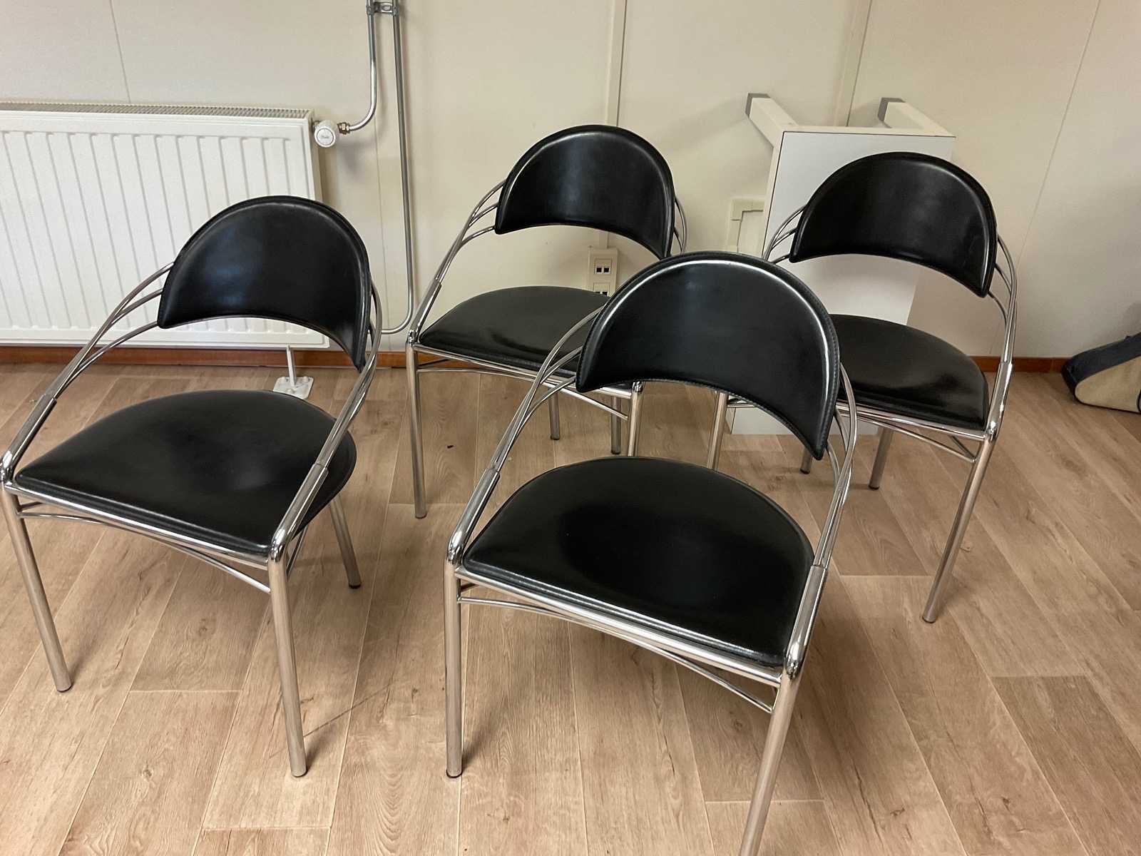 Design eetkamerstoelen 4 stuks Nee Hoogte: 80cm Zithoogte: 46cm Materiaal: Metaal en leder