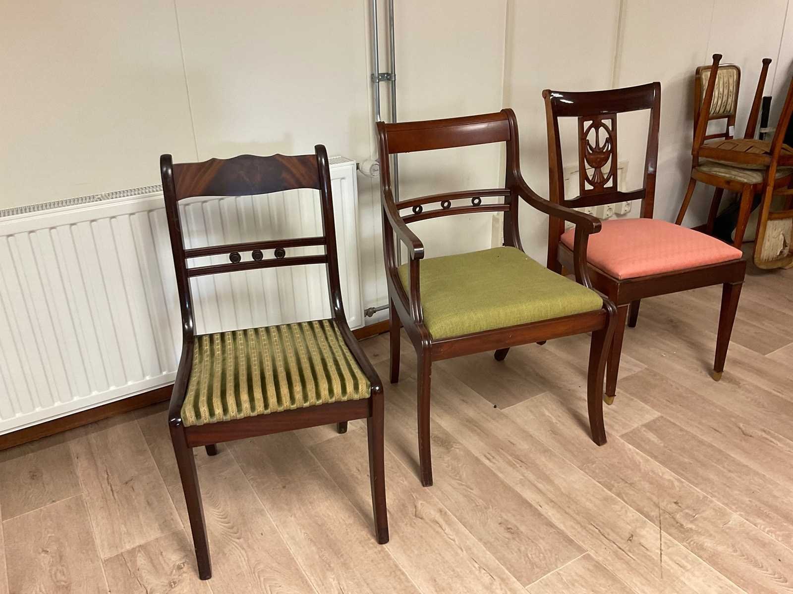 Drie antieke stoele met stoffen bekleding Nee Materiaal: Hout