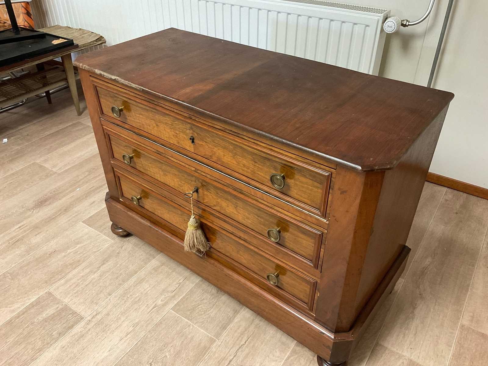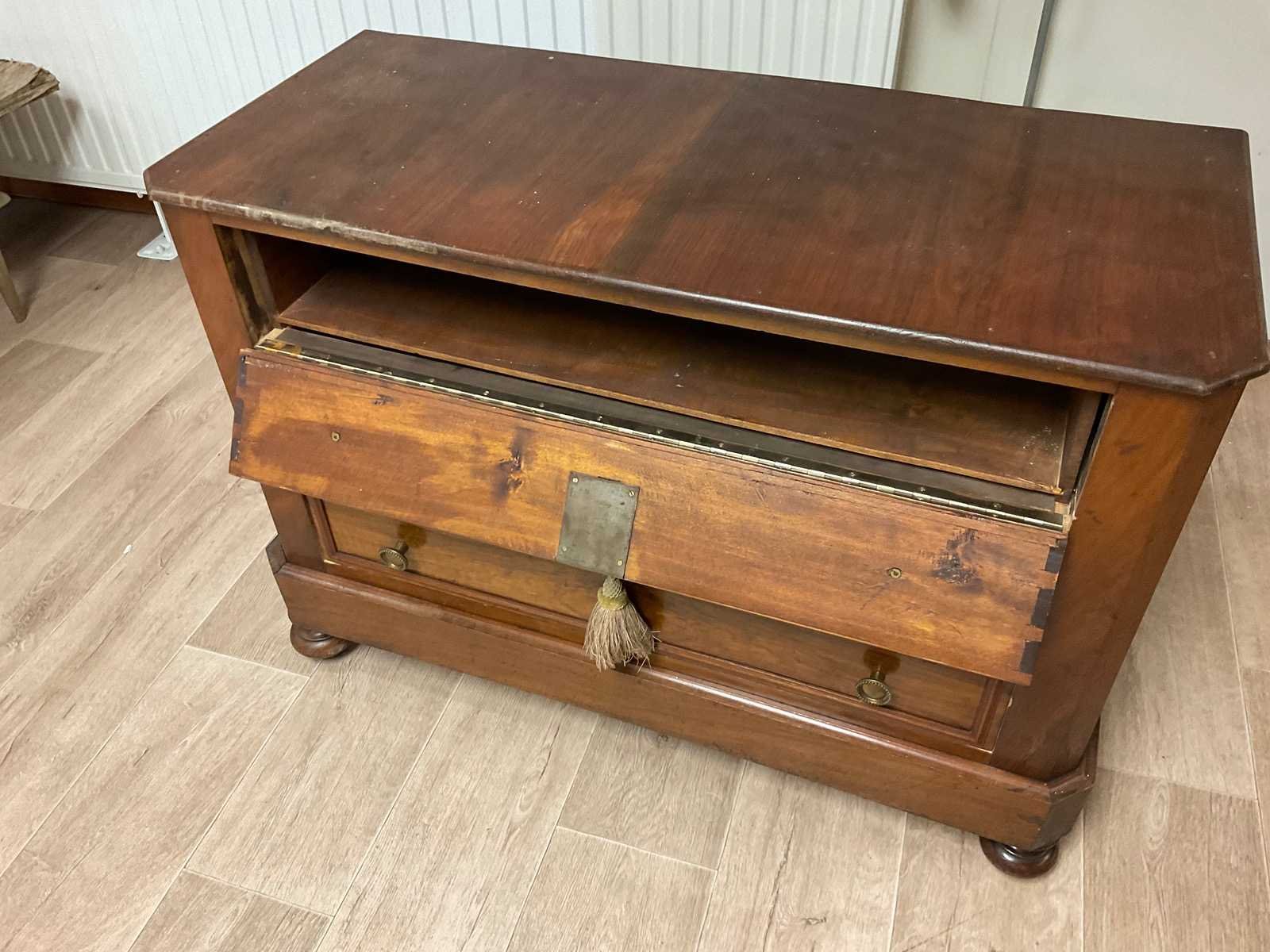Commode met bolpootjes twee lades en een klep Nee Lengte: 99cm Breedte: 43cm Hoogte: 71cm Materiaal: Hout