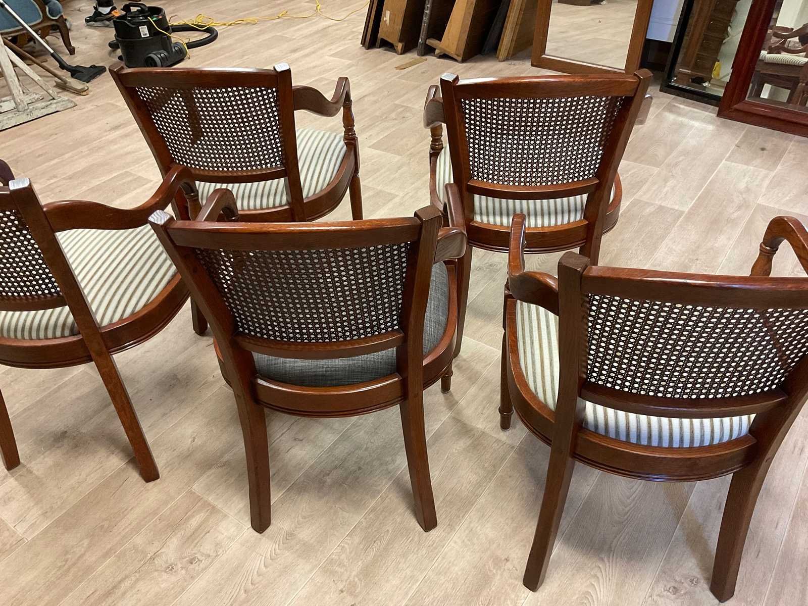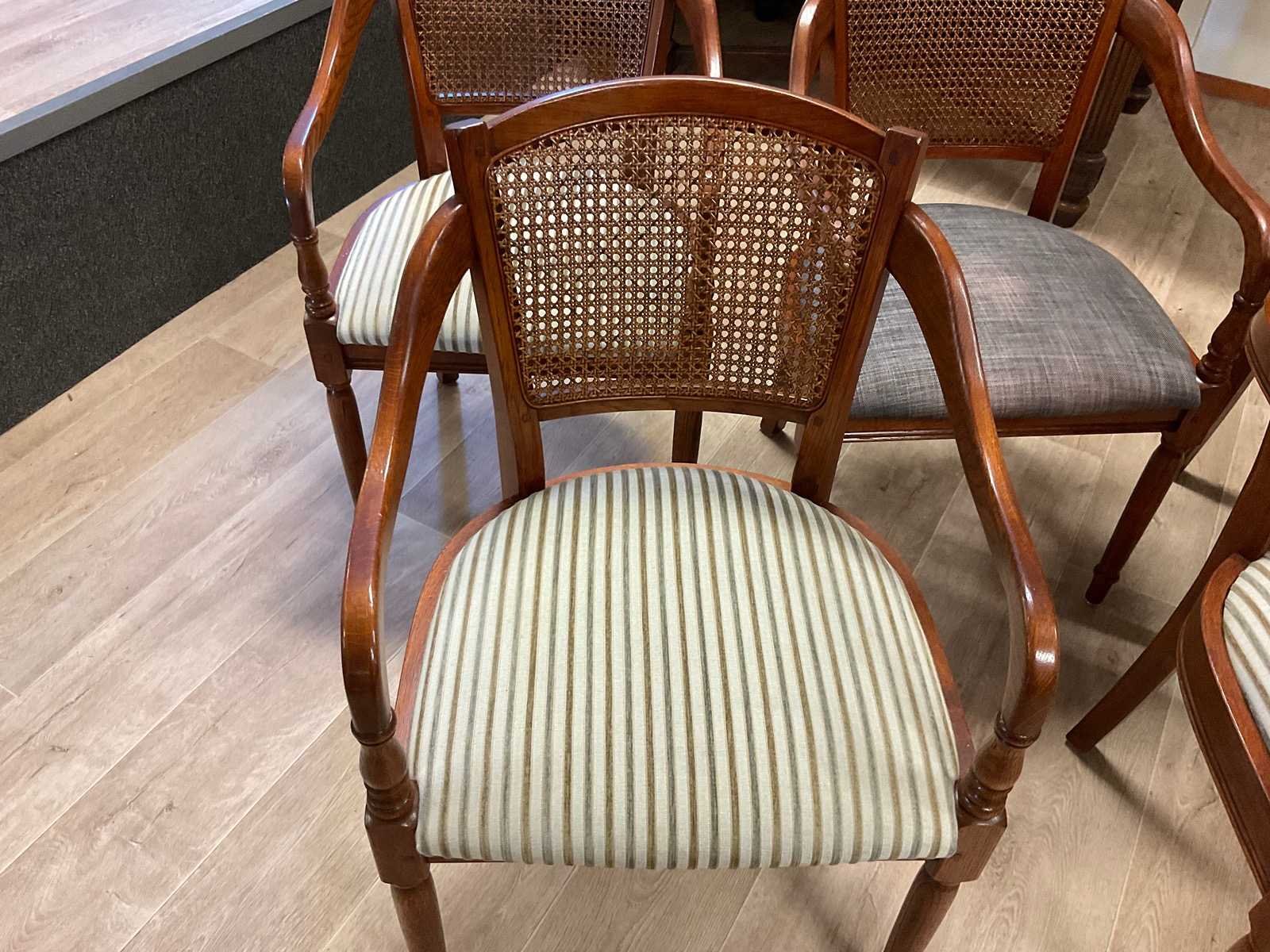 5x stoelen met stoffen bekleding en rieten rug Nee