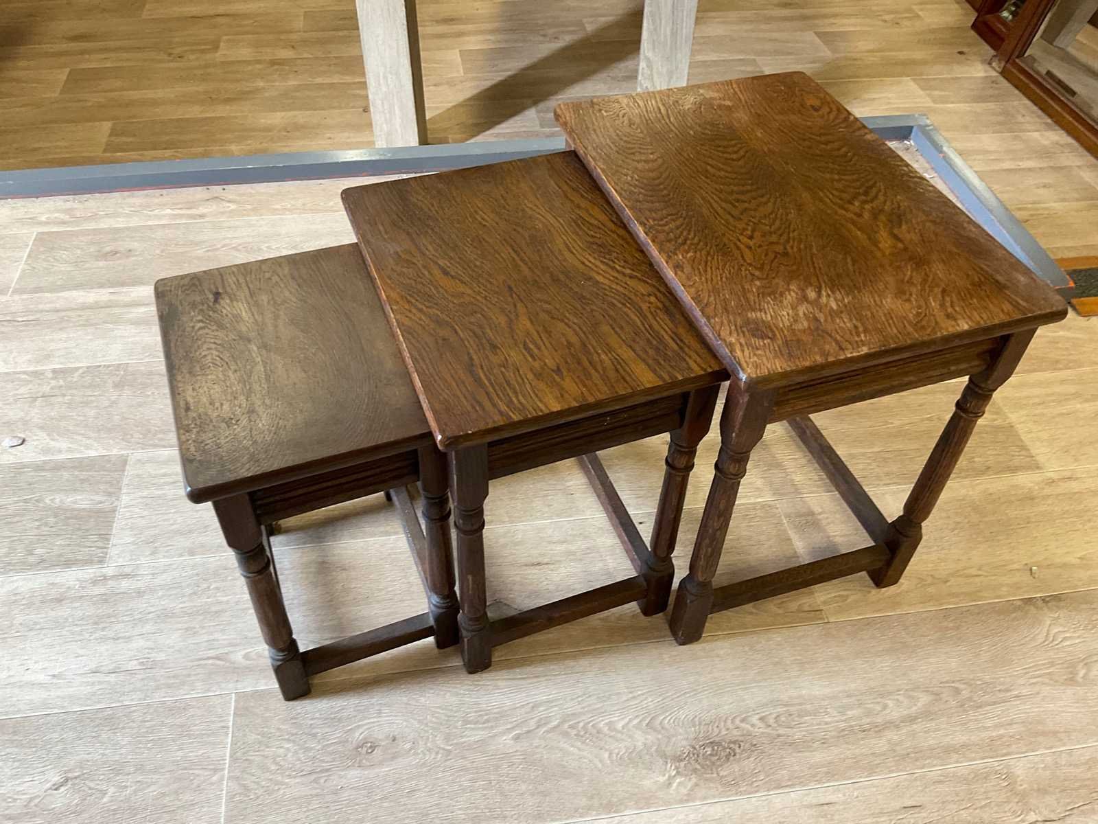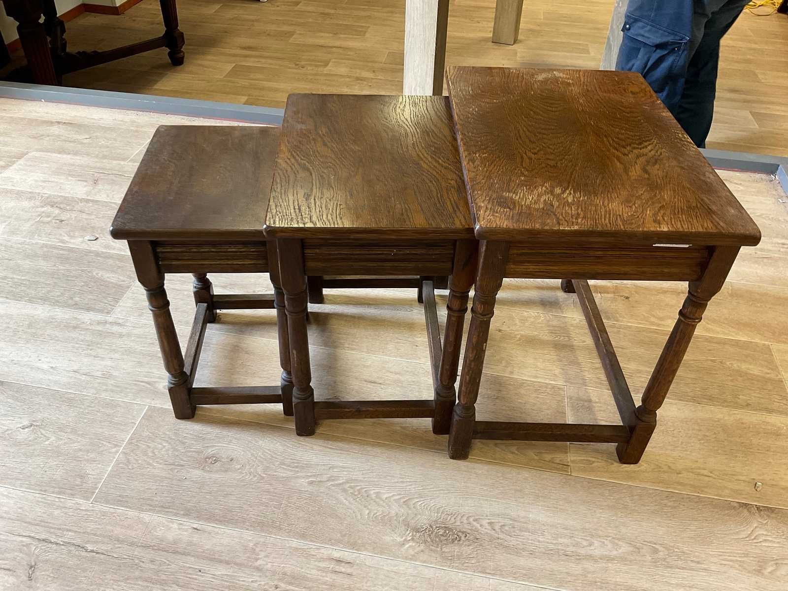 Set van bijzettafeltjes, graatste maat is gemeten Nee Lengte: 51cm Breedte: 35cm Hoogte: 48cm Materiaal: Hout