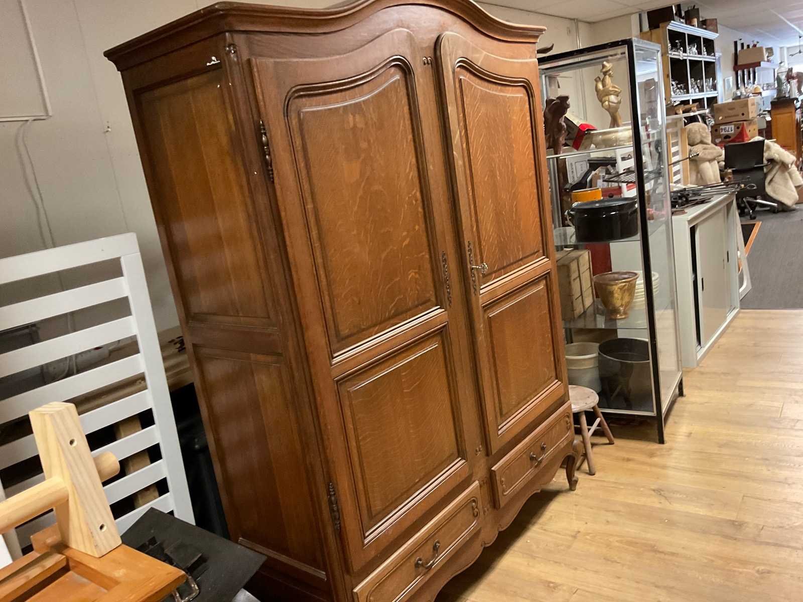 Eiken klassieke kast, binnenin gemaakt tot kapstok Nee Breedte: 138cm Hoogte: 195cm Materiaal: Eikenhout