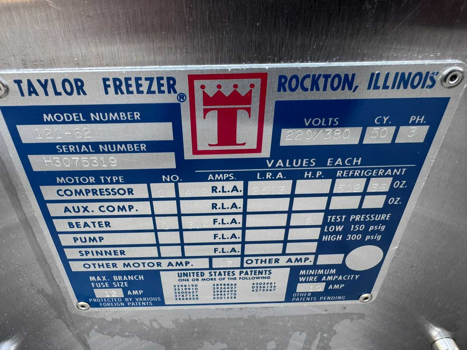 Nee Merk: Taylor Type: 121-62 Rvs: true Aansluiting: 400V