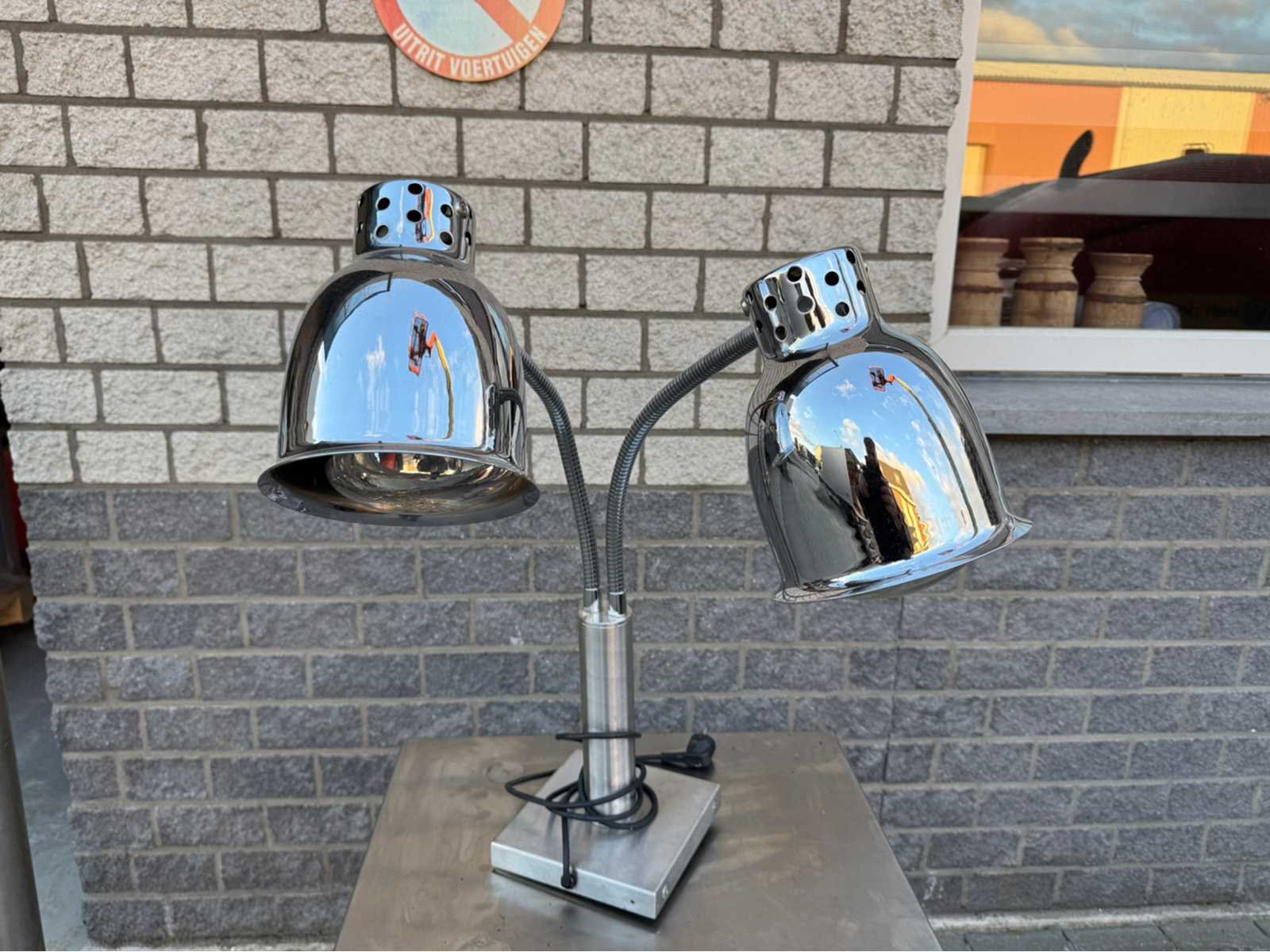 Nee Merk: Scholl Type: duo warmhoud lamp Aansluiting: 230V Chroom: true