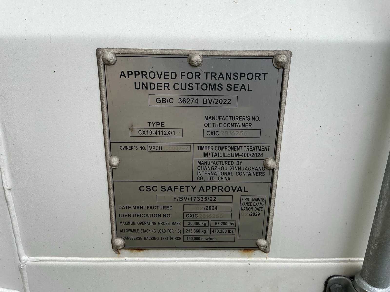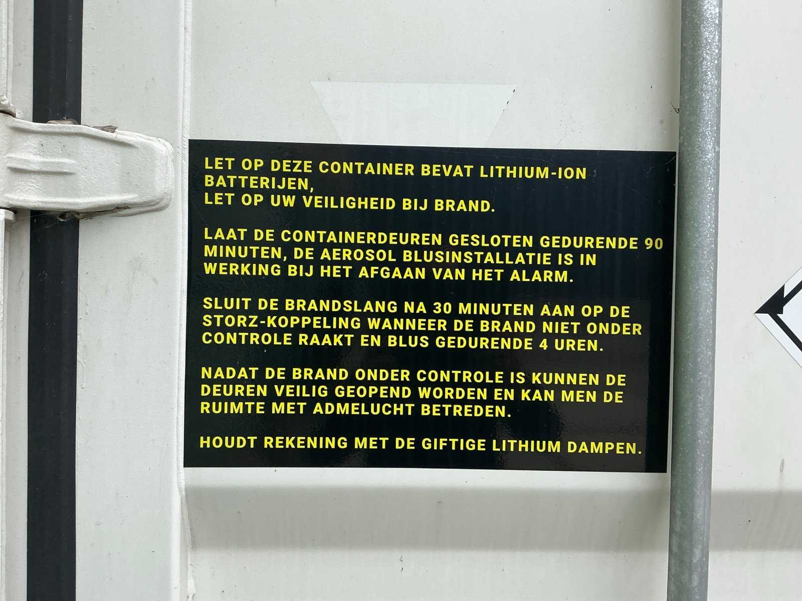Binnenbreedte 2300mm Binnenlengte 2650mm Ongebruikte opslagunit voor lithium batterijen No Merk: Lithium safety container Type: 40HC Bouwjaar: 2024 Serienummer: VPCU4000077 Aansluiting: 220V Totale afmeting L: 12000mm Totale afmeting Breedte: 2400mm Totale afmeting Hoogte: 2900mm