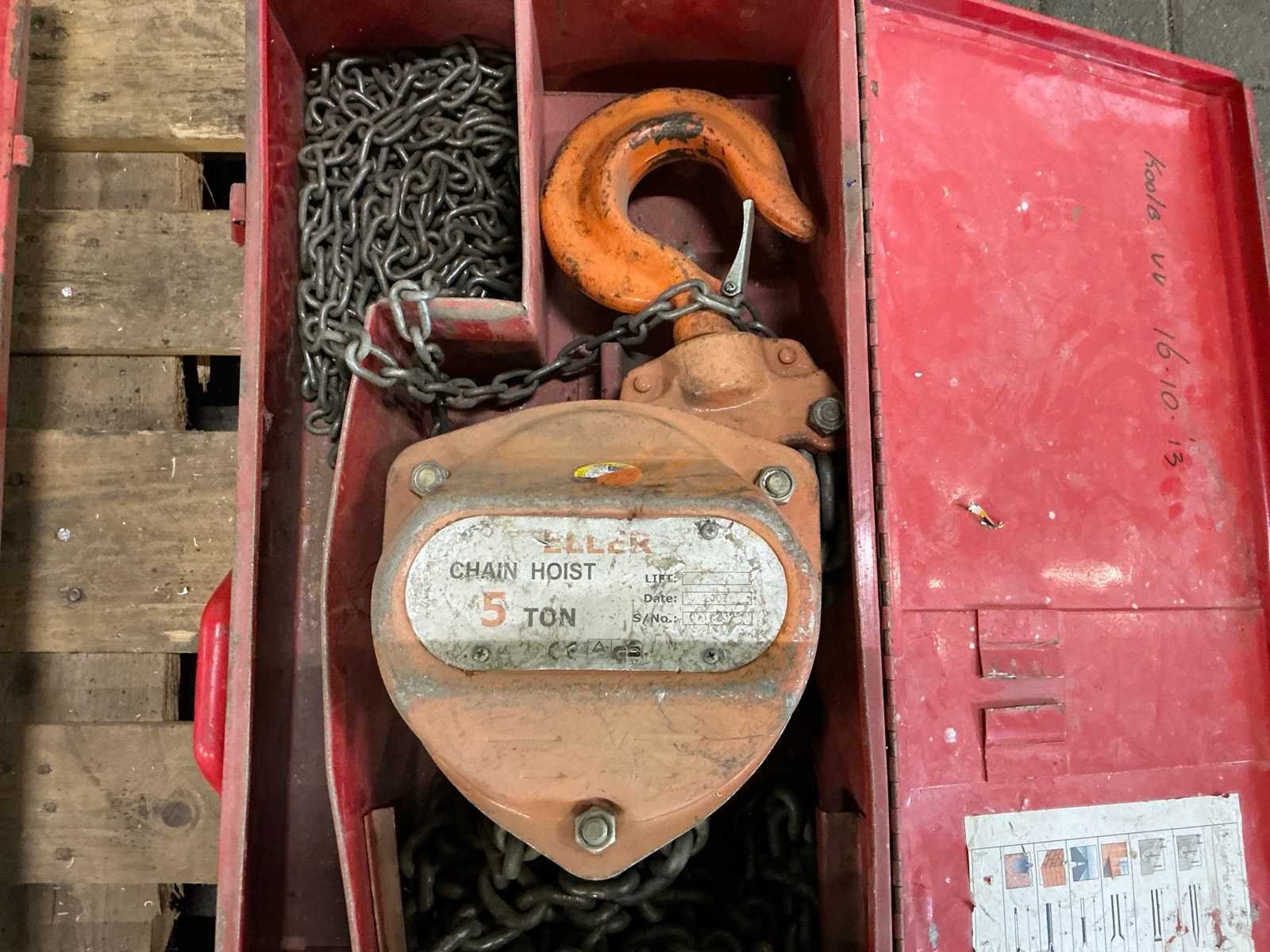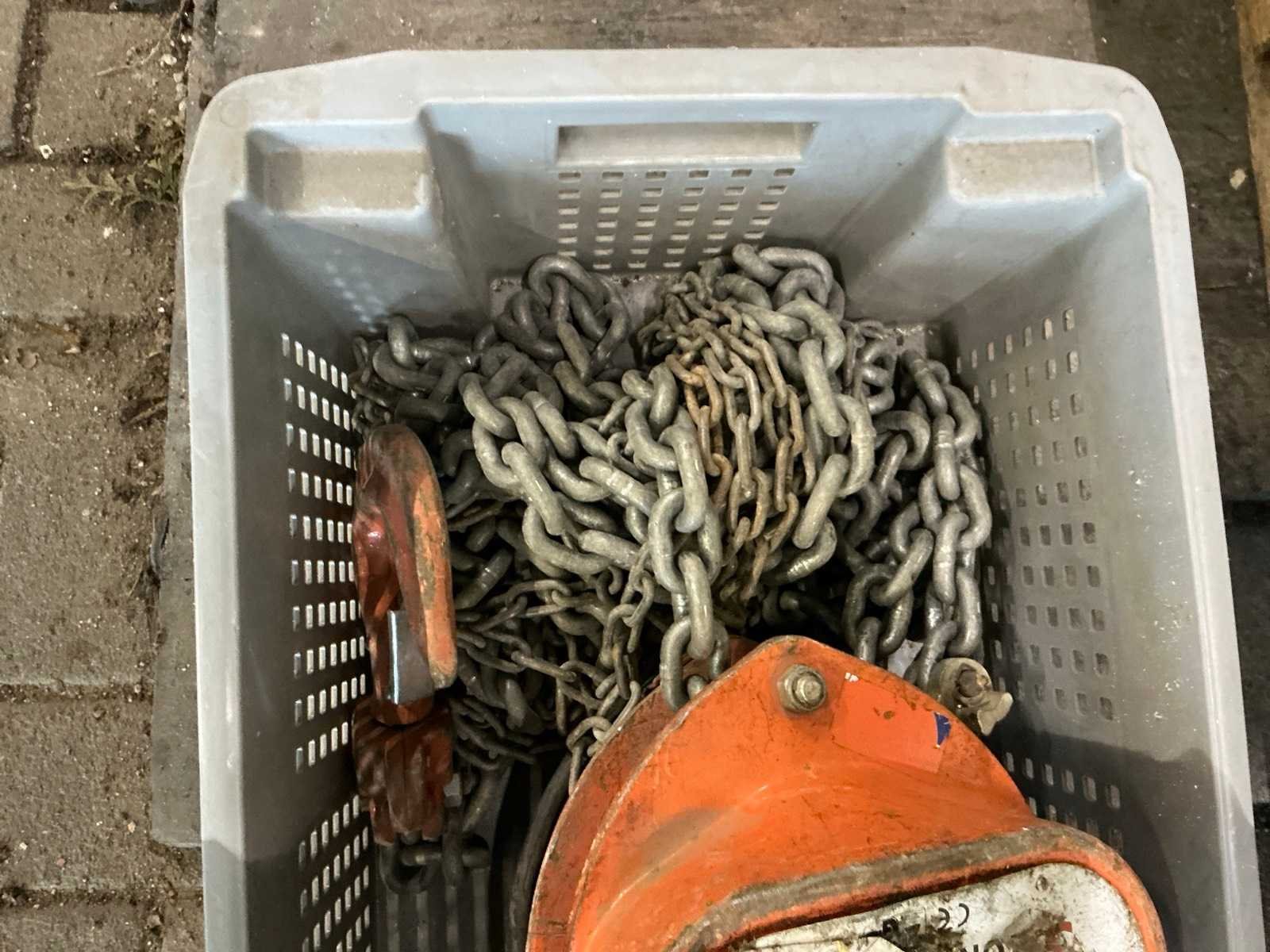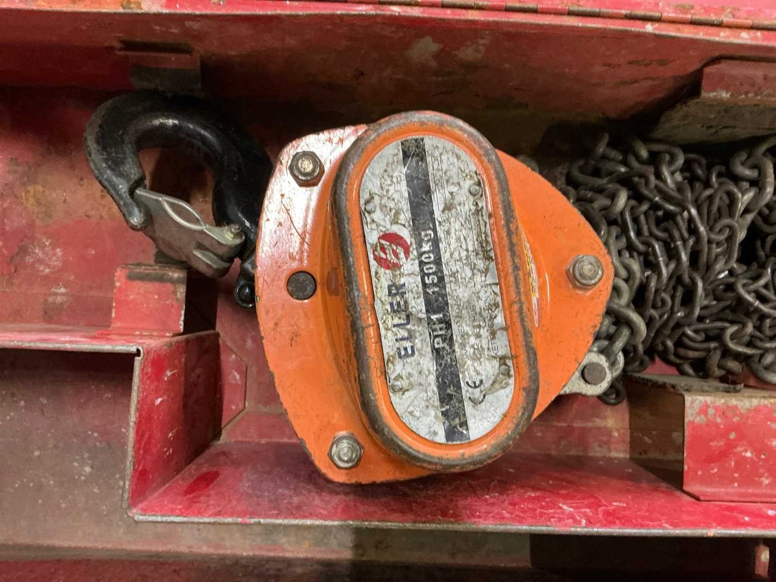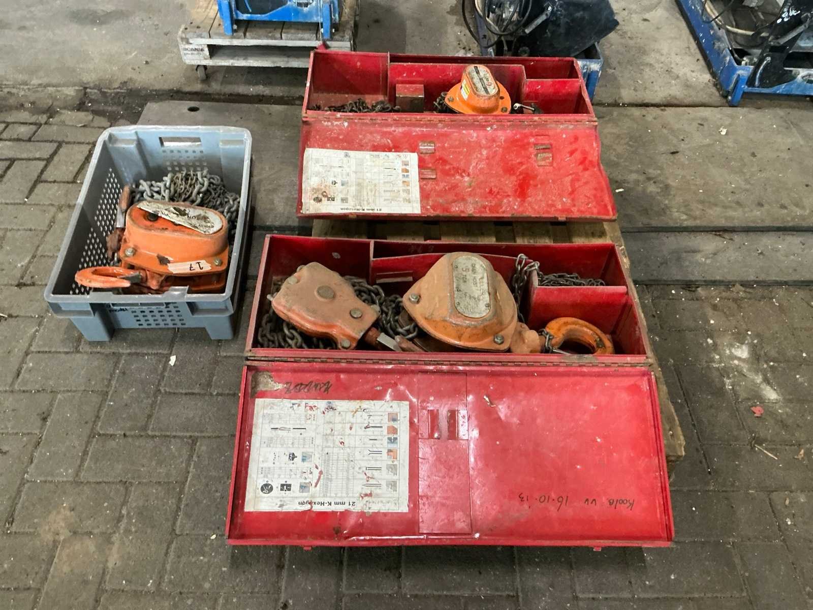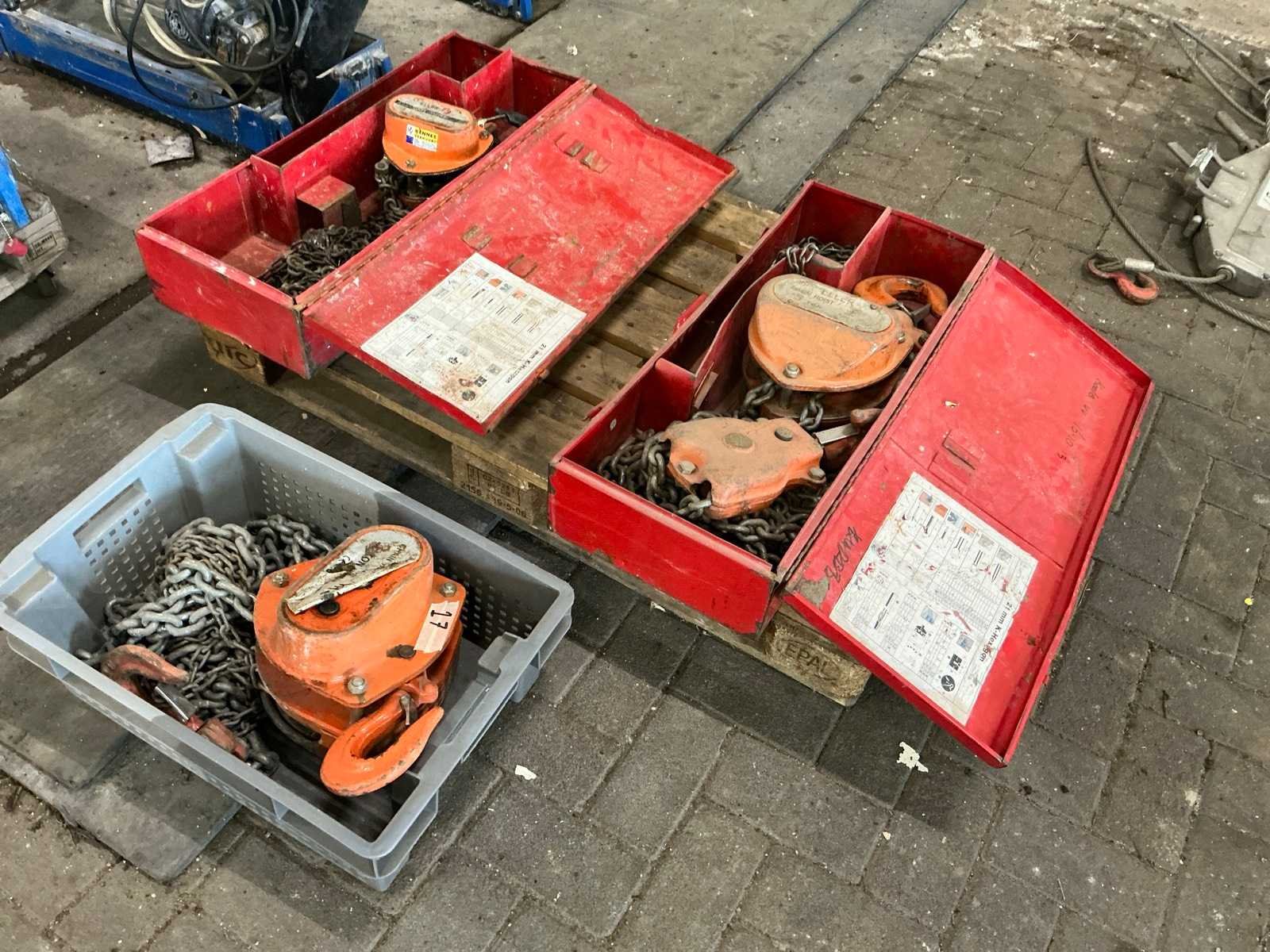 Bestaande uit 1x ketting takel 5 ton, 1x ketting takel 3 ton, 1x ketting takel 1 ton, kabel takel 1600kg Nee Merk: Milwaukee Hijsvermogen: 5000kg