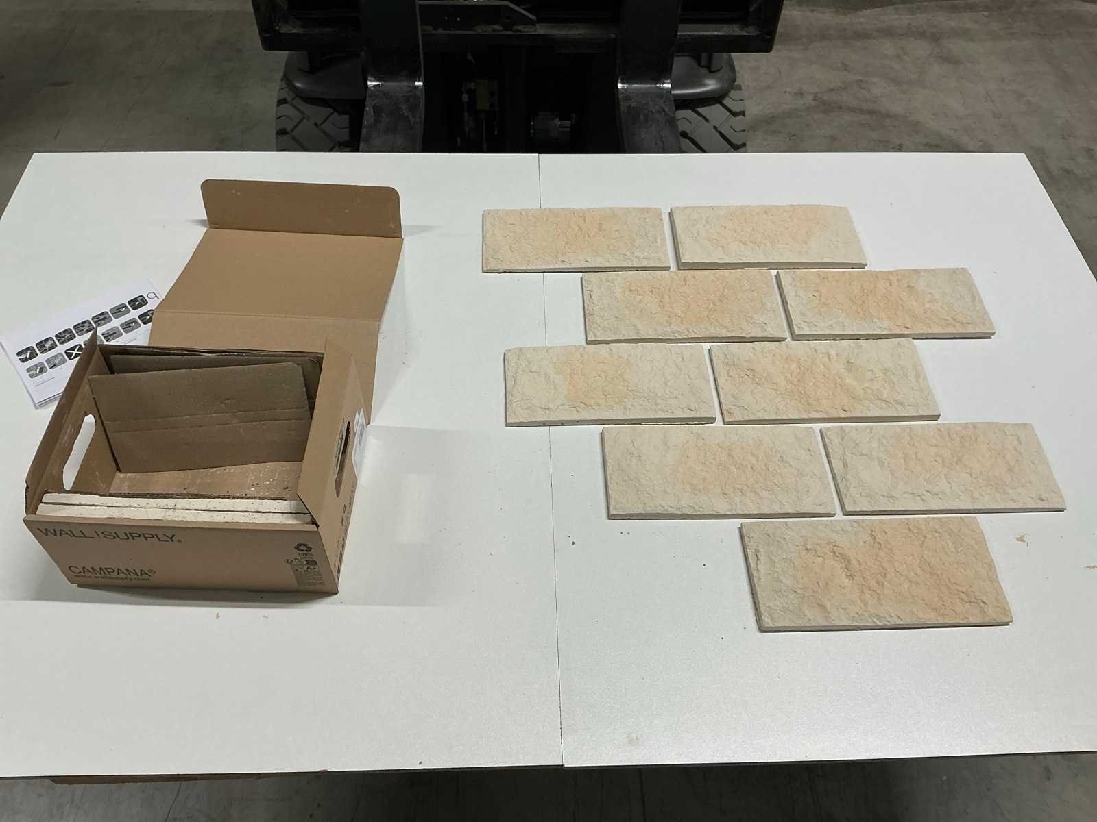 Bestaat uit: 2 pallets muurstrips, 2 pallets hoeken (285x142x), 20110443 Campana Creme, inhoud: 0,5m2 /11 Stk/VE, afmeting: 285x135x15/10mm, geadviseerde lijm: KlimexUnicol ( Interieur 2-3 kg/m2, Exterieur (floating-buttering) 4 kg /m2 ), geadviseerde voegmortel: Klimexjoint ( 2,5-3,5 kg/m2 ), fire-Class : A1. Nee Merk: Klimex Kleur: Creme genuanceerd Lengte: 28.5cm Breedte: 13.5cm Dikte: 10-15mm Materiaal: Beton Type: Campana Model: Campana Creme Gewicht: 9kg Aantal m² per verpakking: 0,5m² Aantal pakken: 300 Totaal oppervlakte: 100m² Totaal gewicht: 2600kg
