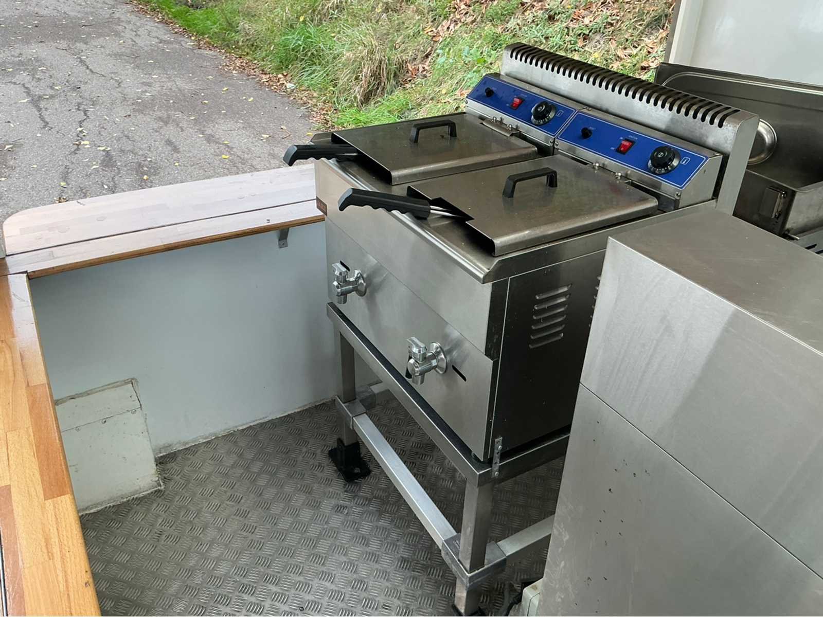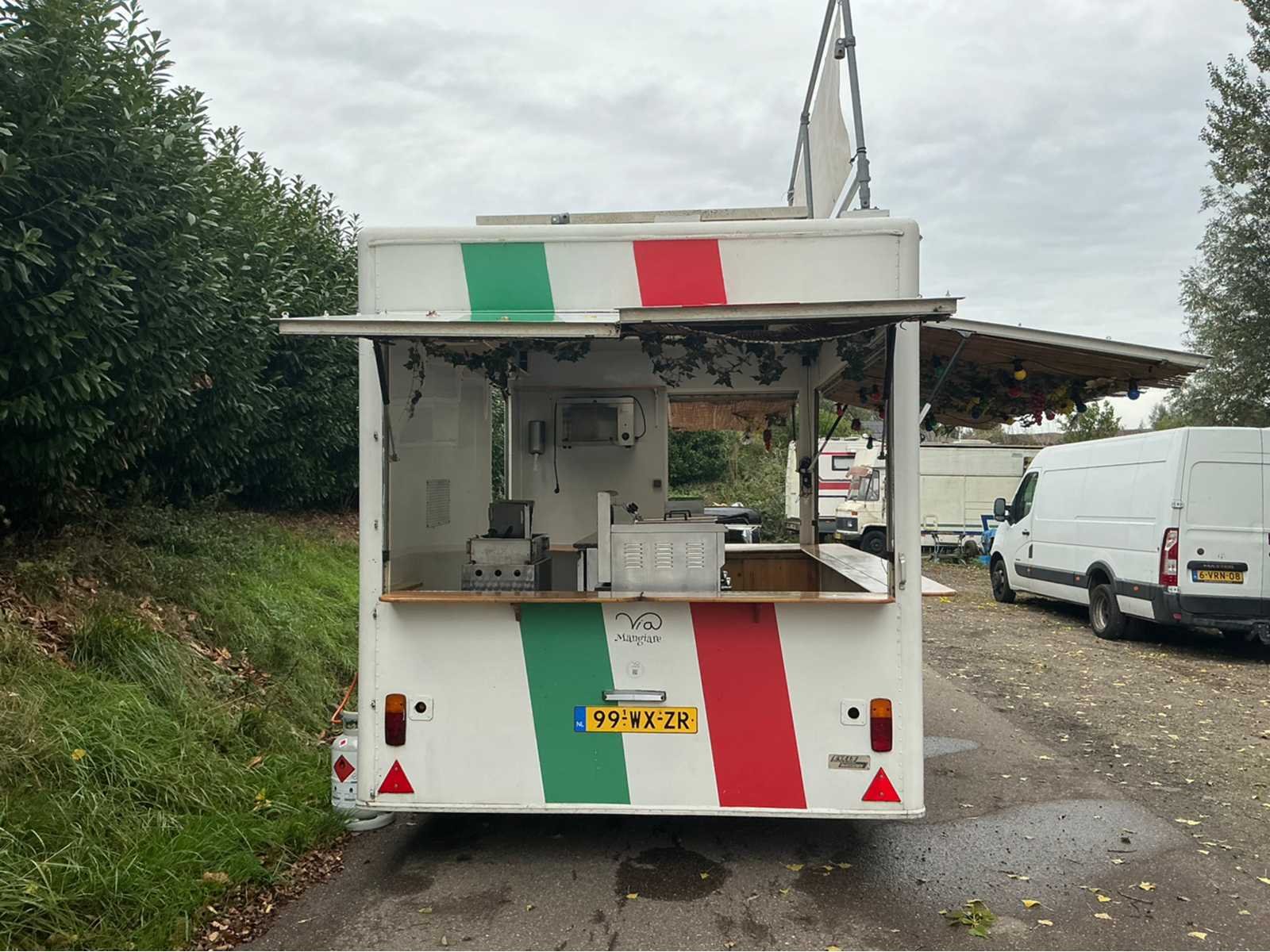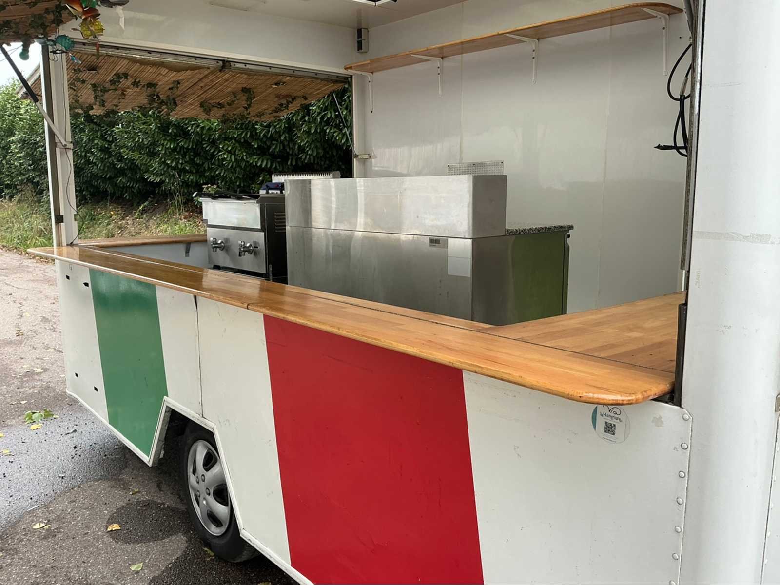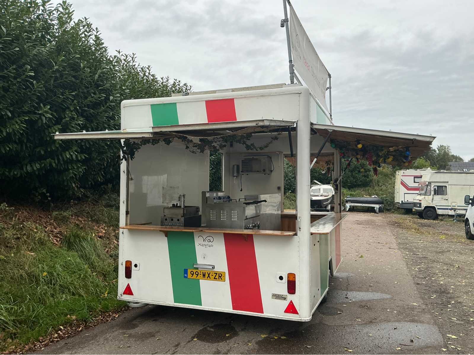 De foodtruck heeft inklapbare luiken, is voorzien van een dubbele frituurpan (2x 8 Liter), thermostaat, visfrituurpan (16 Liter), voorzien van veiligheid hitteregelaar, open grill, koelwerkbank met een granieten plaat en ingebouwde saladiere. Beide aangesloten op elektra. Alle drie de frituurpannen zijn op gas aangesloten. De foodtruck is volledig gerestaureerd in 2020. De wanden zijn bekleed met HACCP panelen, deze zijn brandveilig en makkelijk schoon te maken. De elektra zijn 2 jaar geleden door elektricien vernieuwd. Schokdempers en banden zijn in 2022 vernieuwd. Stroomvoorziening kan 3,5 kW aan. er is een kleine schade aan de wieldop. (LET OP! dit voertuig heeft een kenteken registratie, bij afhalen dient u dit ter plaatste bij een derde partij te naam te stellen of te exporteren, hier zijn extra kosten aan verbonden) Nee Merk: Evels Bouwjaar: 1984 Datum eerste toelating: 1984-06-26 Kenteken: 99wxzr Kentekenpapieren compleet?: true Aantal assen: 1 Laadvermogen: 390kg Eigen gewicht: 1110kg Totale afmeting Lengte: 238ml Totale afmeting Breedte: 389ml Totale afmeting Hoogte: 290ml