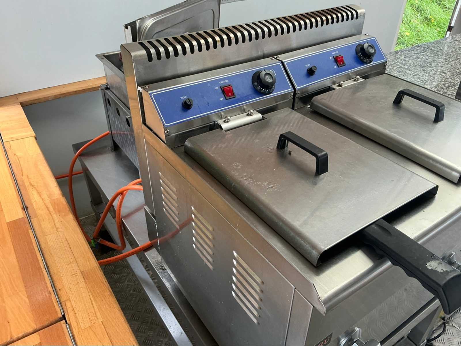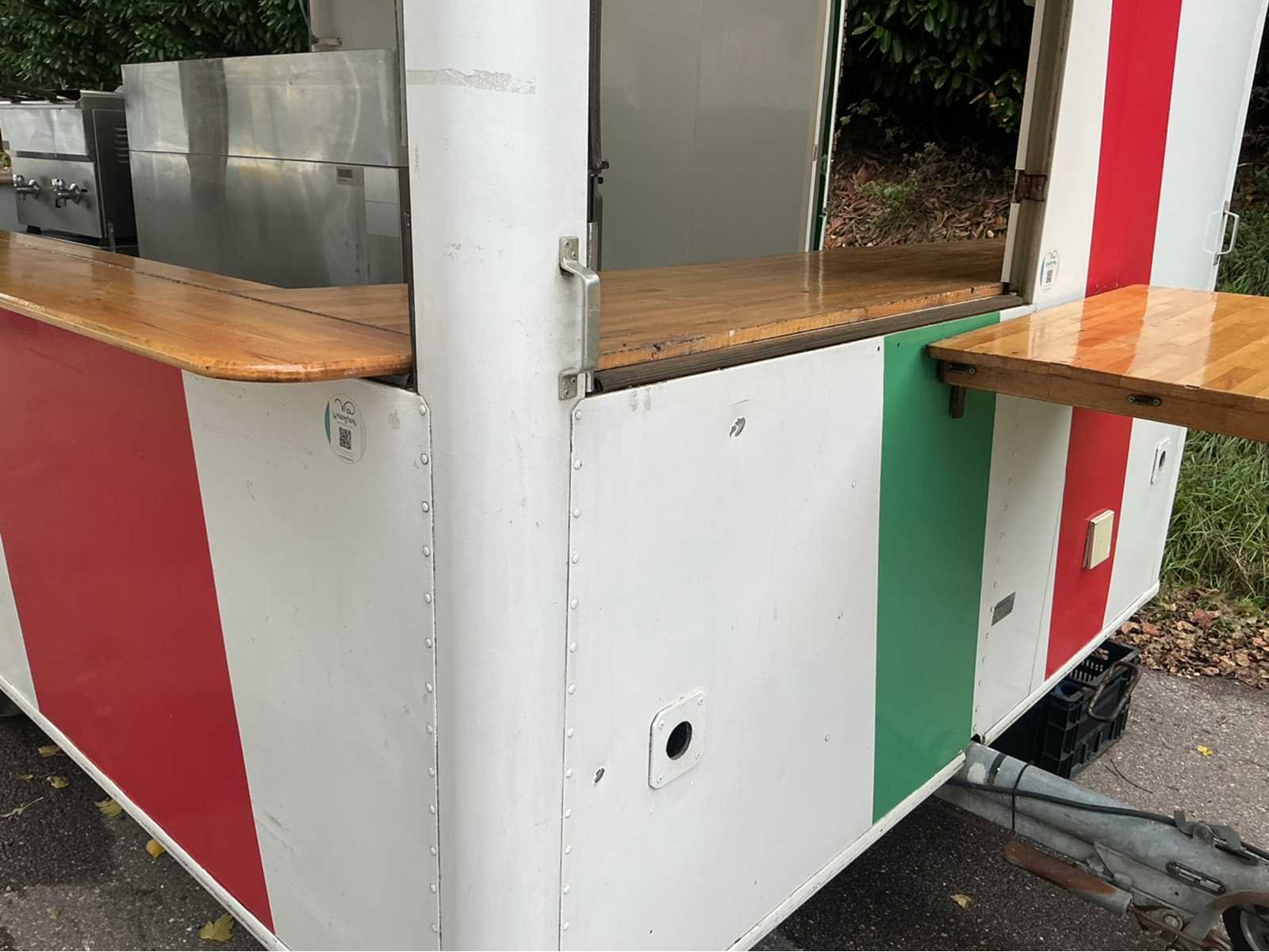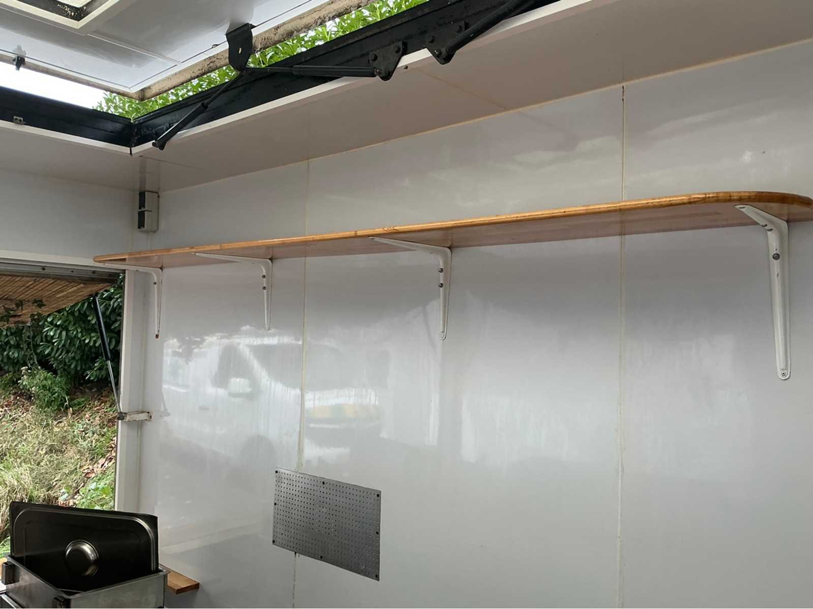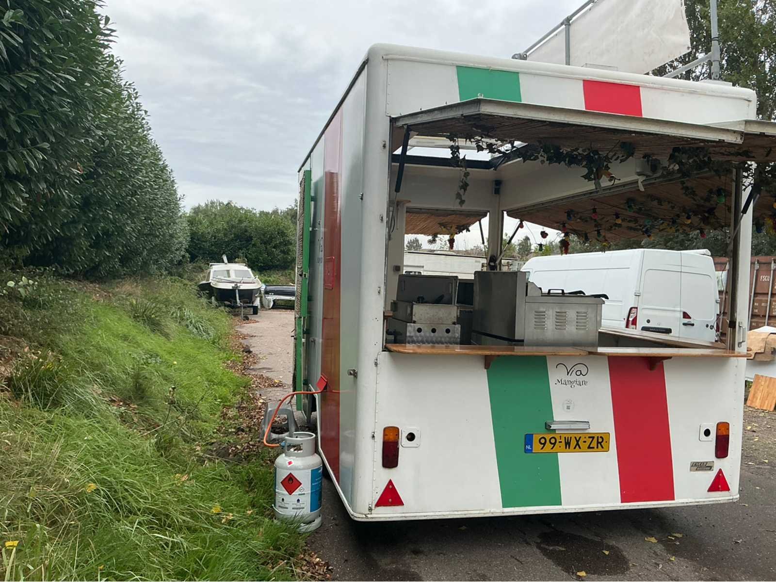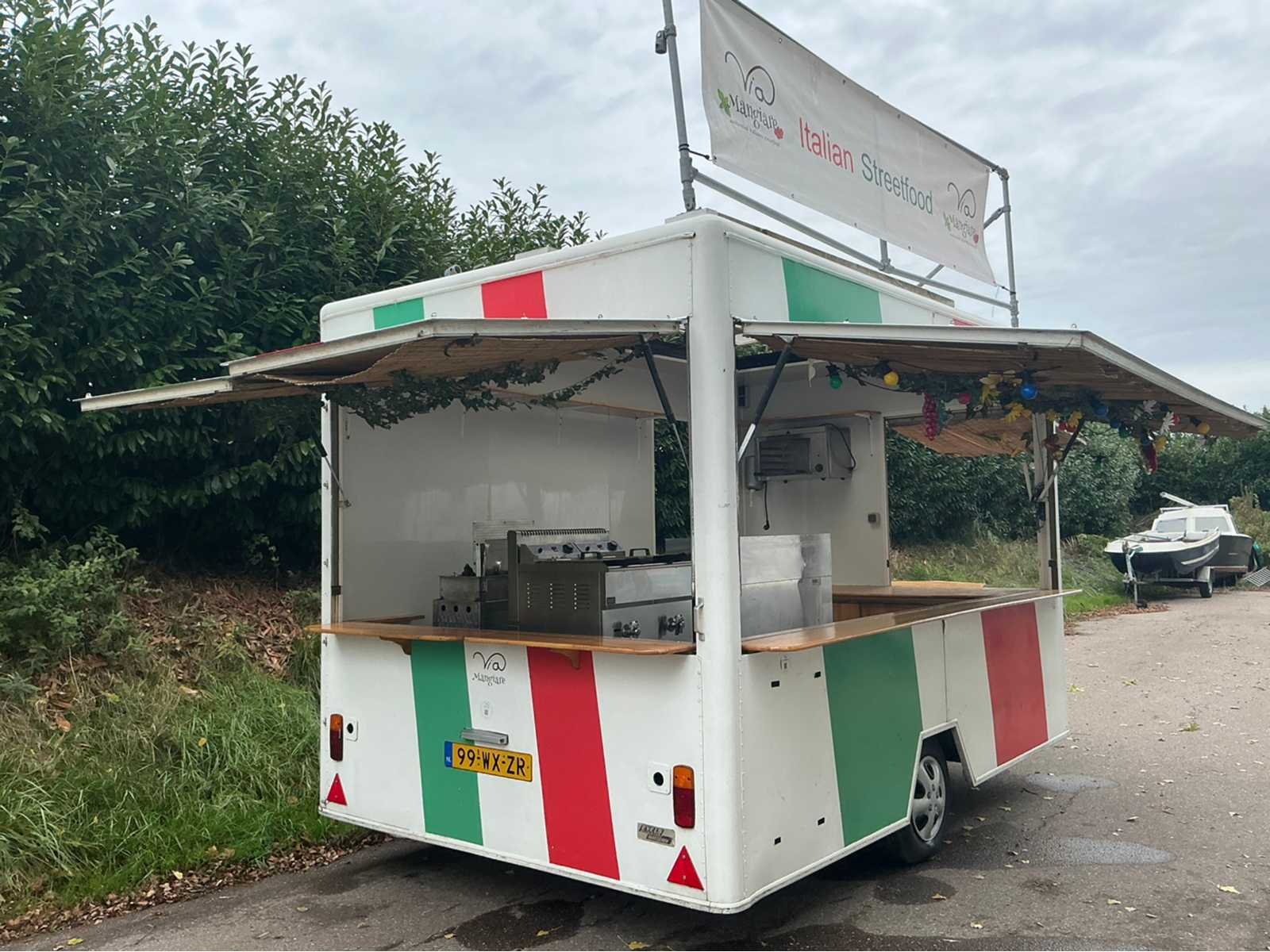 De foodtruck heeft inklapbare luiken, is voorzien van een dubbele frituurpan (2x 8 Liter), thermostaat, visfrituurpan (16 Liter), voorzien van veiligheid hitteregelaar, open grill, koelwerkbank met een granieten plaat en ingebouwde saladiere. Beide aangesloten op elektra. Alle drie de frituurpannen zijn op gas aangesloten. De foodtruck is volledig gerestaureerd in 2020. De wanden zijn bekleed met HACCP panelen, deze zijn brandveilig en makkelijk schoon te maken. De elektra zijn 2 jaar geleden door elektricien vernieuwd. Schokdempers en banden zijn in 2022 vernieuwd. Stroomvoorziening kan 3,5 kW aan. er is een kleine schade aan de wieldop. (LET OP! dit voertuig heeft een kenteken registratie, bij afhalen dient u dit ter plaatste bij een derde partij te naam te stellen of te exporteren, hier zijn extra kosten aan verbonden) Nee Merk: Evels Bouwjaar: 1984 Datum eerste toelating: 1984-06-26 Kenteken: 99wxzr Kentekenpapieren compleet?: true Aantal assen: 1 Laadvermogen: 390kg Eigen gewicht: 1110kg Totale afmeting Lengte: 238ml Totale afmeting Breedte: 389ml Totale afmeting Hoogte: 290ml