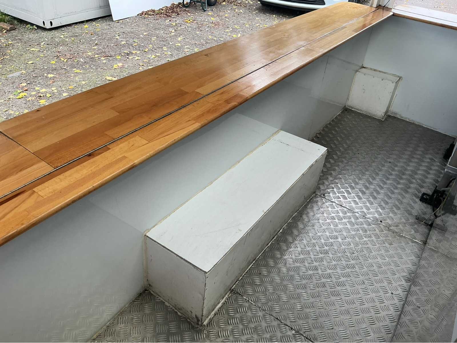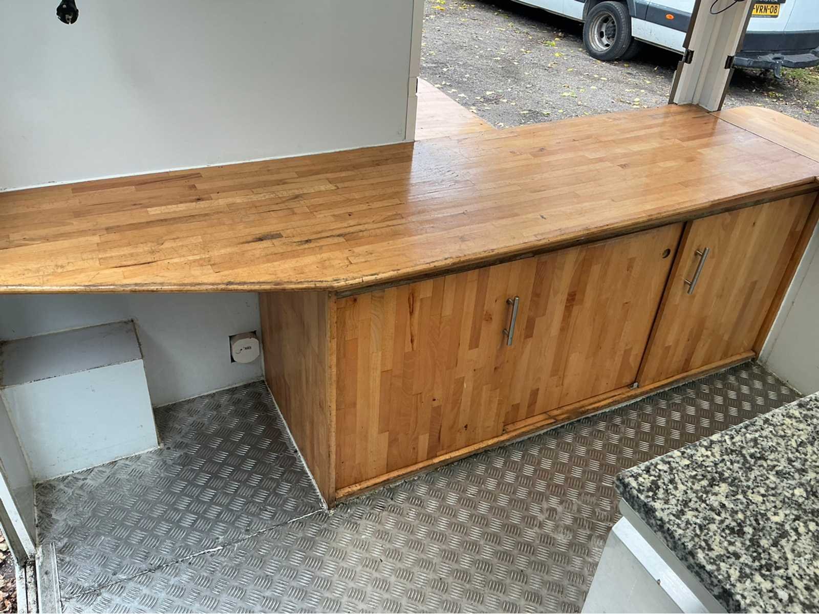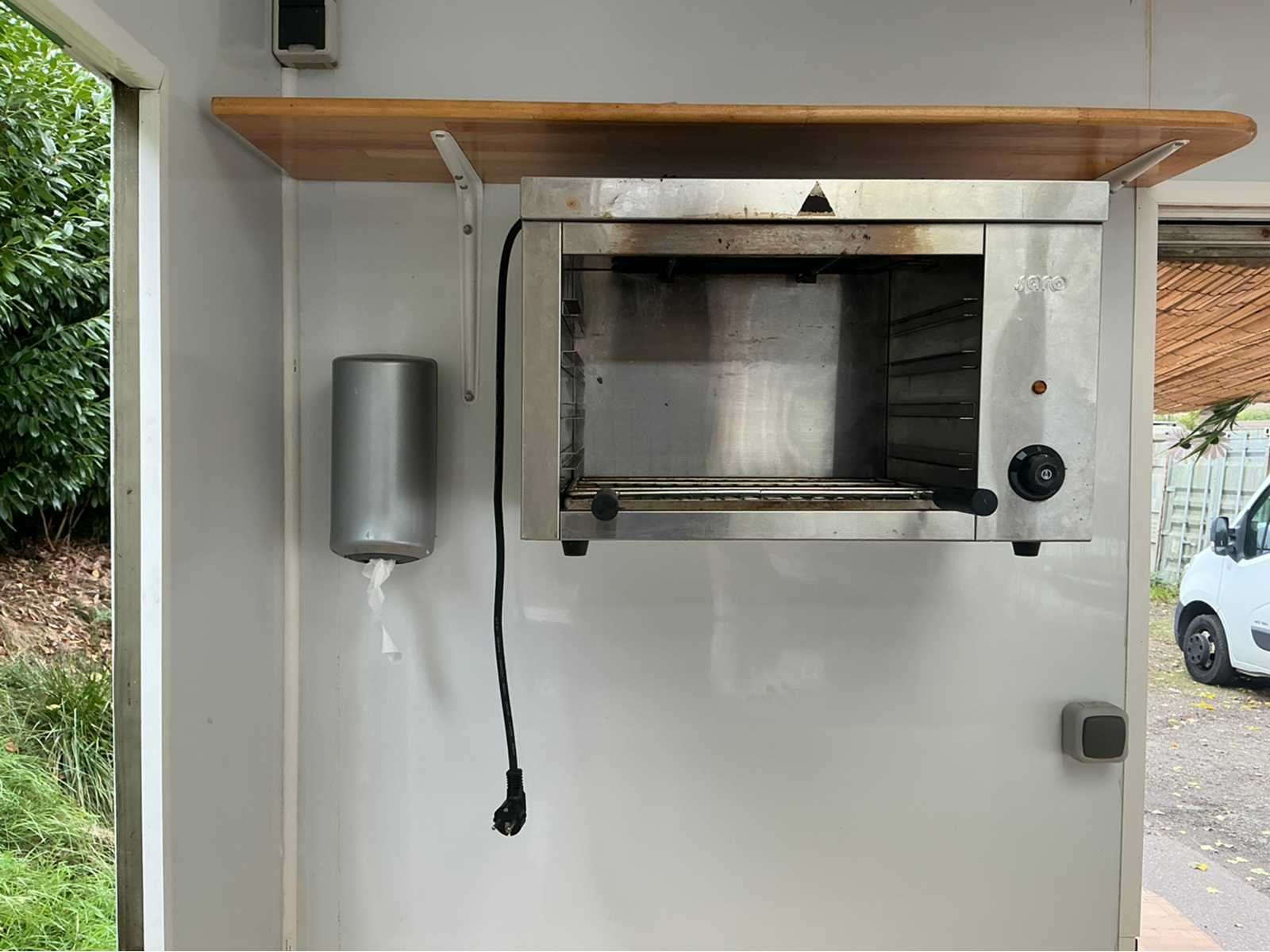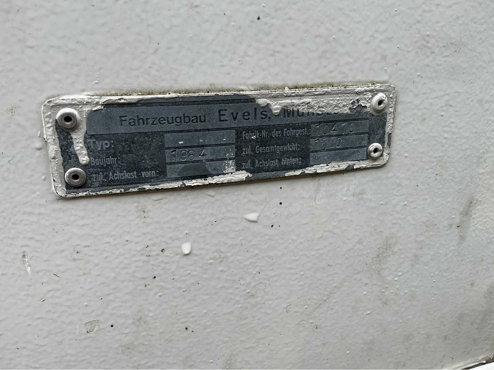 De foodtruck heeft inklapbare luiken, is voorzien van een dubbele frituurpan (2x 8 Liter), thermostaat, visfrituurpan (16 Liter), voorzien van veiligheid hitteregelaar, open grill, koelwerkbank met een granieten plaat en ingebouwde saladiere. Beide aangesloten op elektra. Alle drie de frituurpannen zijn op gas aangesloten. De foodtruck is volledig gerestaureerd in 2020. De wanden zijn bekleed met HACCP panelen, deze zijn brandveilig en makkelijk schoon te maken. De elektra zijn 2 jaar geleden door elektricien vernieuwd. Schokdempers en banden zijn in 2022 vernieuwd. Stroomvoorziening kan 3,5 kW aan. er is een kleine schade aan de wieldop. (LET OP! dit voertuig heeft een kenteken registratie, bij afhalen dient u dit ter plaatste bij een derde partij te naam te stellen of te exporteren, hier zijn extra kosten aan verbonden) Nee Merk: Evels Bouwjaar: 1984 Datum eerste toelating: 1984-06-26 Kenteken: 99wxzr Kentekenpapieren compleet?: true Aantal assen: 1 Laadvermogen: 390kg Eigen gewicht: 1110kg Totale afmeting Lengte: 238ml Totale afmeting Breedte: 389ml Totale afmeting Hoogte: 290ml