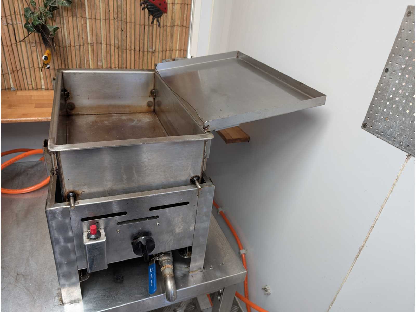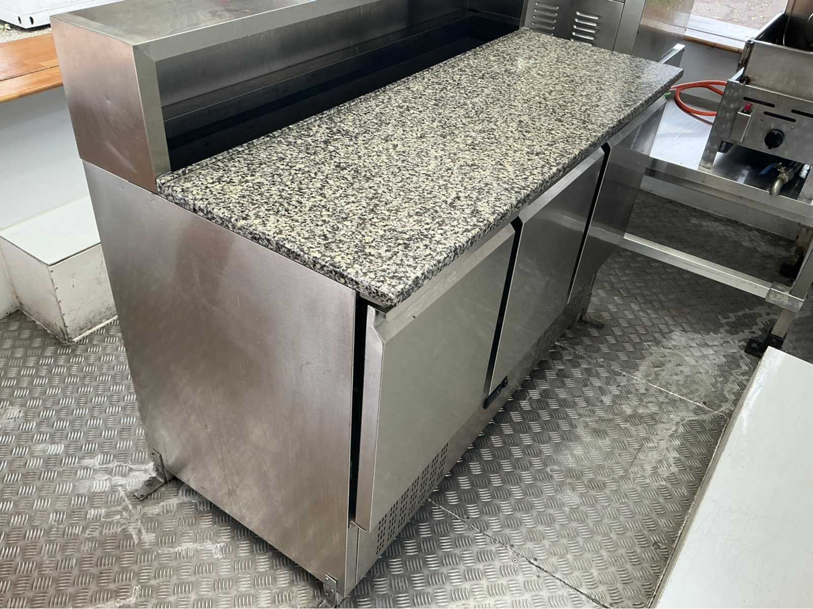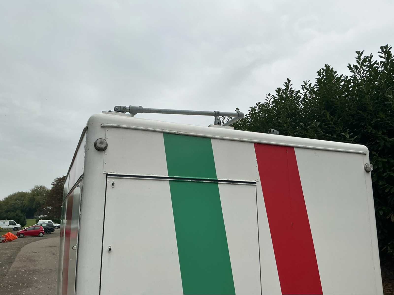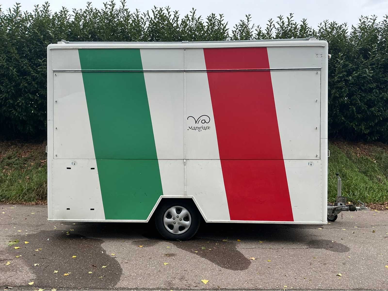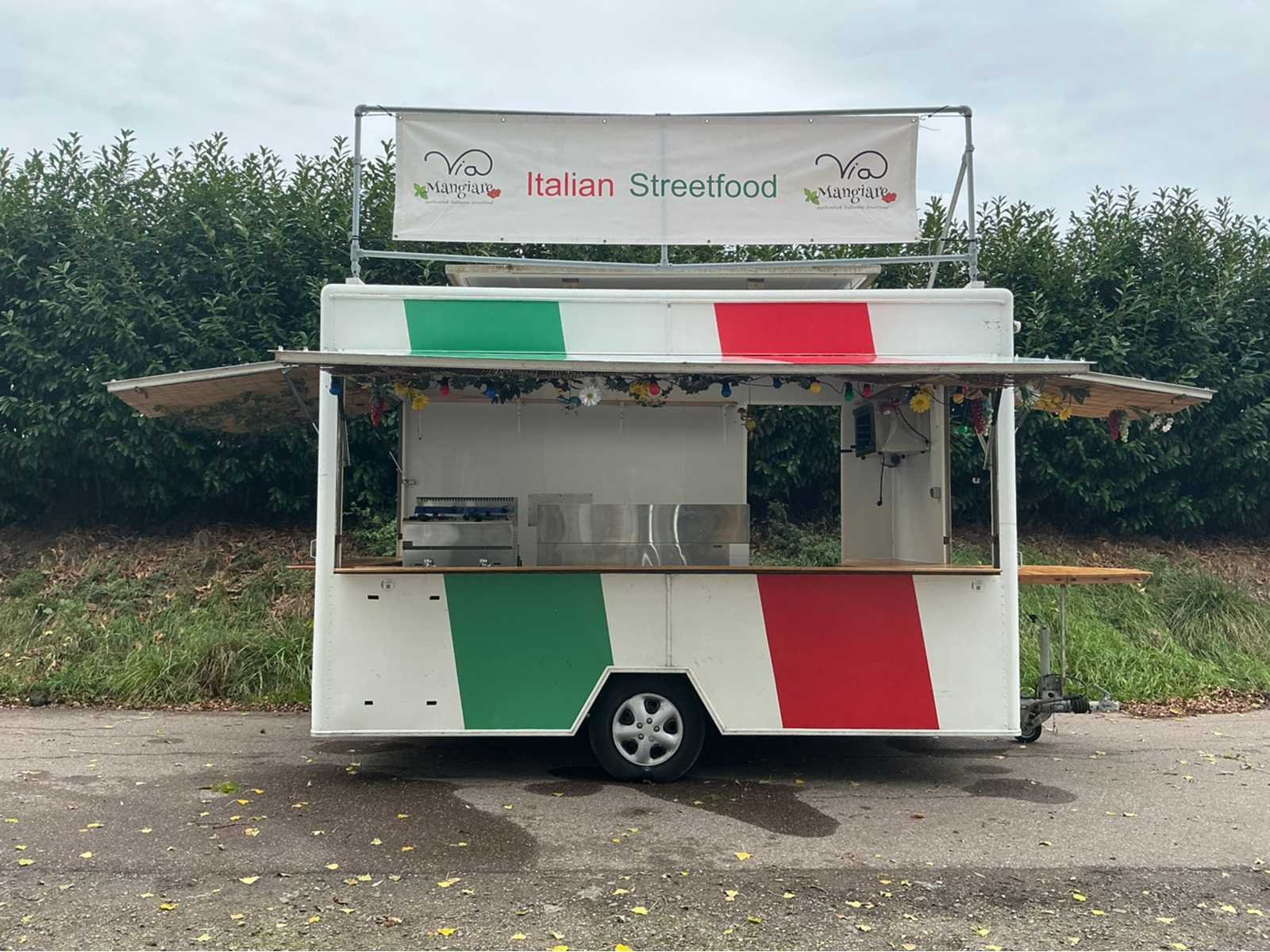 De foodtruck heeft inklapbare luiken, is voorzien van een dubbele frituurpan (2x 8 Liter), thermostaat, visfrituurpan (16 Liter), voorzien van veiligheid hitteregelaar, open grill, koelwerkbank met een granieten plaat en ingebouwde saladiere. Beide aangesloten op elektra. Alle drie de frituurpannen zijn op gas aangesloten. De foodtruck is volledig gerestaureerd in 2020. De wanden zijn bekleed met HACCP panelen, deze zijn brandveilig en makkelijk schoon te maken. De elektra zijn 2 jaar geleden door elektricien vernieuwd. Schokdempers en banden zijn in 2022 vernieuwd. Stroomvoorziening kan 3,5 kW aan. er is een kleine schade aan de wieldop. (LET OP! dit voertuig heeft een kenteken registratie, bij afhalen dient u dit ter plaatste bij een derde partij te naam te stellen of te exporteren, hier zijn extra kosten aan verbonden) Nee Merk: Evels Bouwjaar: 1984 Datum eerste toelating: 1984-06-26 Kenteken: 99wxzr Kentekenpapieren compleet?: true Aantal assen: 1 Laadvermogen: 390kg Eigen gewicht: 1110kg Totale afmeting Lengte: 238ml Totale afmeting Breedte: 389ml Totale afmeting Hoogte: 290ml