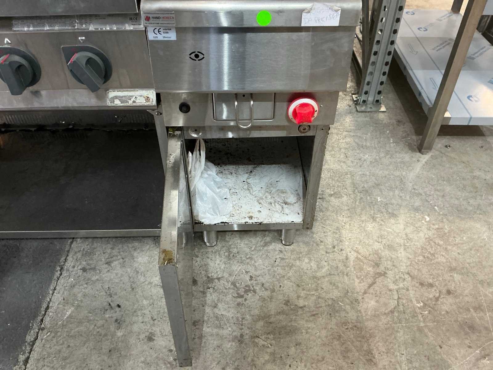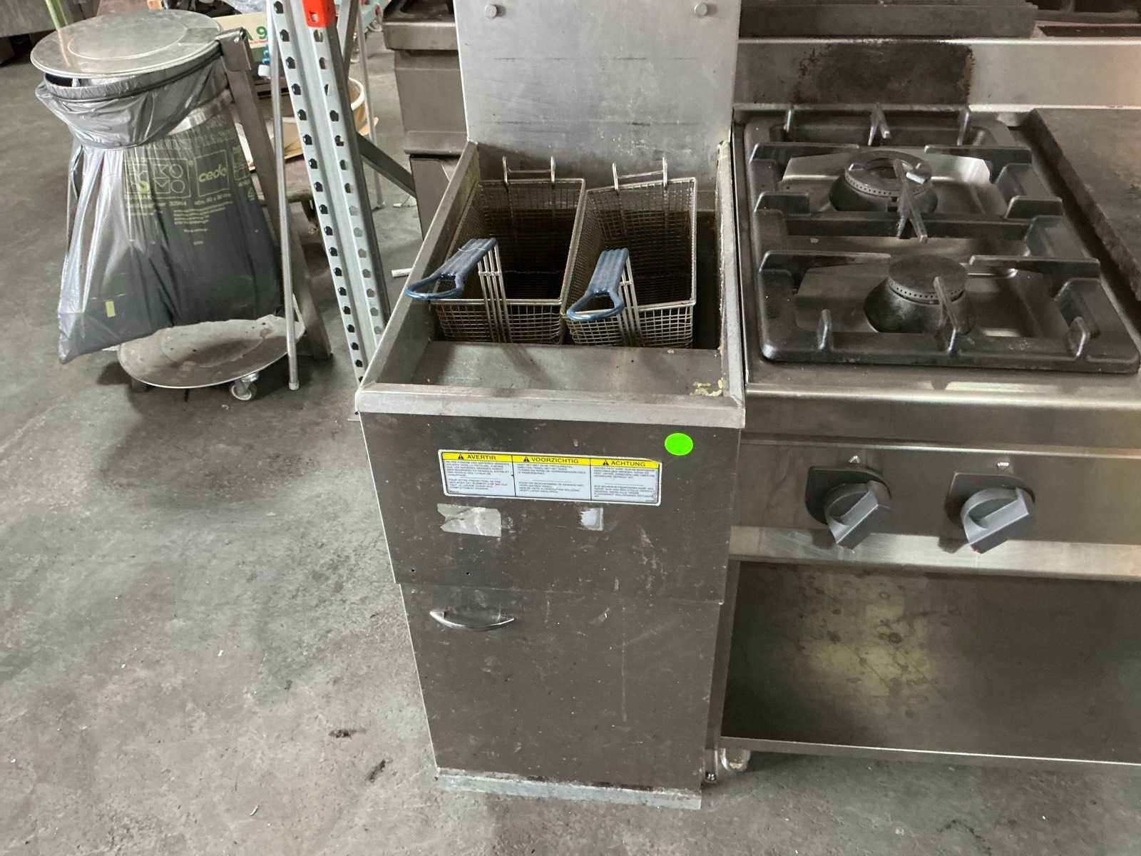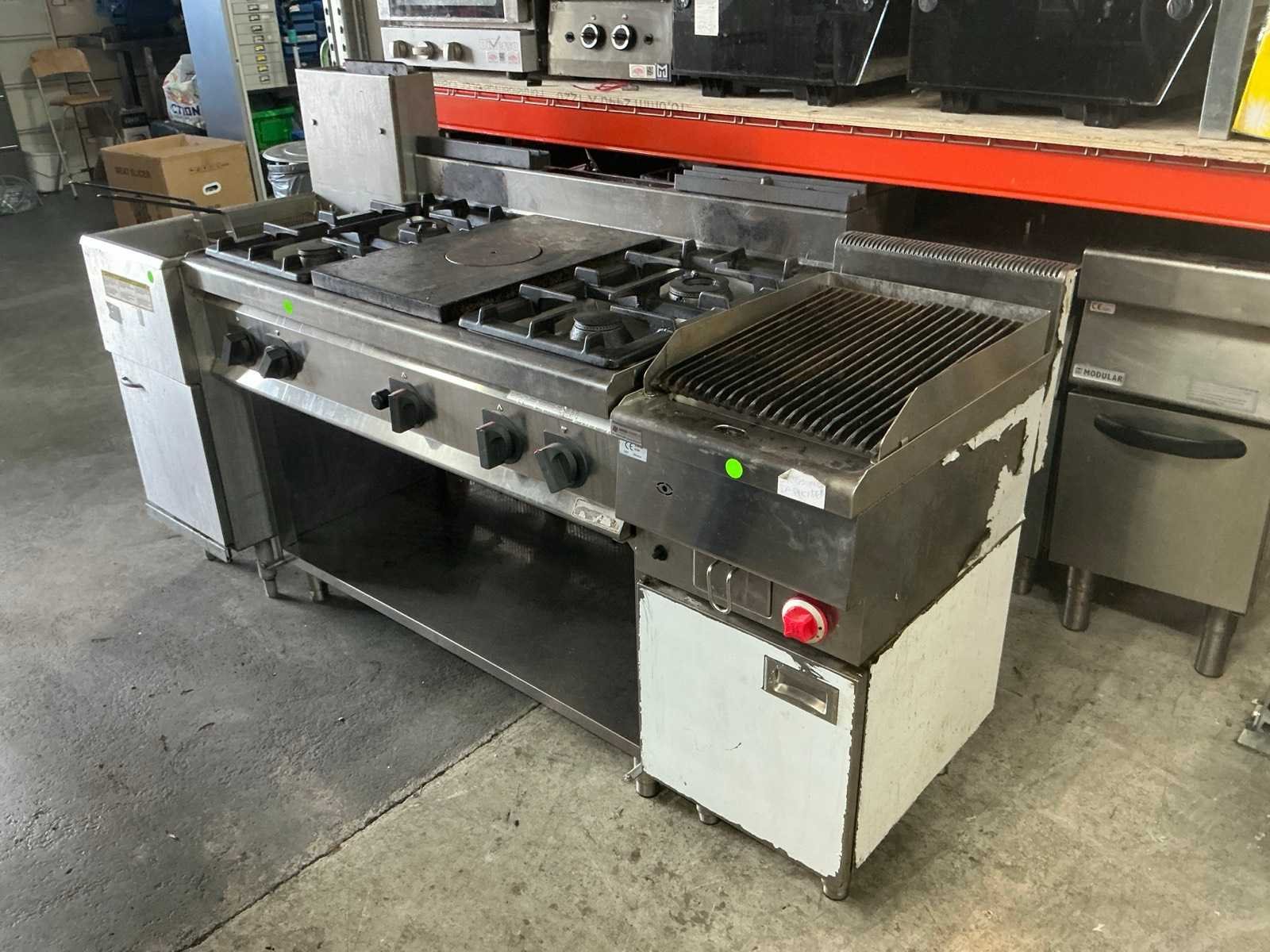 Kookwand met friteuse, gasfornuis (bakplaat en lavagrill)