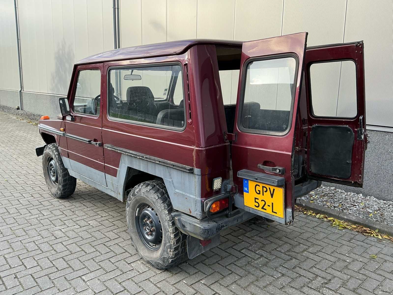 Wegenbelasting vrij. Apk tot februari 2027. Afmetingen: 210 cm hoog, 180 cm breed, 420 cm lang. Voorzien van: 4 cilinder dieselmotor, handgeschakelde 4 versnellingsbak, vierwielaandrijving, korte wielbasis, sperdifferentieel voor en achter, hoge lage giering, Kuhmo Road Venture banden, trekhaak, achterbank, dubbele achterdeuren, hoofdstroomschakelaar. Nee Kenteken: GPV-52-L Merk: Mercedes-Benz Model: G-klasse Type: 240 GD Bouwjaar: 1981 Afgelezen kilometerstand: 85176km Cilinderinhoud: 2530cc Vermogen (kW): 53kW Brandstof: Diesel Chassisnummer: 46033017011061 Laadvermogen: 0kg Datum eerste toelating: 1981-03-09 Datum eerste toelating (NL): 2025-02-12 APK vervaldatum: 2027-02-07 Aandrijving: 4WD Aantal zitplaatsen: 5 Maximaal trekgewicht ongeremd: 750kg Maximaal trekgewicht geremd: 2800kg Kleur: rood Transmissie: Handgeschakeld, 4 versnellingen Stuurwiel: Links Emissieklasse: 0 Aantal deuren: 4 Aantal sleutels: 2 Ledig gewicht: 1855kg Velgmaat: 16 Bruto BPM (NL): 0€ Aantal cilinders: 4 Carrosserie: Terreinwagen Nationaliteit documenten: Nederlands Carfax Link: https://was.carfax.eu/v0/api/ccdid/5100016408/svc/201/vinreg/GPV52L/checksum/eyJhbGciOiJIUzI1NiIsInR5cCI6IkpXVCJ9.eyJleHAiOjE3NjYzOTgzMTF9.f8PIC6Dsi4rP5XaR9EPn6qGg8ANggT2W5MyqxeFwuZM Start en rijdt: Ja Keuringsrapport geldig tot: 7 februari 2027 Vierwielaandrijving 4x4: true