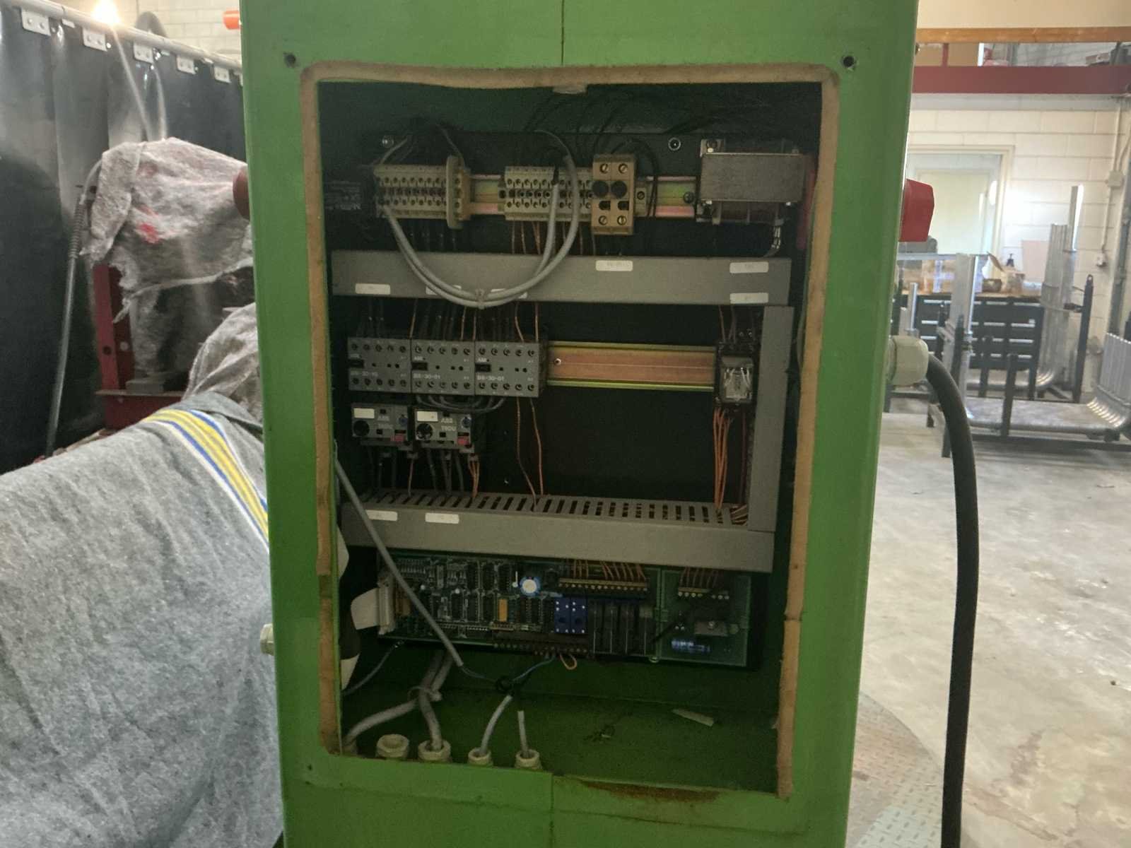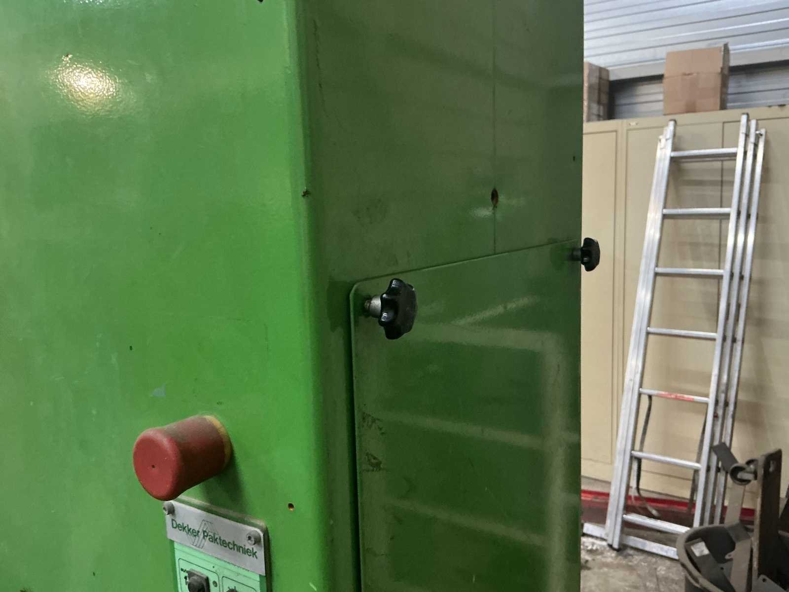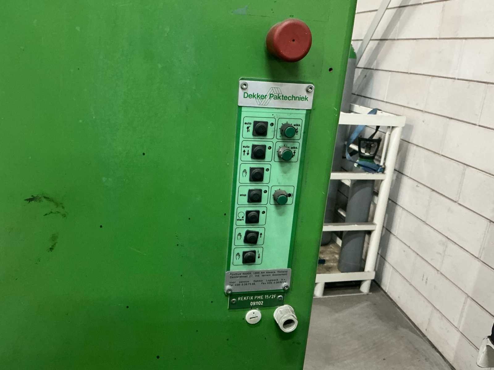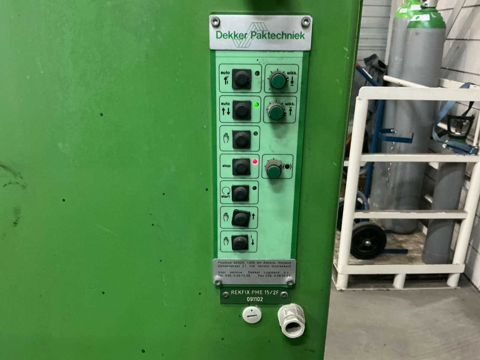 Machine beschikt over sensor en is inklapbaar voor transport, hoogte ingeklapt: 750mm. Lengte ingeklapt: 3070mm. Afmetingen draagplateau: 2060 mm lengte, 1490 mm diameter. De machine is handmatig en automatisch bestuurbaar en van volledig staal. Nee Merk: Dekker paktechniek Type: Rekfinale PME 15/2F Plateau Ø: 2060mm Foliebreedte: 500mm Aansluiting: 380V Totale afmeting L: 400mm Totale afmeting Breedte: 400mm Totale afmeting Hoogte: 3070mm