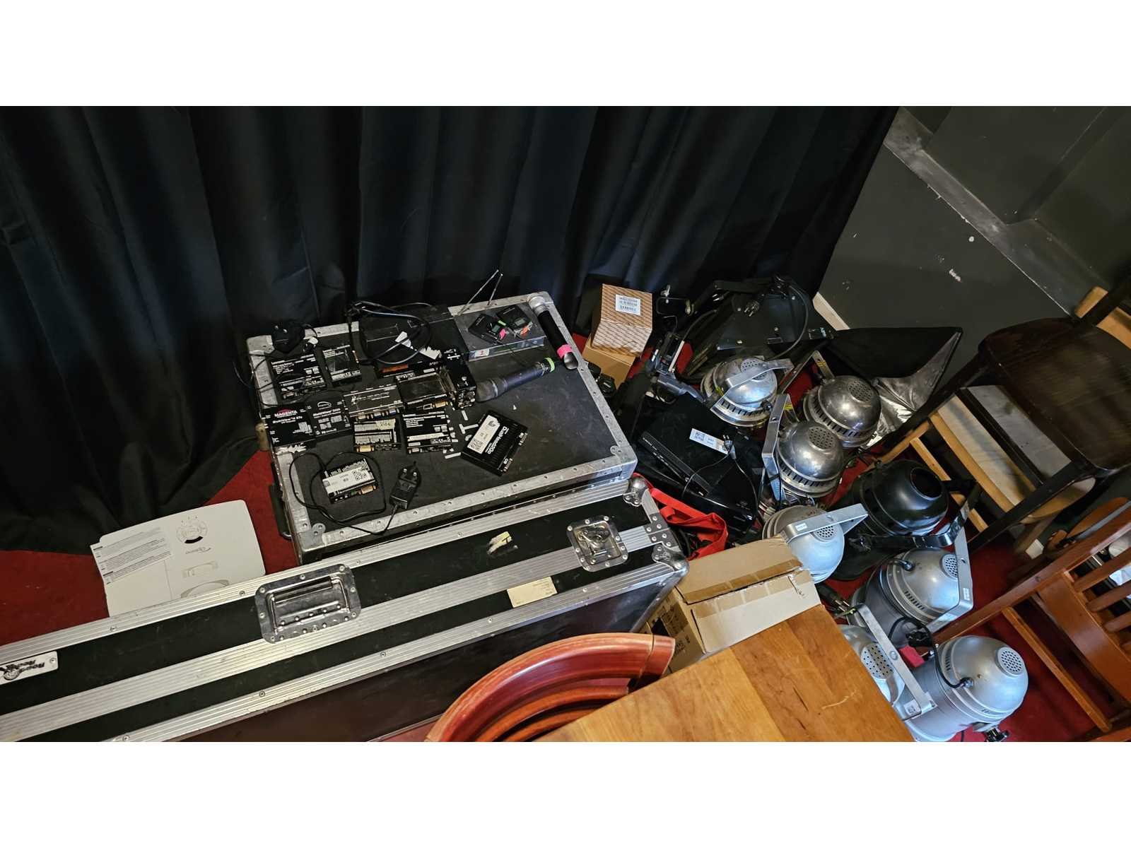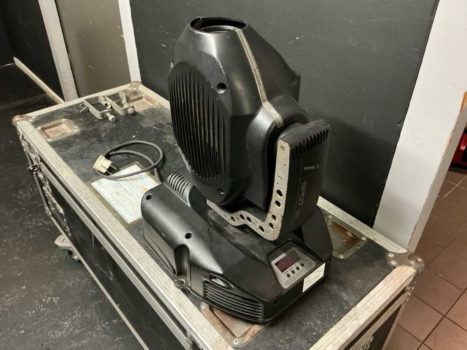 Voorzien van twee flight cases één case bevat 2x Martin Mac600 (washlight) en de andere case bevat 2x Coemar I-Spot 150L; 4x safetysteel; 4x G Haken Diverse Theaterlampen 14x Teatro Comma 22/35 2x Teatro Comma PC650 2x Eurolite Theaterspot 2x CCT Starlette 2000 PC (3x, 2 werking onbekend) ETC Source FourPar Flood onbekend DTS Mod Theaterspot Strand Optique 1542 Eurolite FS600 followspot Zie opmerkingen voor de specificatie van de overige items. Nee