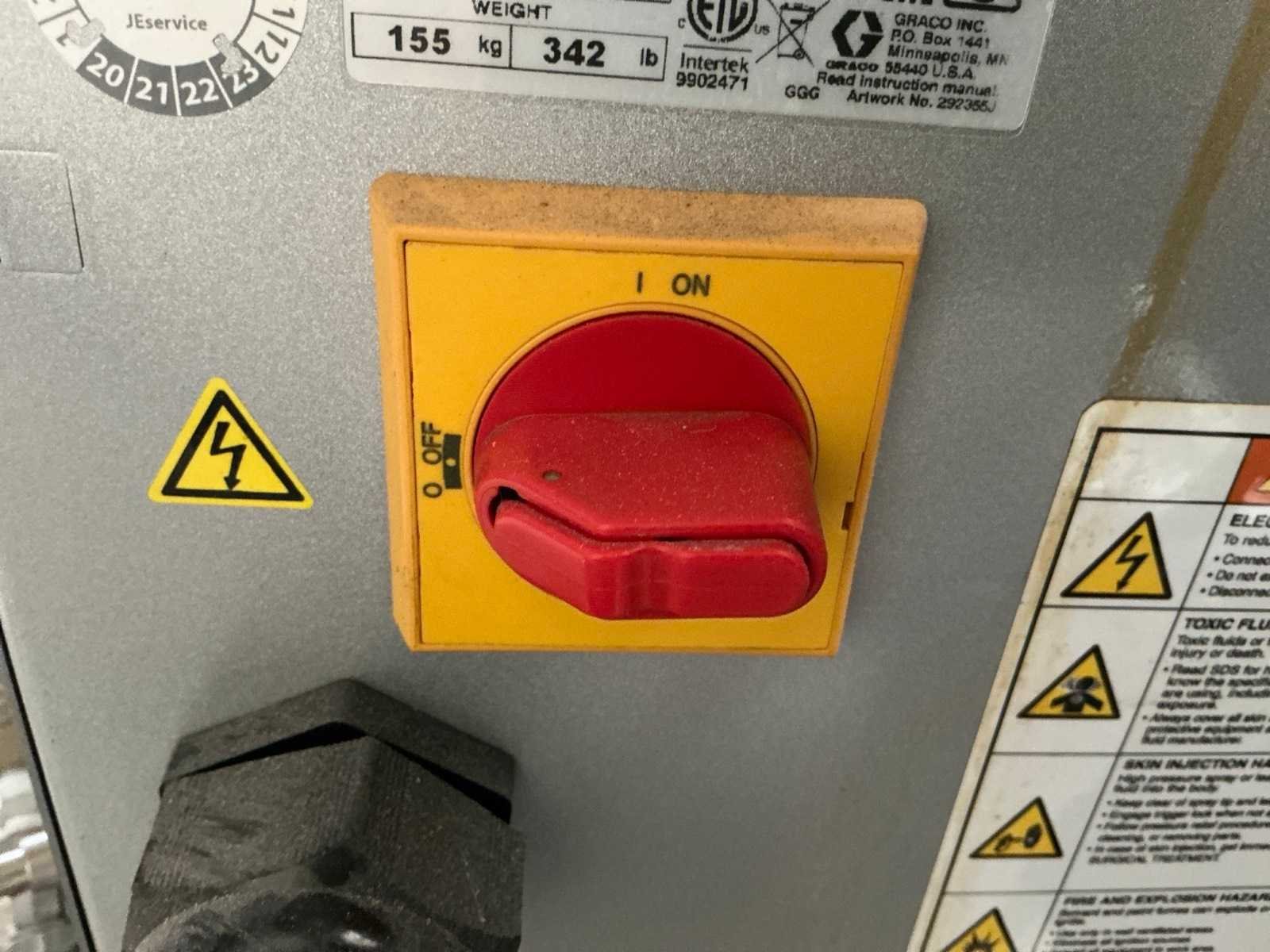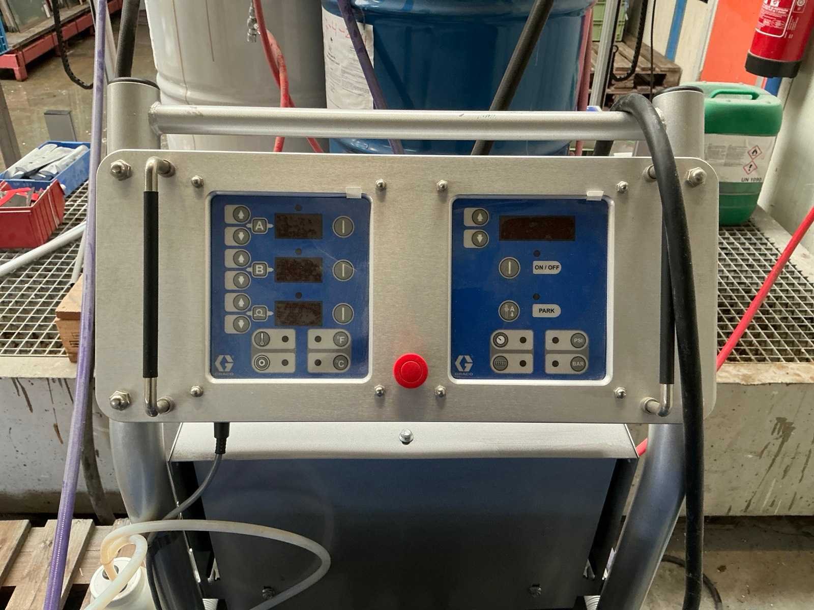 De Graco Reactor E-XP1 is een professioneel tweecomponent doseer- en mengsysteem (proportioner) voor het nauwkeurig verwerken en aanbrengen van coatings, zoals polyurea- en polyurethaan-toepassingen. Dit elektrische systeem verwarmt, doseert en mengt component A en B onder hoge druk voor een consistente en betrouwbare verwerking. De Reactor E-XP1 is ontworpen voor industriële toepassingen waar precisie, temperatuurregeling en constante verhouding essentieel zijn. Belangrijkste kenmerken: Elektrisch aangedreven doseer- en mengunit Geschikt voor tweecomponent-coatings zoals polyurea en PU Max. werkdruk ca. 2.500 psi / 172 bar Verwarmingsvermogen tot ca. 10 kW Capaciteit ca. 3,8 liter per minuut Uitgevoerd met digitale besturing en temperatuurregeling Aansluiting voor verwarmde slangen en spuitpistool Nee Merk: Reactor Type: E-XP1