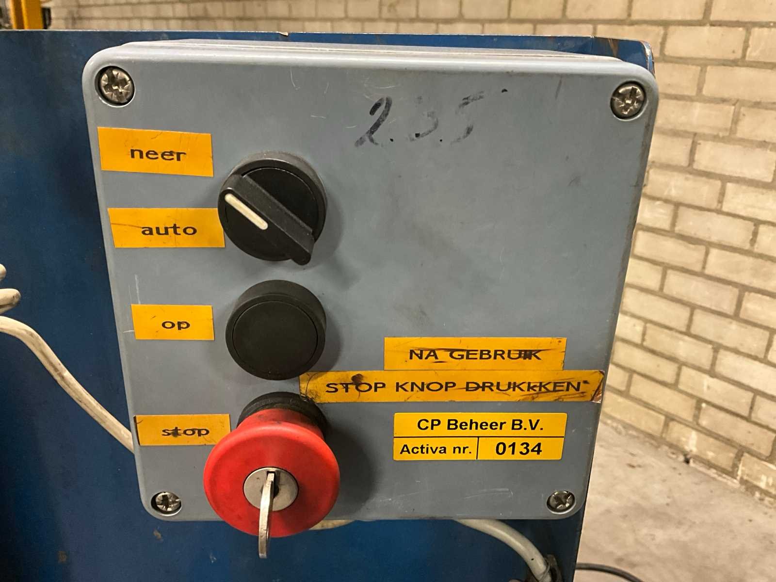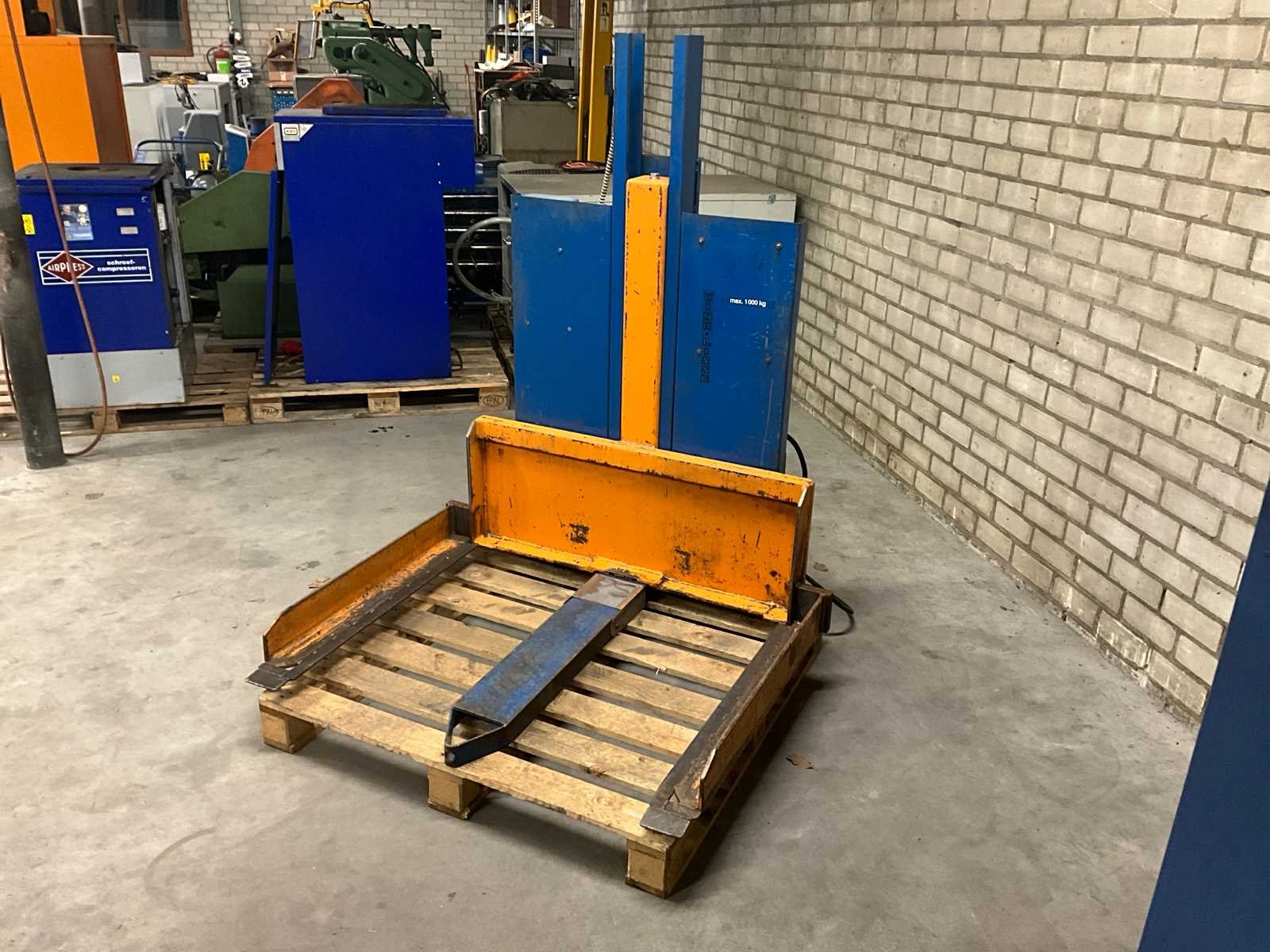 1000daN draagdracht; voorzien van: automatische hoogte; LET OP: Koper is zelf verantwoordelijk voor het uithuizen van het kavel. Er is een heftruck aanwezig! Nee Merk: Vink Lisse Type: 414S Bouwjaar: 1987 Serienummer: 1299S Hefvermogen: 1000kg Lepellengte: 900mm Totale afmeting L: 1330mm Totale afmeting Breedte: 1210mm Totale afmeting Hoogte: 1600mm