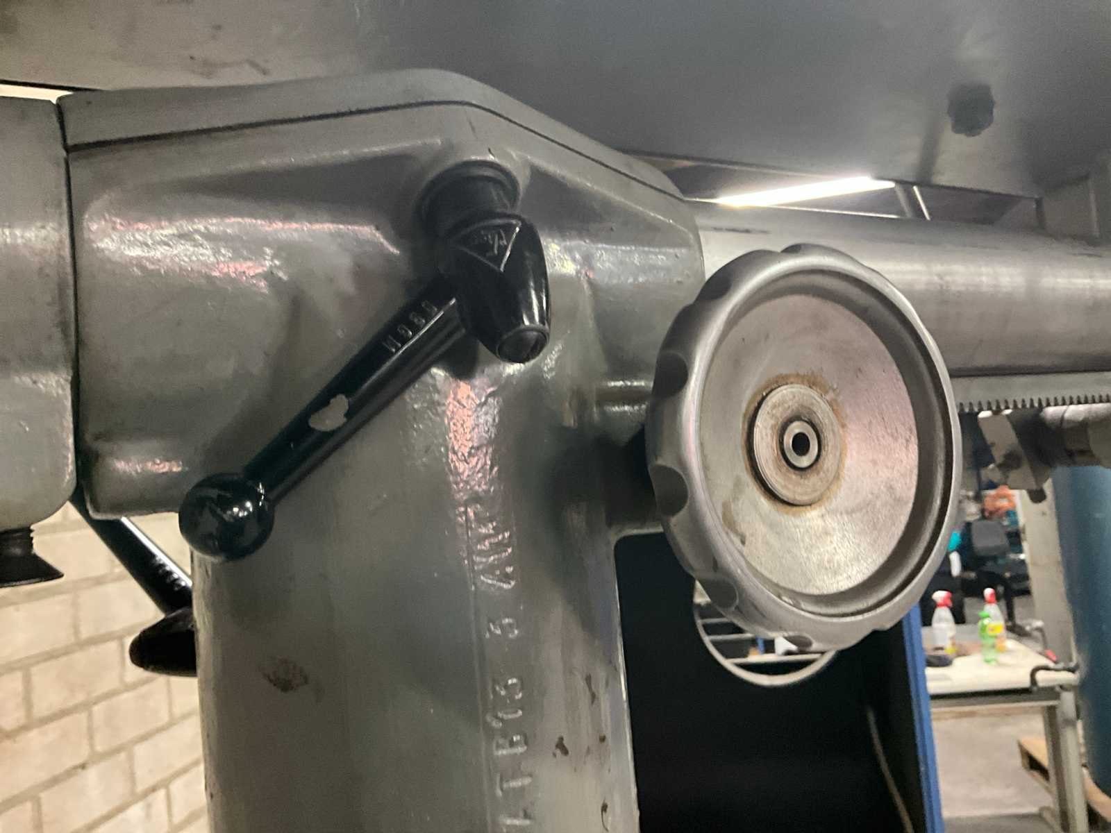 470mm in hoogte verstelbaar; poeliesysteem; LET OP: Koper is zelf verantwoordelijk voor het uithuizen van het kavel. Er is een heftruck aanwezig! Nee Merk: Genko Type: ATB20 Aantal snelheden: 12 Spindelsnelheid van n =: 2800rpm Spindelsnelheid tot n =: 100rpm Boordiepte: 90mm Uitlading: 360mm Tafel afmeting l: 670mm Tafel afmeting b: 400mm Afmeting l: 780mm Afmeting b: 599mm Afmeting h: 1480mm